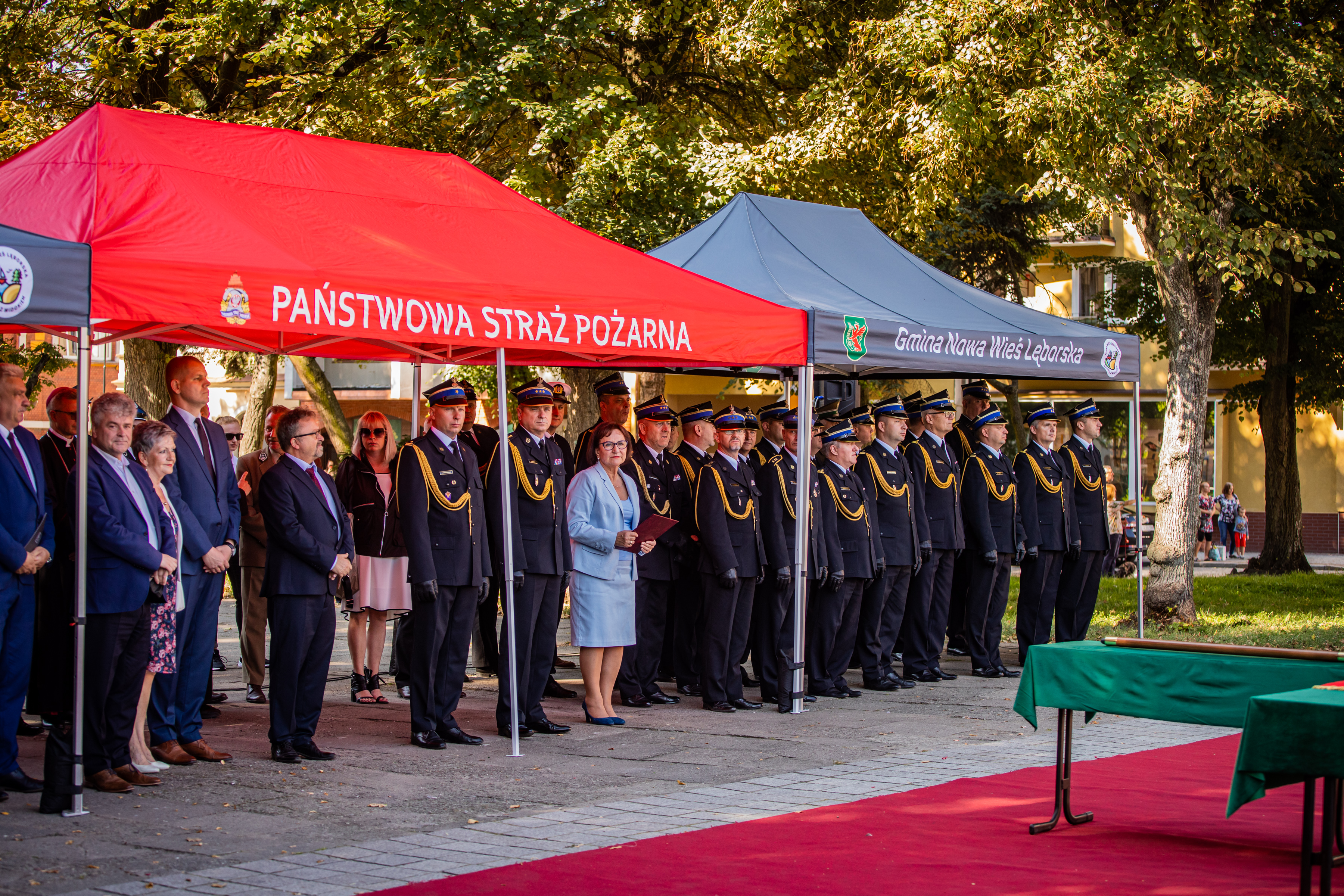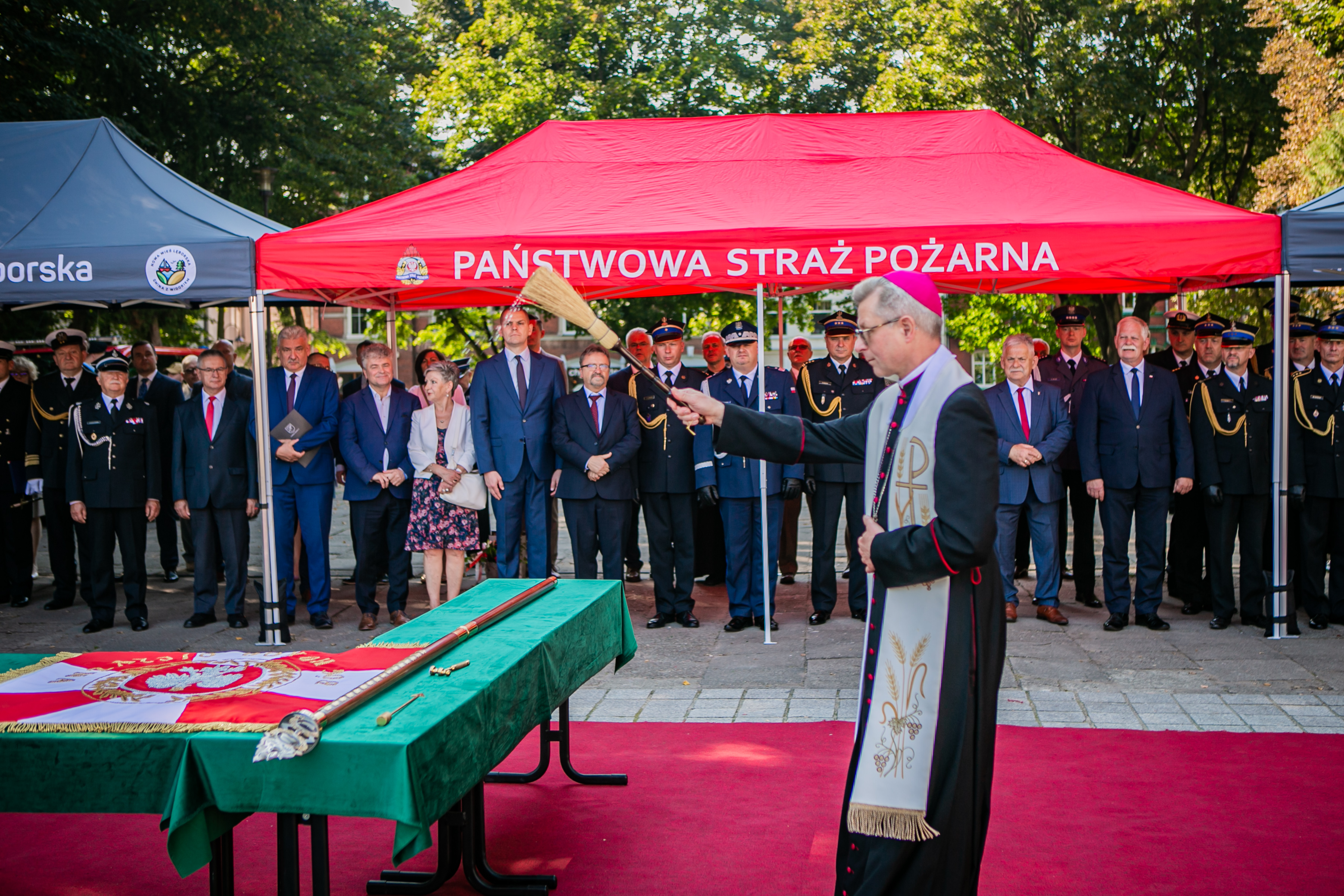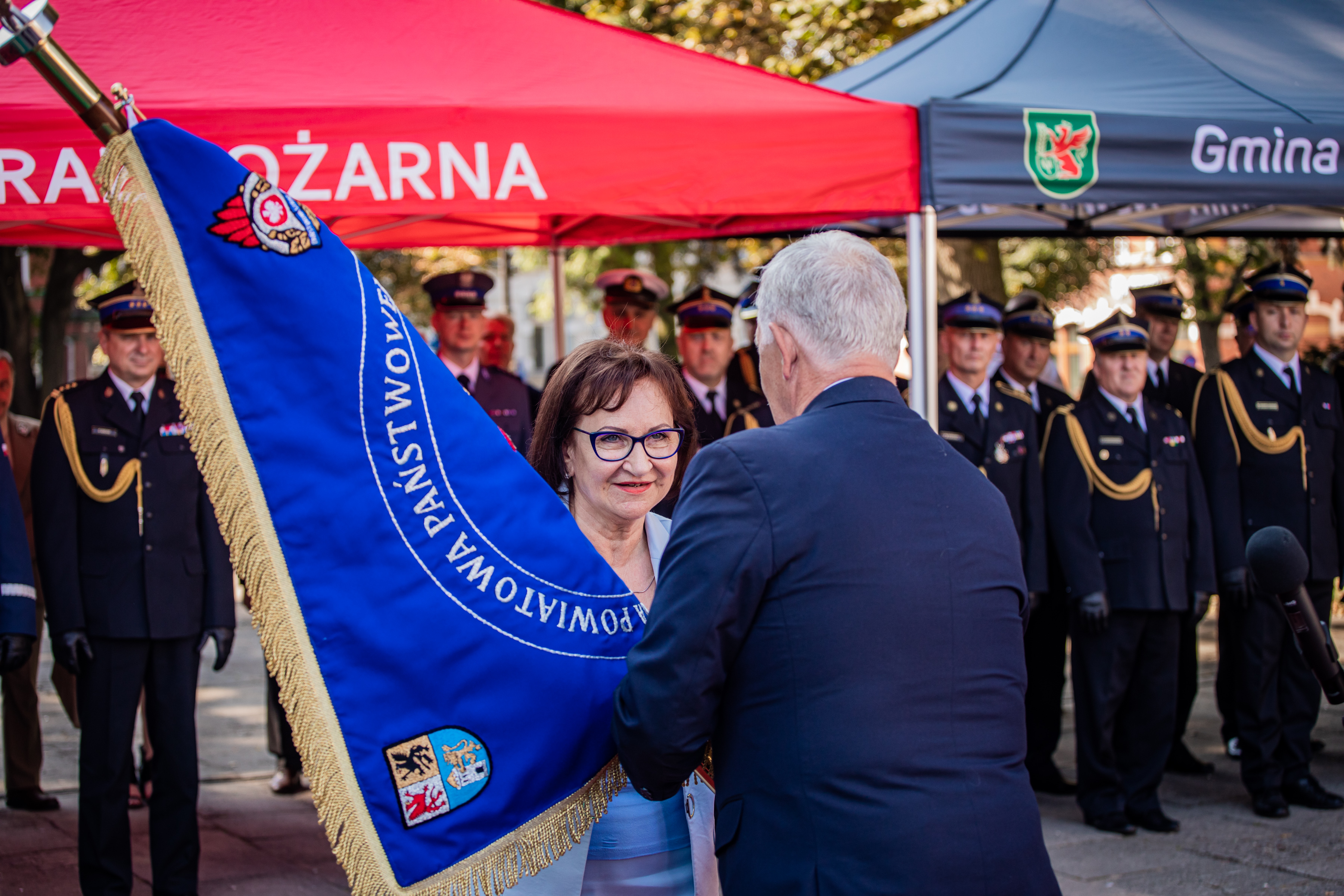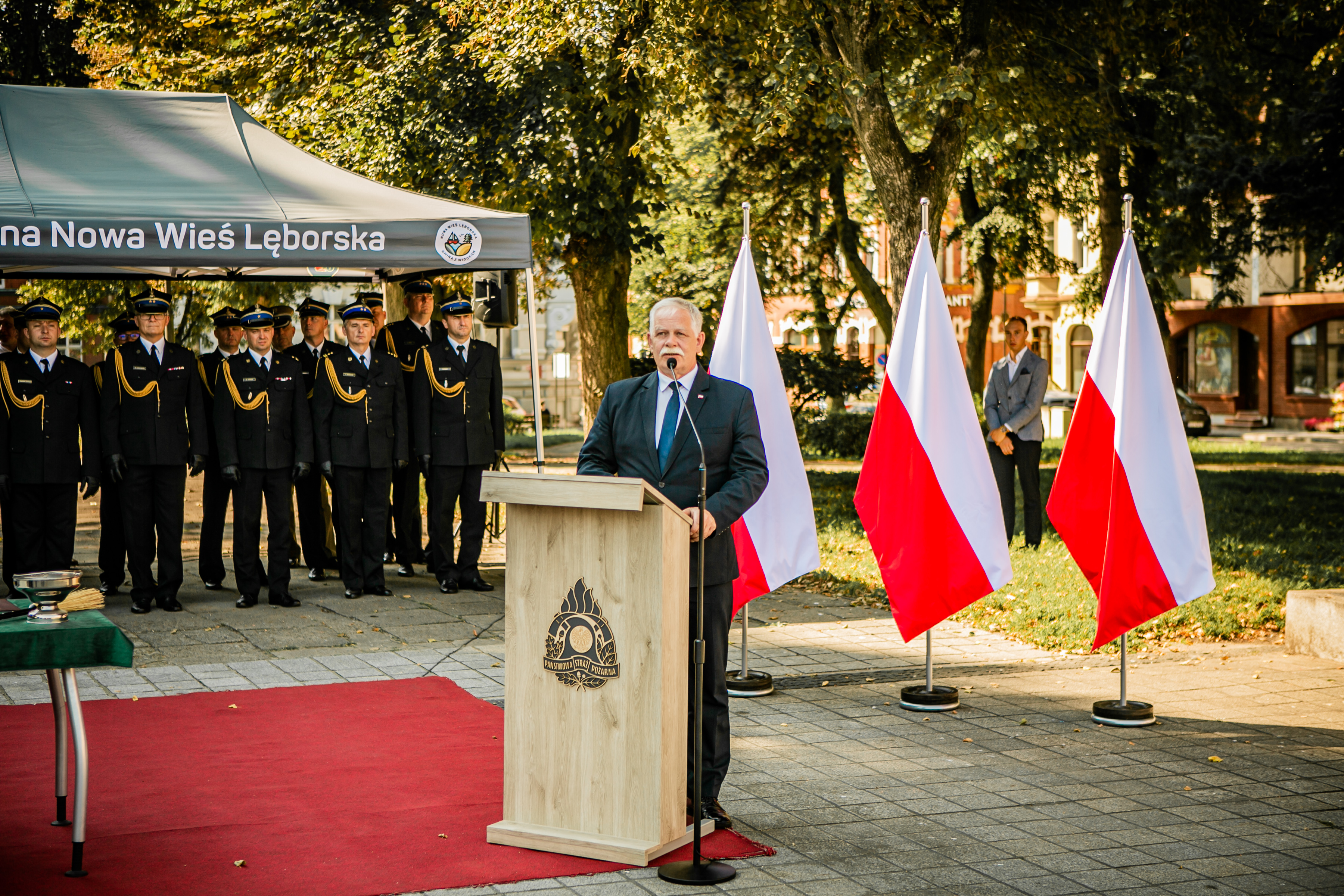 WRĘCZENIE SZTANDARU KOMENDZIE POWIATOWEJ PAŃSTWOWEJ STRAŻY POŻARNEJ W LĘBORKU
