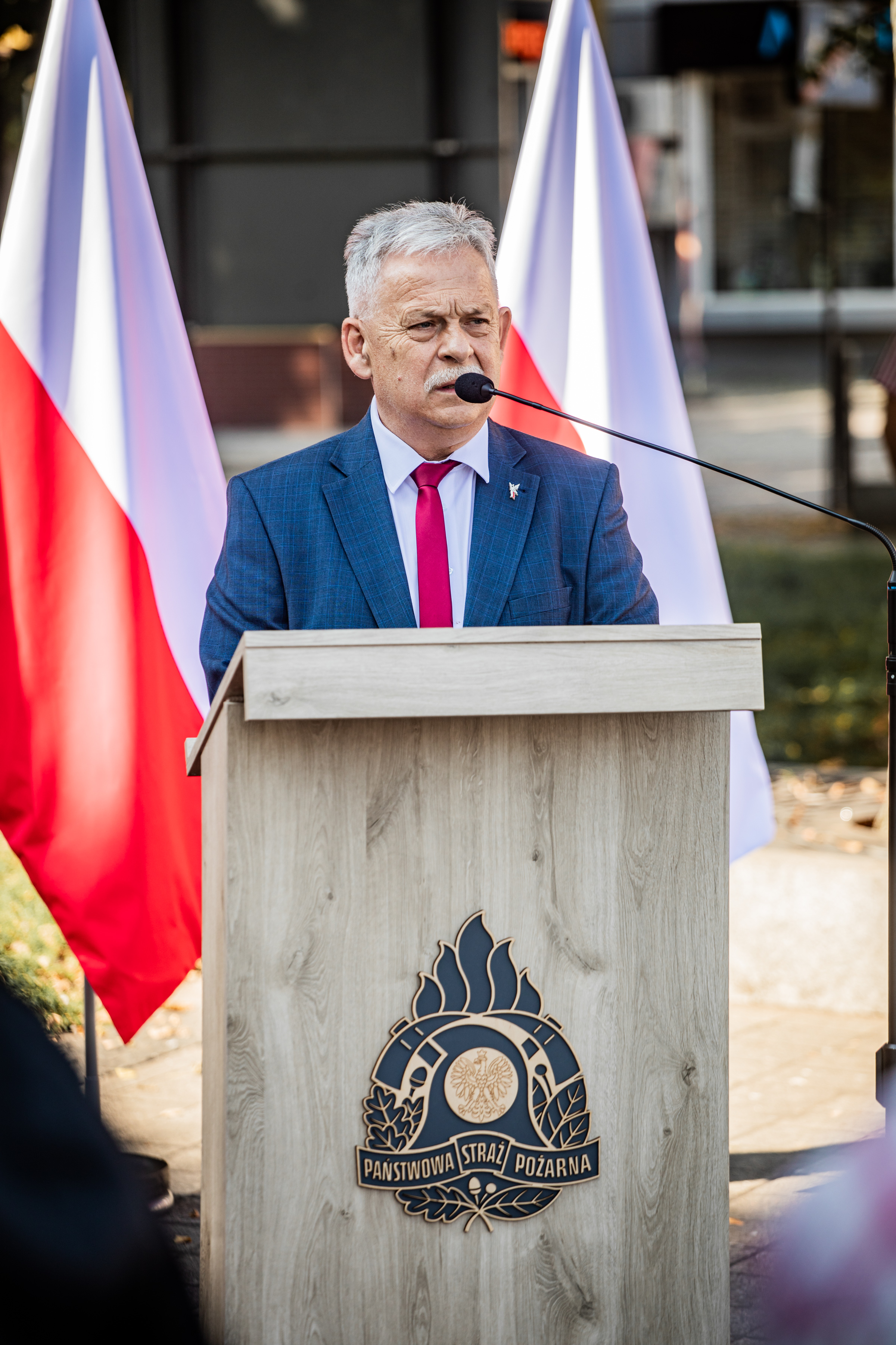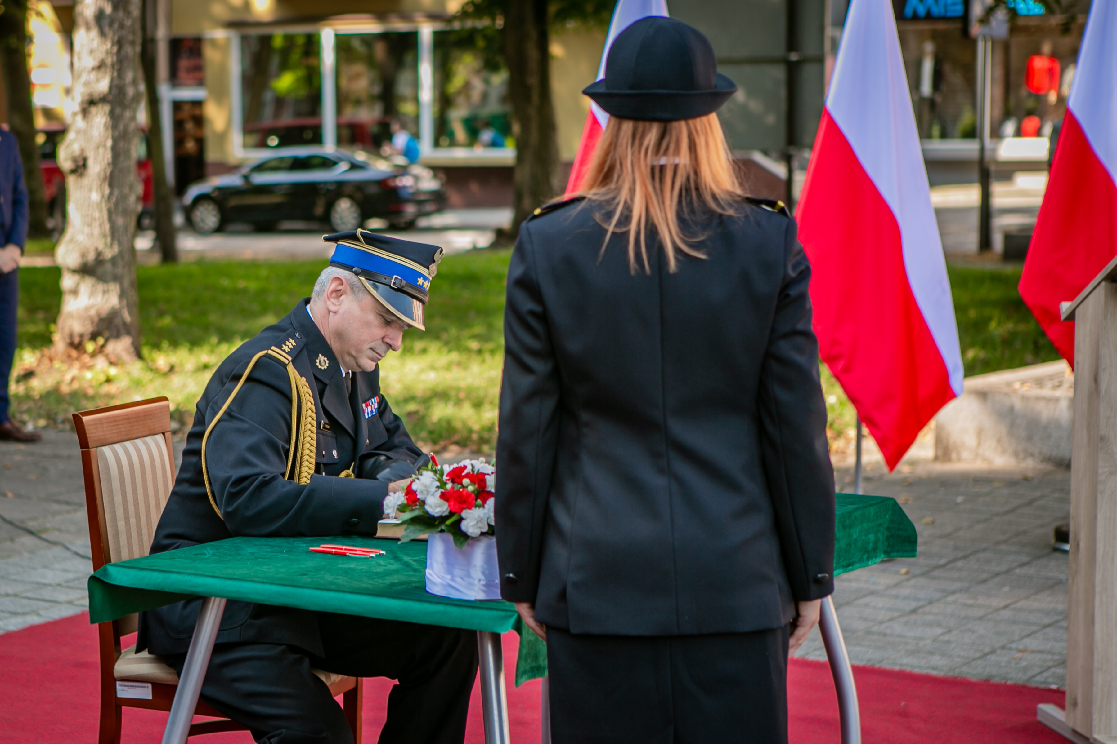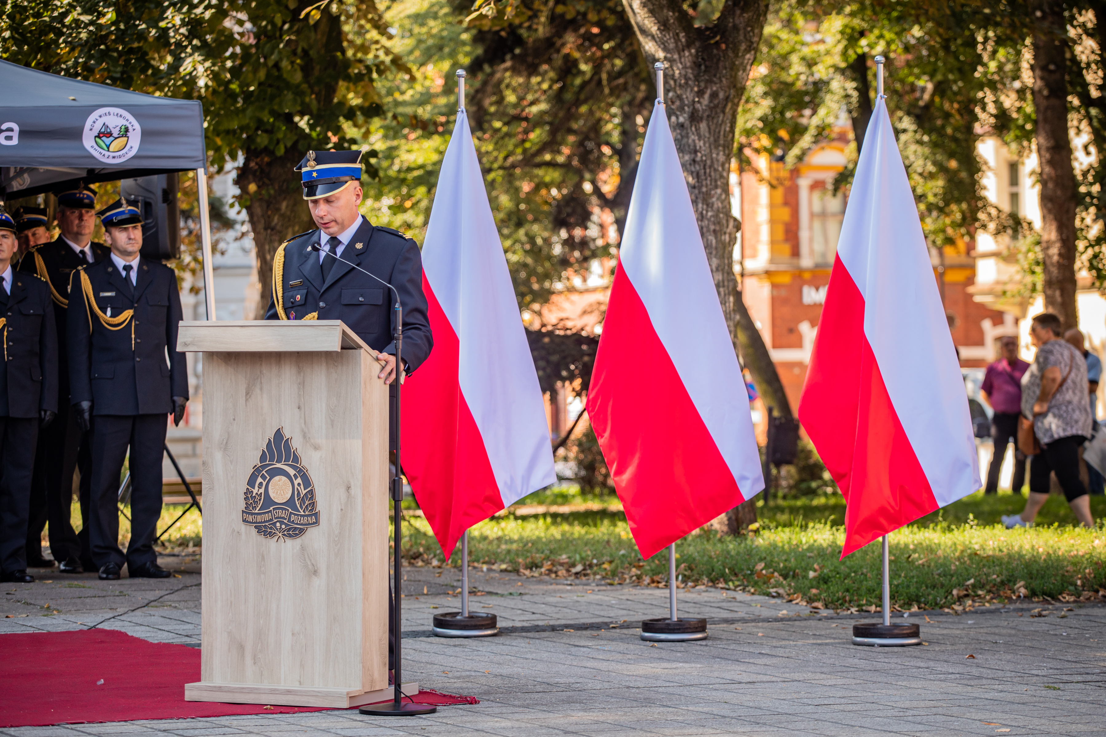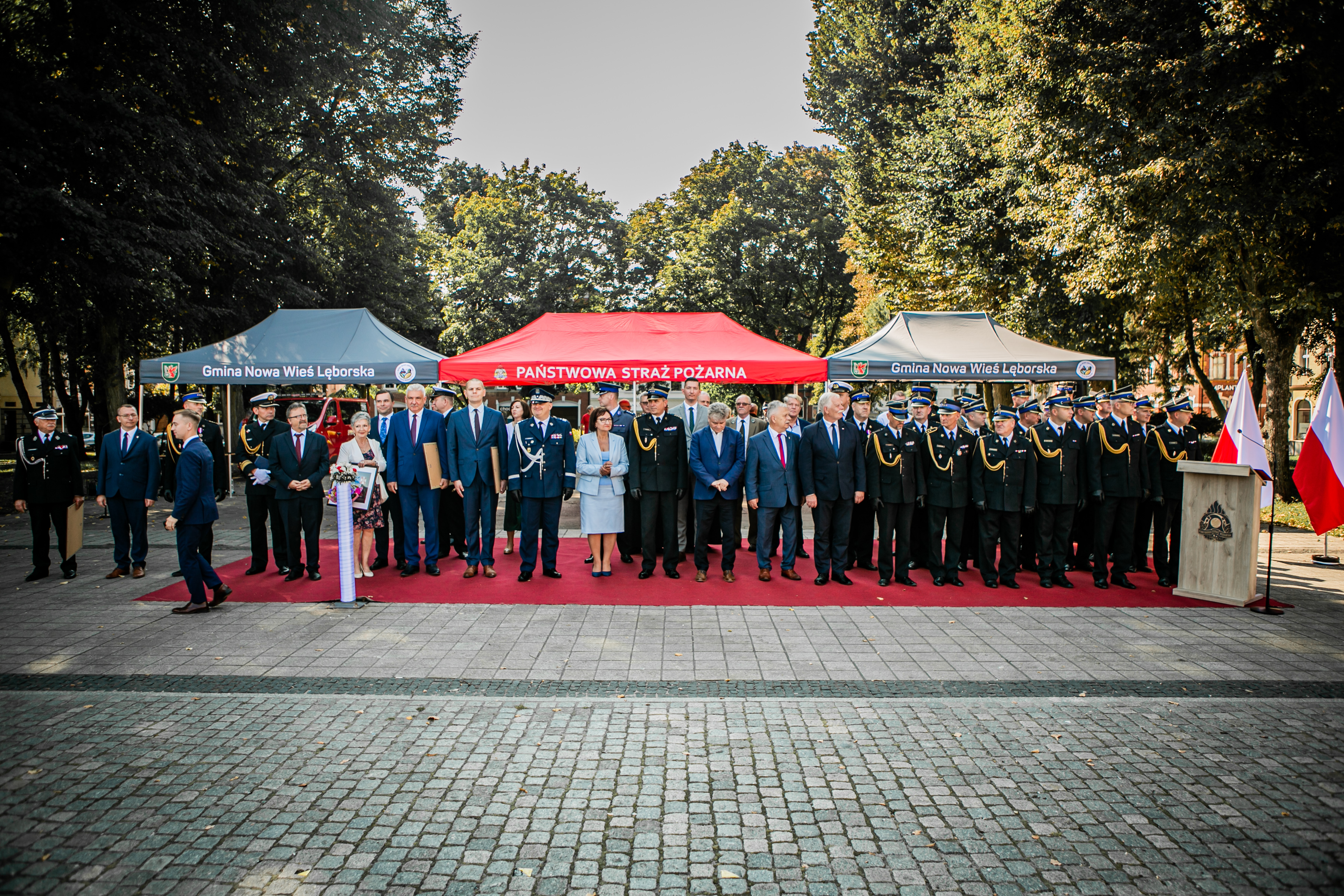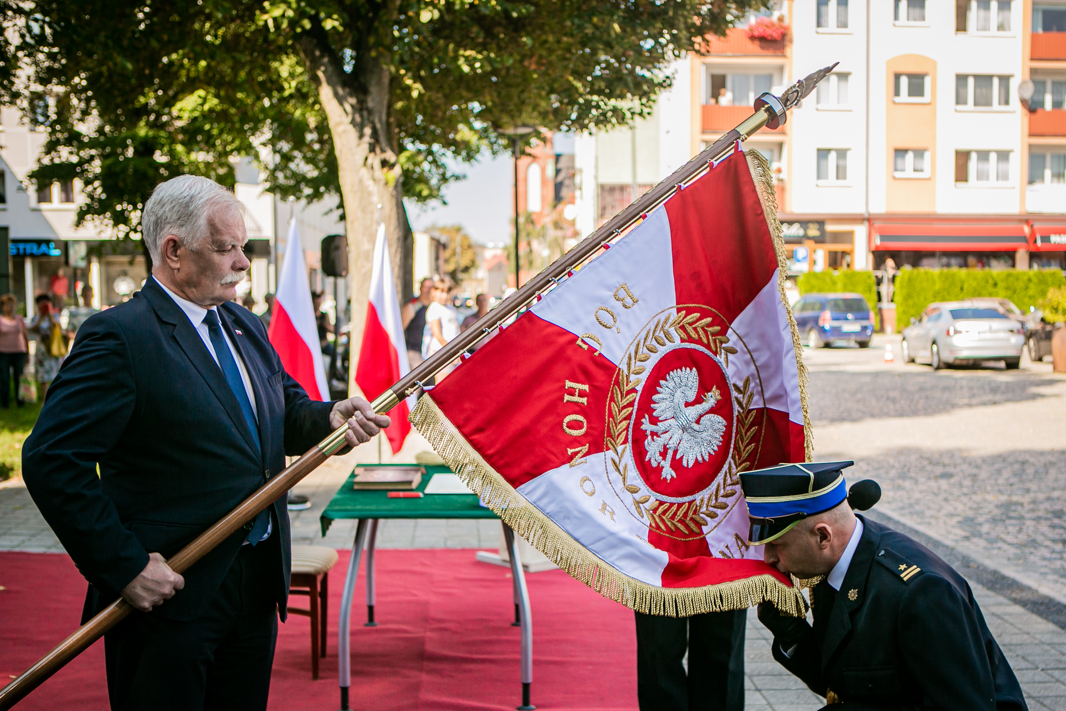 WRĘCZENIE SZTANDARU KOMENDZIE POWIATOWEJ PAŃSTWOWEJ STRAŻY POŻARNEJ W LĘBORKU
