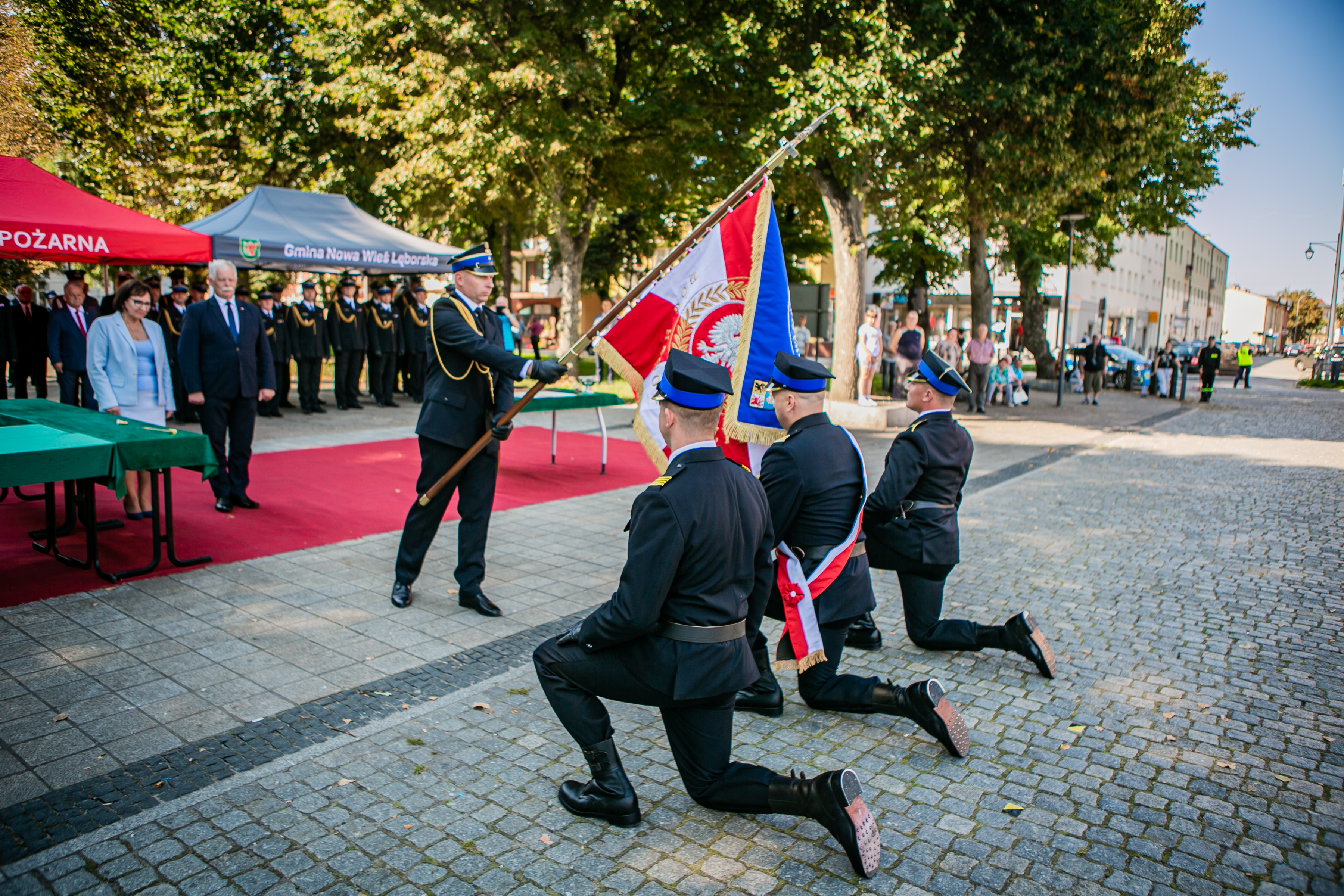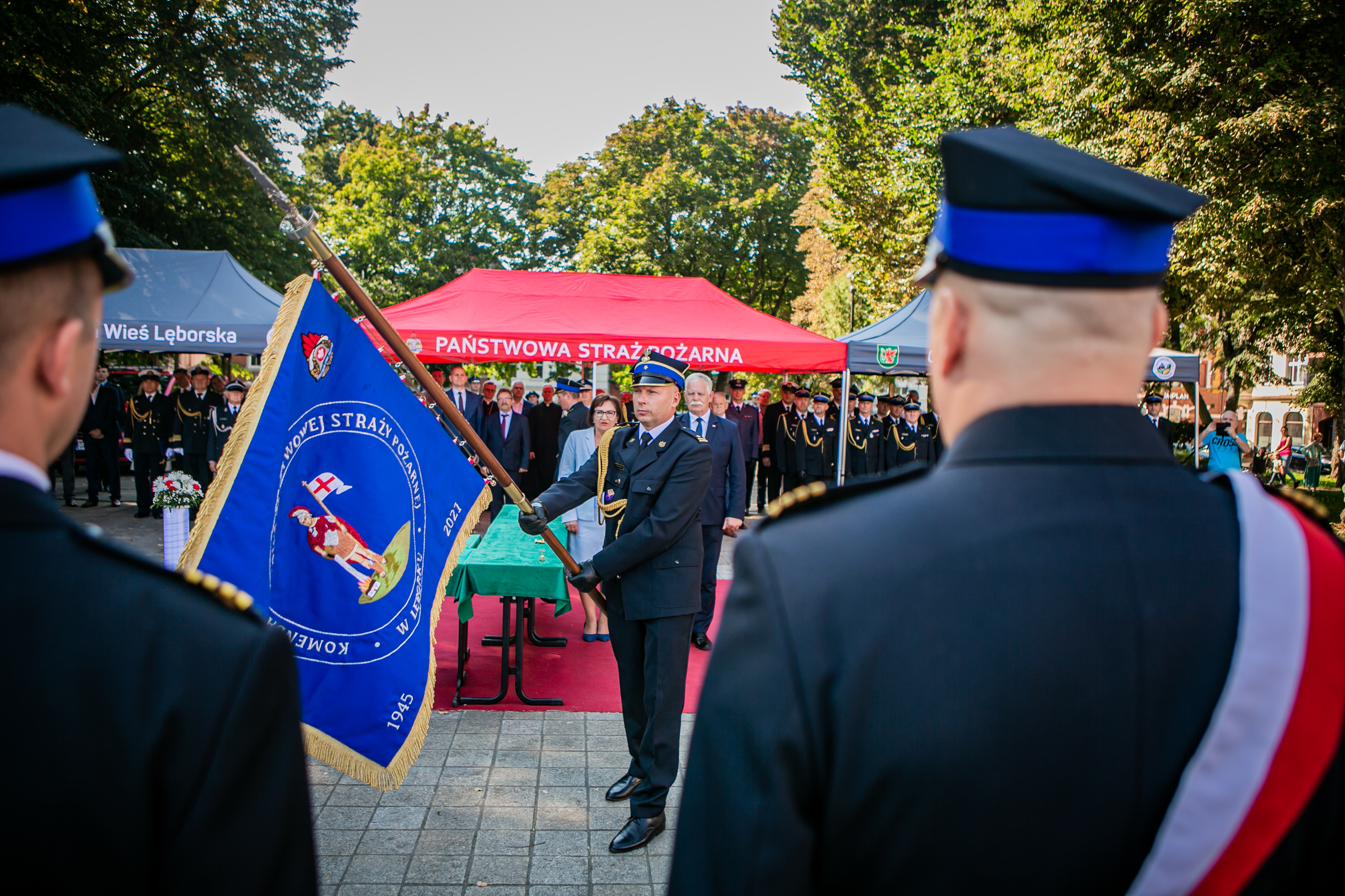 Przewodnicząca społecznego komitetu ufundowania sztandaru Pani Alicja Zajączkowska – Starosta Lęborski przekazała sztandar na ręce Pana Mariusza Łuczyk – Wicewojewody Pomorskiego. W imieniu lęborskich strażaków sztandar przyjął Komendant Powiatowy PSP w Lęborku mł. bryg. Piotr Krzemiński, przekazując go następnie pocztowi sztandarowemu Komendy Powiatowej PSP w Lęborku. Na koniec dokonano prezentacji sztandaru przed pododdziałami strażaków oraz zaproszonymi gośćmi.