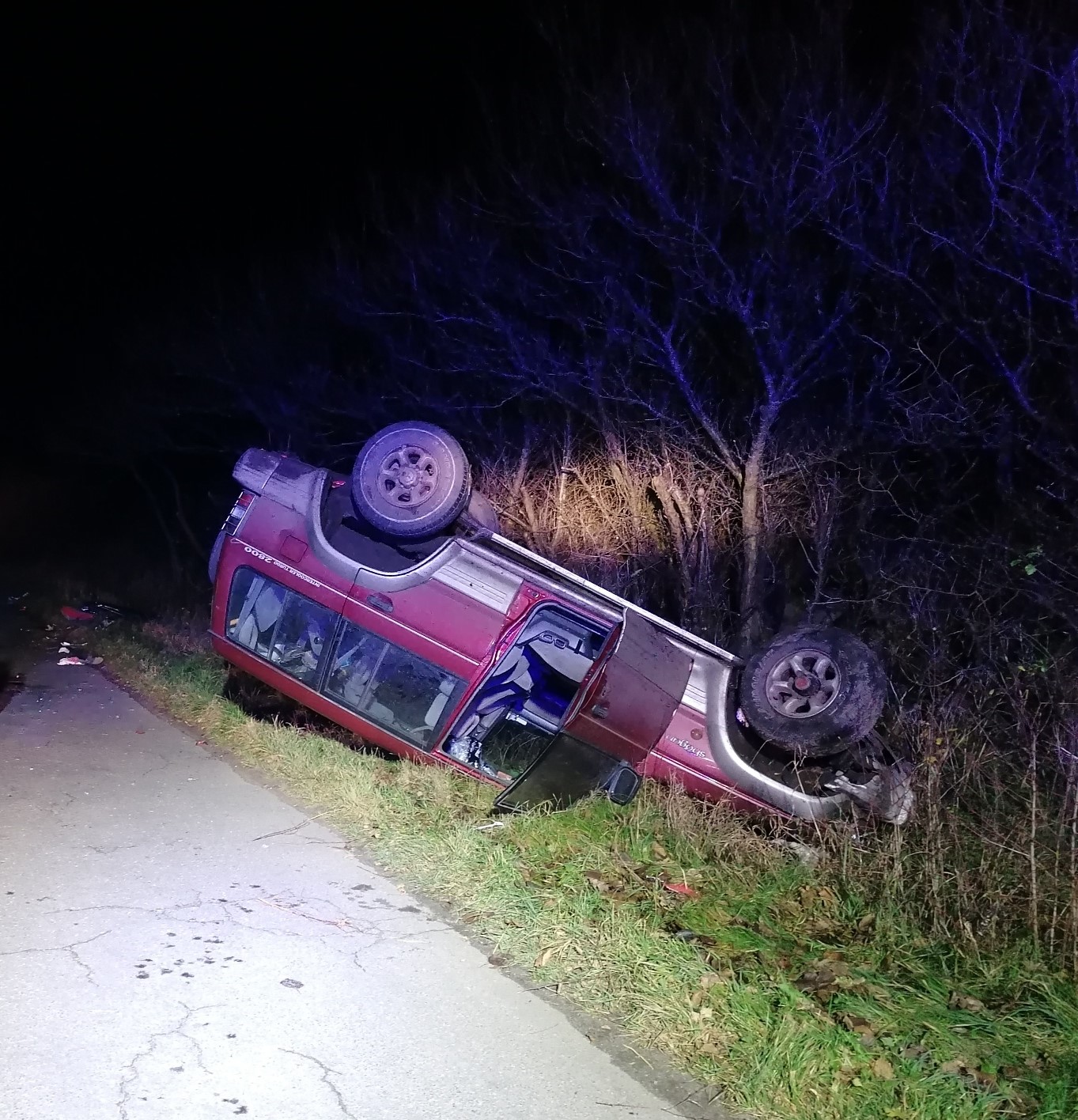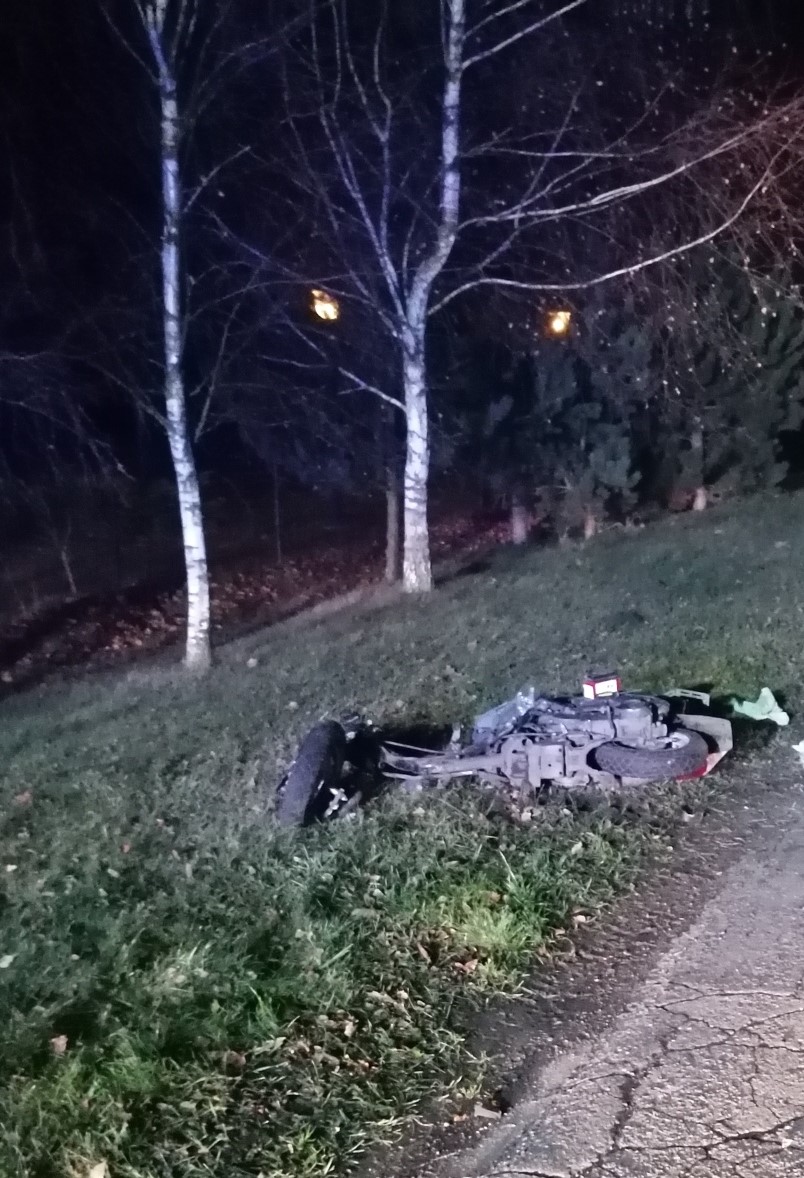 Po przybyciu na miejsce zdarzenia stwierdzono, że na drodze gminnej doszło do wypadku drogowego z udziałem samochodu terenowego i motoroweru. W wyniku zdarzenia samochód terenowy przewrócił się na dach. Kierujący pojazdem terenowym nie odniósł obrażeń, natomiast u kierującego motorowerem przybyły na miejsce zdarzenia lekarz stwierdził zgon. Działania zastępów ochrony przeciwpożarowej polegały na odłączeniu akumulatorów w pojazdach, usunięciu pozostałości rozbitych elementów karoserii oraz oświetleniu miejsca zdarzenia na czas prowadzonych czynności dochodzeniowo - śledczych.