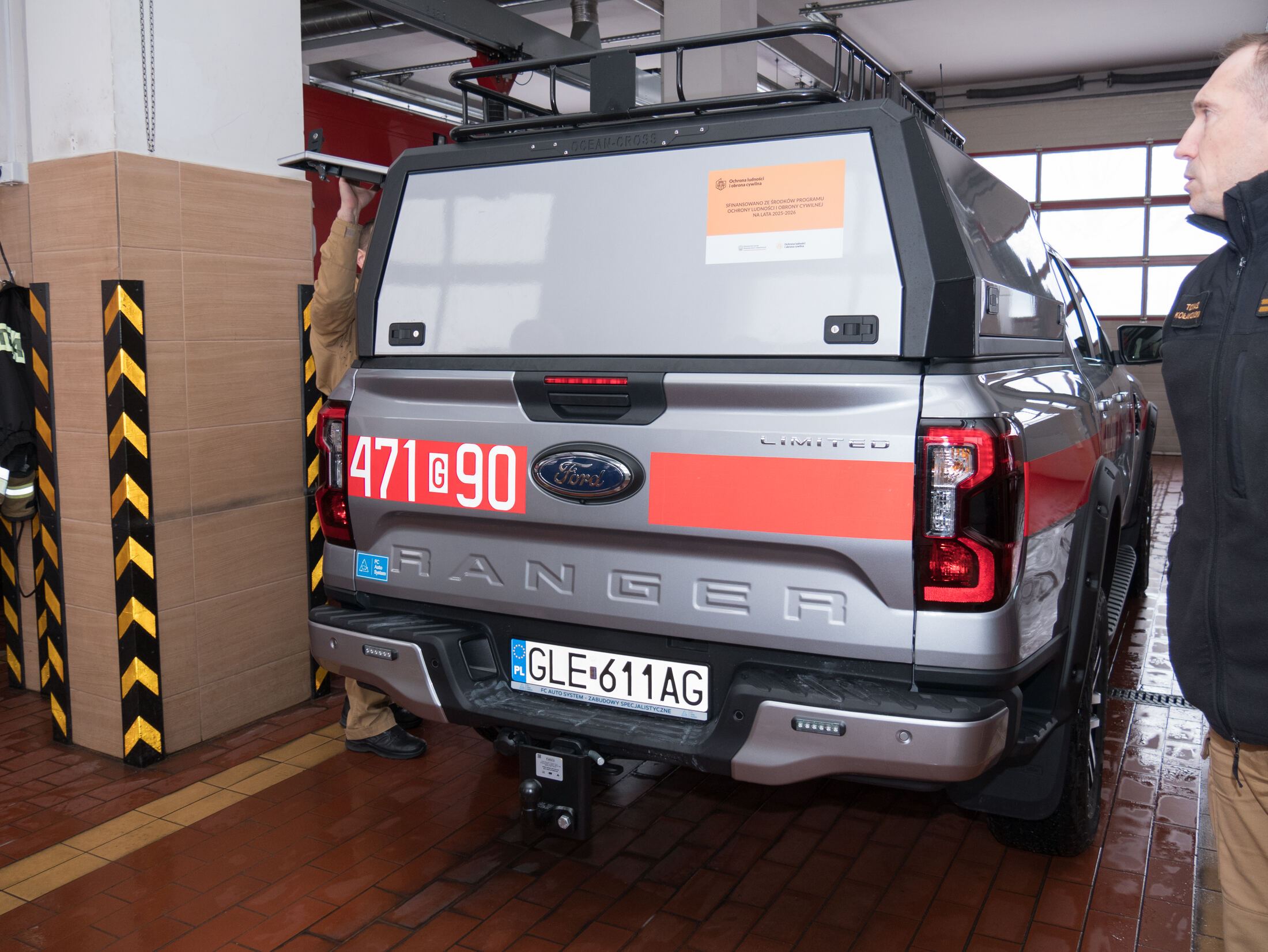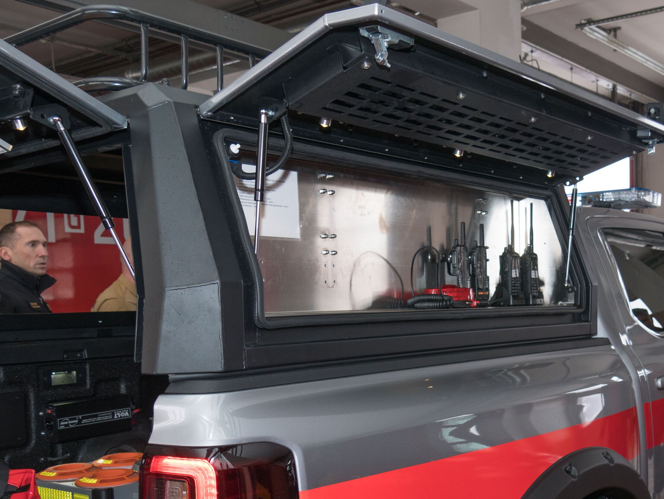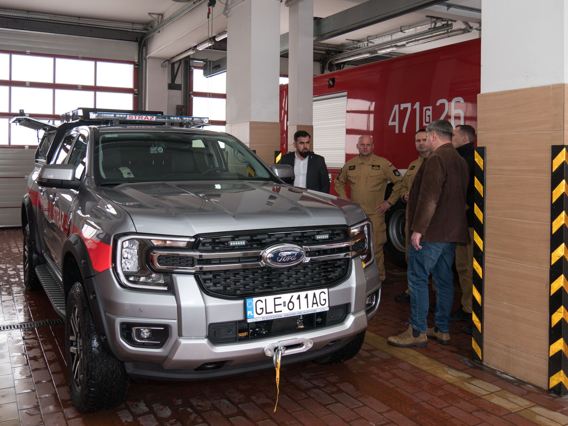 - lekki rozpoznawczo-ratowniczy samochód specjalny marki Ford model Ranger Limited z automatyczną skrzynią biegów oraz napędem 4x4, przystosowany do przewozu 5 osób. Samochód posiada podwyższone zawieszenie oraz systemy napędu umożliwiające pokonywanie trudnych terenów. Na wyposażeniu samochodu znajdują się m. in. radiotelefony cyfrowe oraz pracujące w systemie Tetra, sprzęt burzący, torba ratownictwa medycznego PSP-R1, latarki, mobilny maszt antenowy oraz dron klasy C wyposażony w kamerę termowizyjną.