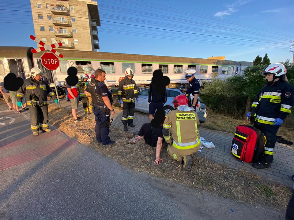 Na miejscu zdarzenia zastano jedną osobę poszkodowaną z widocznym urazem głowy, której udzielono KPP. Pozostałe osoby podróżujące samochodem i pociągiem bez żadnych obrażeń.