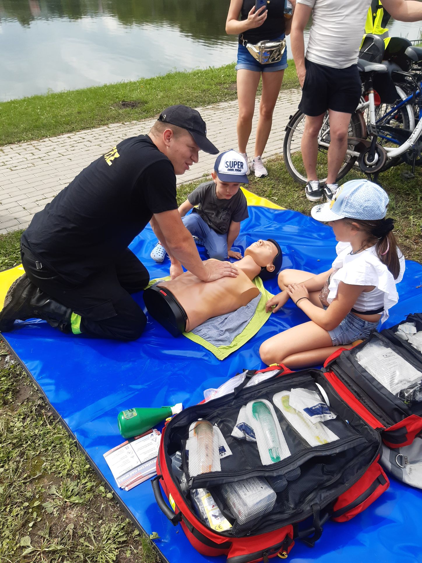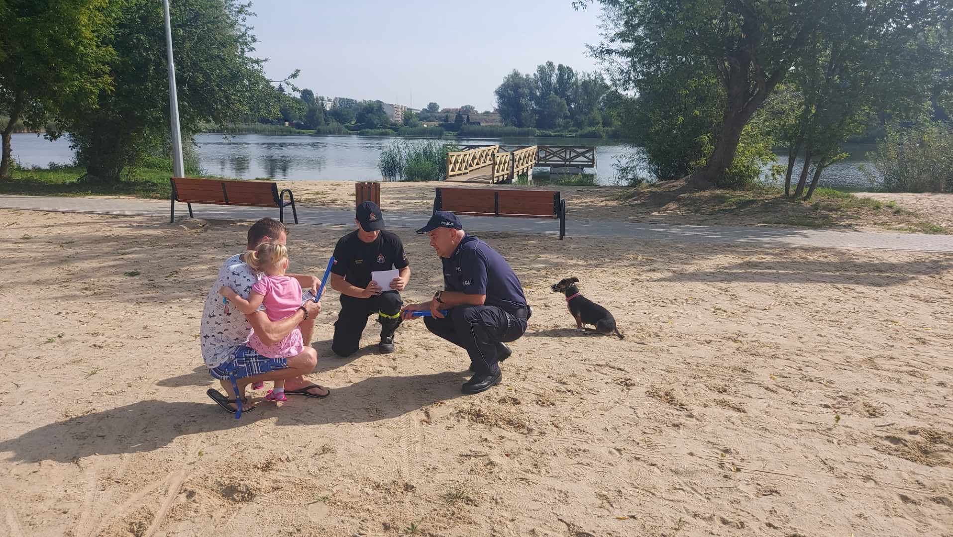 Strażacy wraz z policjantami opowiadali zgromadzonym osobom o zagrożeniach jakie mogą je spotkać podczas przebywania nad wodą. Funkcjonariusze przekazali również podstawowe informacje dotyczące udzielania pierwszej pomocy.