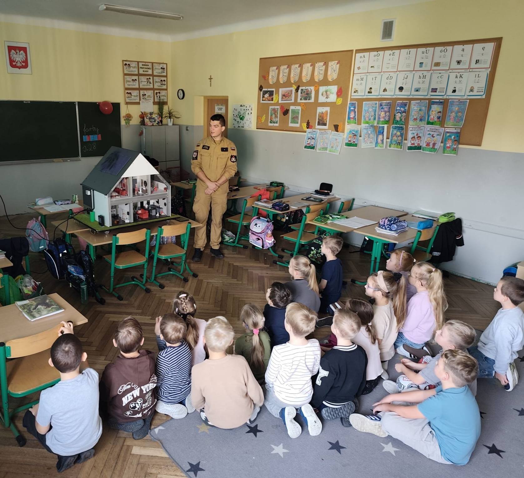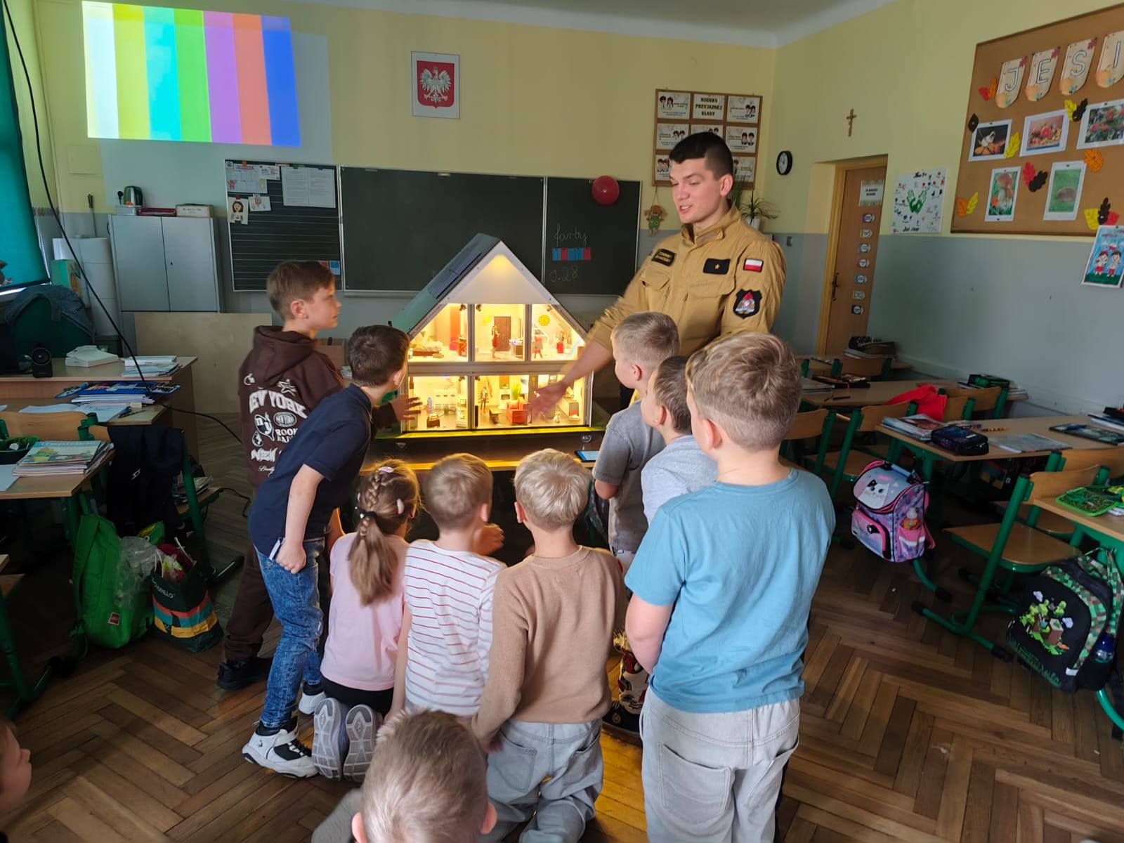 W dniu 20 listopada 2025 r. funkcjonariusze Komendy Powiatowej Państwowej Straży Pożarnej w Łęczycy w ramach kampanii edukacyjno- informacyjnej pn. "Czad i ogień. Obudź czujność" przeprowadzili prelekcje w łęczyckich szkołach podstawowych oraz w Środowiskowym Domu Samopomocy. Podczas spotkań korzystano z mobilnego symulatora zagrożeń pożarowych czyli profesjonalnej makiety budynku jednorodzinnego z pełnym wyposażeniem, który zobrazował do jakich pożarów może dojść w mieszkaniu.