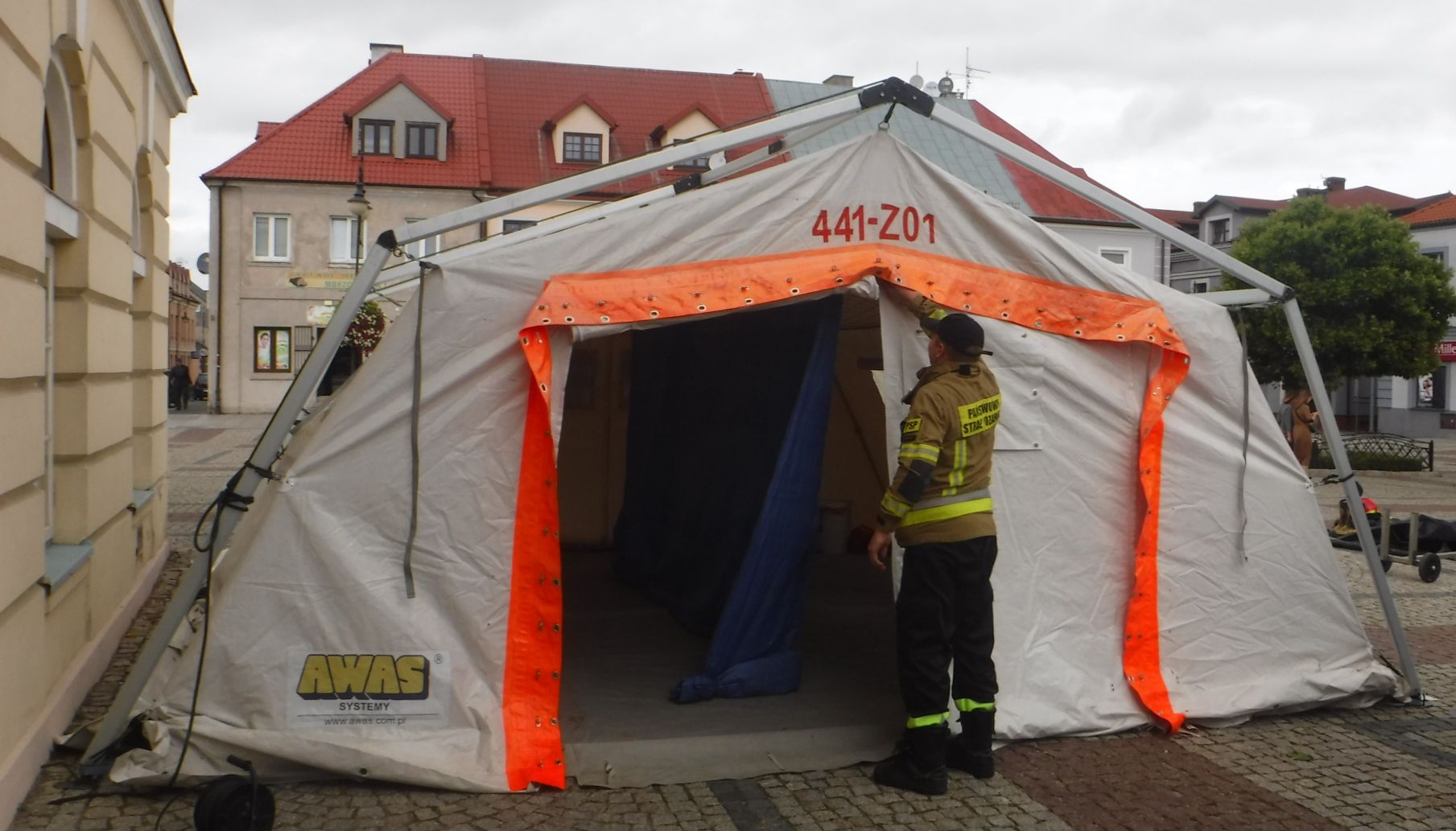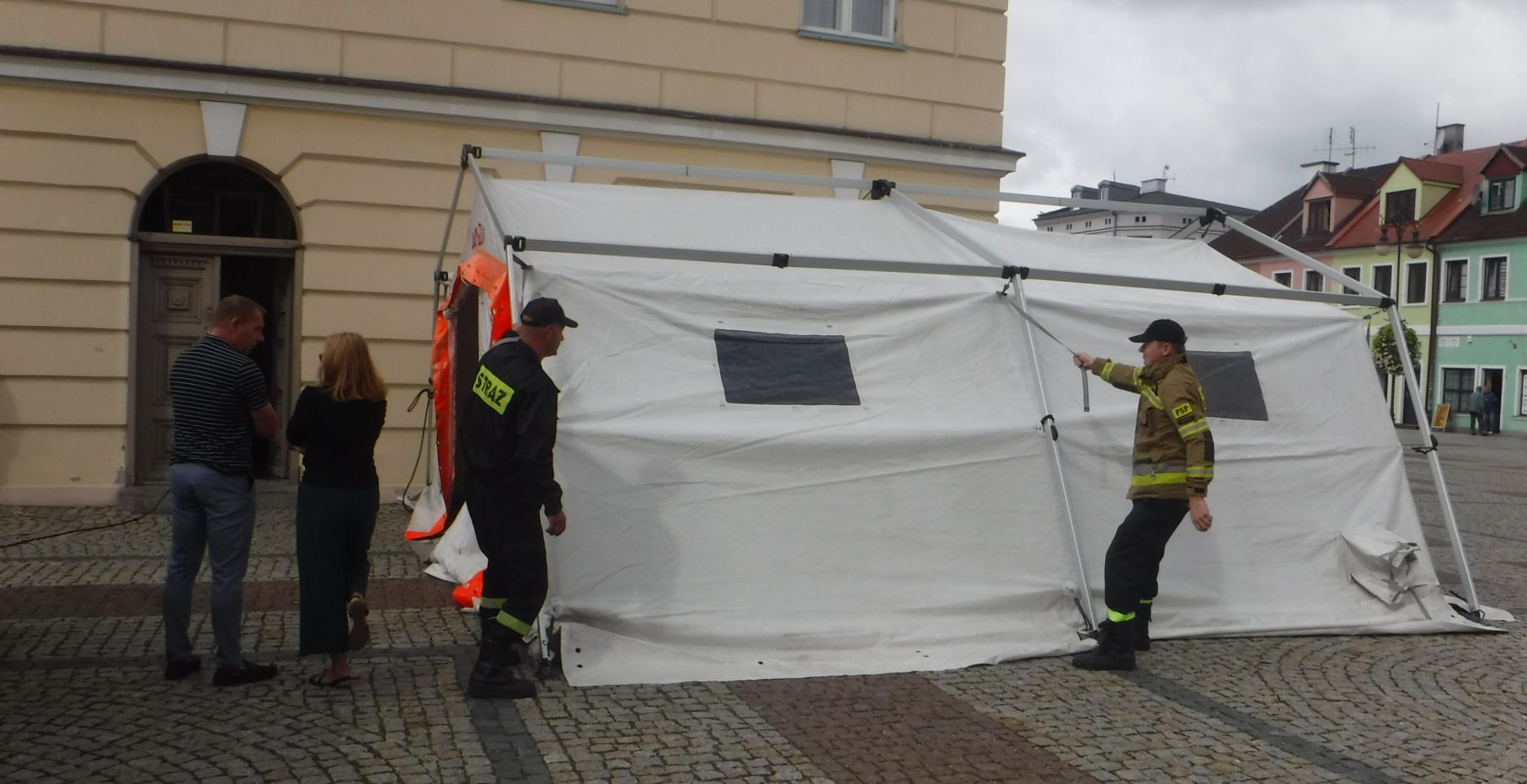 Strażacy z Komendy Powiatowej Państwowej Straży Pożarnej we współpracy z druhami z OSP w Leźnicy Małej i Topoli Królewskiej pomogli zorganizować punkt szczepień poprzez ustawienie namiotu oraz zabezpieczanie miejsce przez cały czas trwania szczepień.