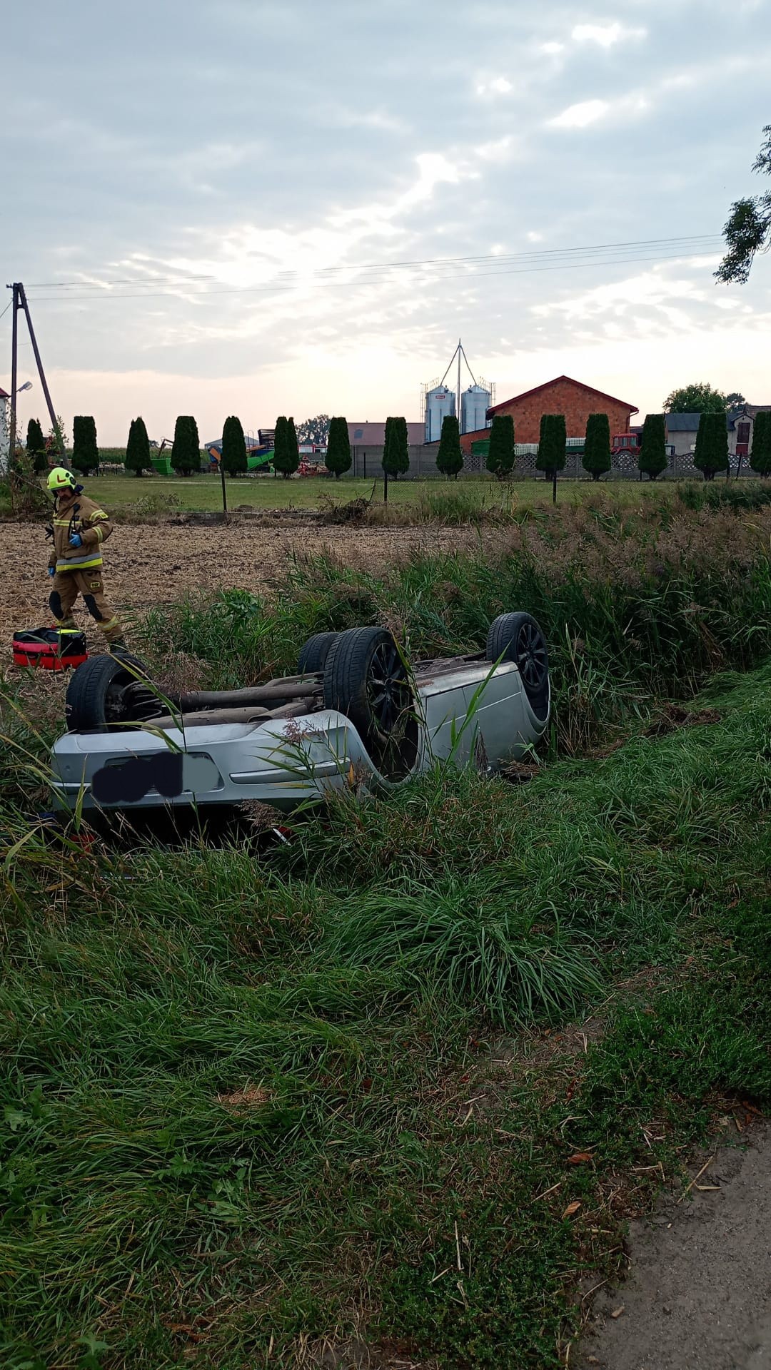 Dachowanie samochodu osobowego w miejscowości Błonie, gm. Łęczyca - 29.08.2025 r.