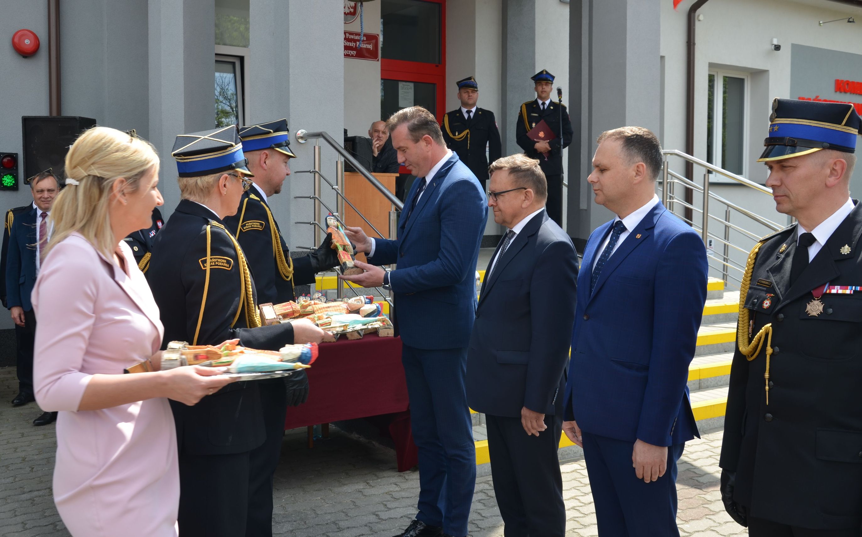 Zaprzyjaźnionym firmom, osobom oraz byłym komendantom i zastępcom komendanta powiatowego PSP w Łęczycy bryg. Marcin Adamiak, komendant powiatowy Państwowej Straży Pożarnej w Łęczycy wręczył rzeźbę św. Floriana w łęczyckim stroju ludowym z XIX wieku w dowód uznania za okazaną pomoc dla tut. komendy.
