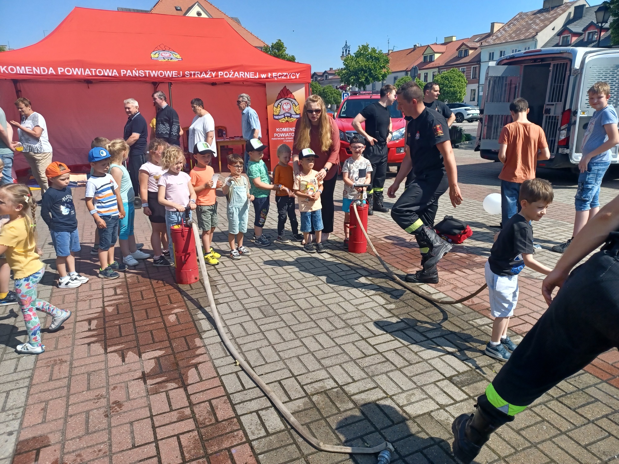 Funkcjonariusze Komendy Powiatowej PSP w Łęczycy wspólnie z funkcjonariuszami: Komendy Powiatowej Policji w Łęczycy, Zakładu Karnego w Garbalinie oraz żołnierzami brali udział w pikniku służb mundurowych.