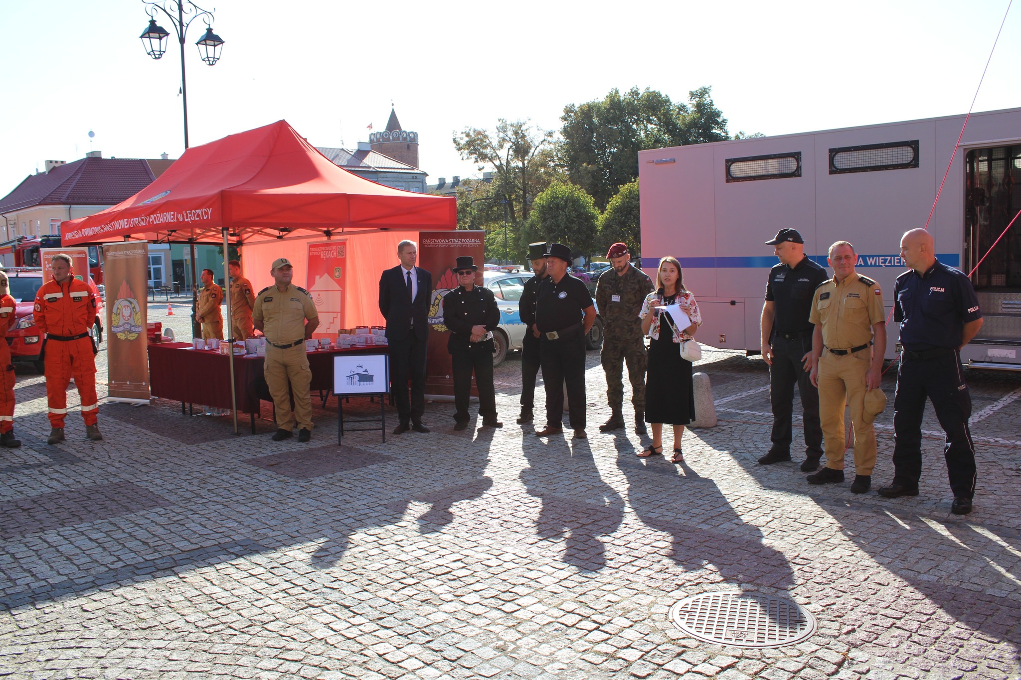Funkcjonariusze Komendy Powiatowej Państwowej Straży Pożarnej w Łęczycy wspólnie z funkcjonariuszami: Komendy Miejskiej Państwowej Straży Pożarnej w Łodzi (Specjalistyczna Grupa Ratownictwa Wysokościowego i Specjalistyczna Grupa Poszukiwawczo-Ratownicza), Komendy Powiatowej Policji w Łęczycy, Zakładu Karnego w Garbalinie, WWSM Kutno, 1 Batalionu Kawalerii Powietrznej w Leźnicy Wielkiej, 1 Dywizjonu Lotniczego w Leźnicy Wiekiej oraz druhami OSP Leźnica Mała, brali udział w IV edycji pikniku służb mundurowych pod hasłem "Łączy Nas Służba".