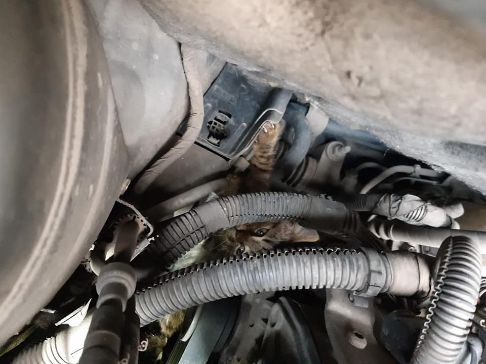 Kot uwięziony w komorze silnika samochodu – 14 listopada 2022 roku