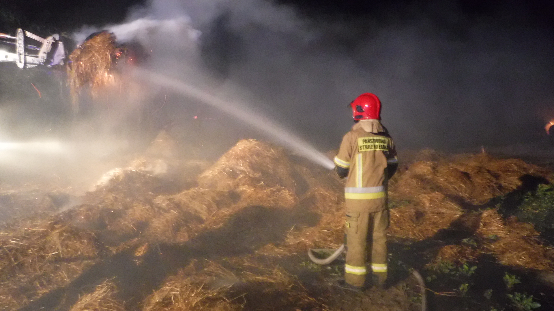 Po przybyciu na miejsce zdarzenia pierwszych zastępów straży pożarnej kierujący działaniem ratowniczym stwierdził, że na polu pali się 200 balotów słomy.