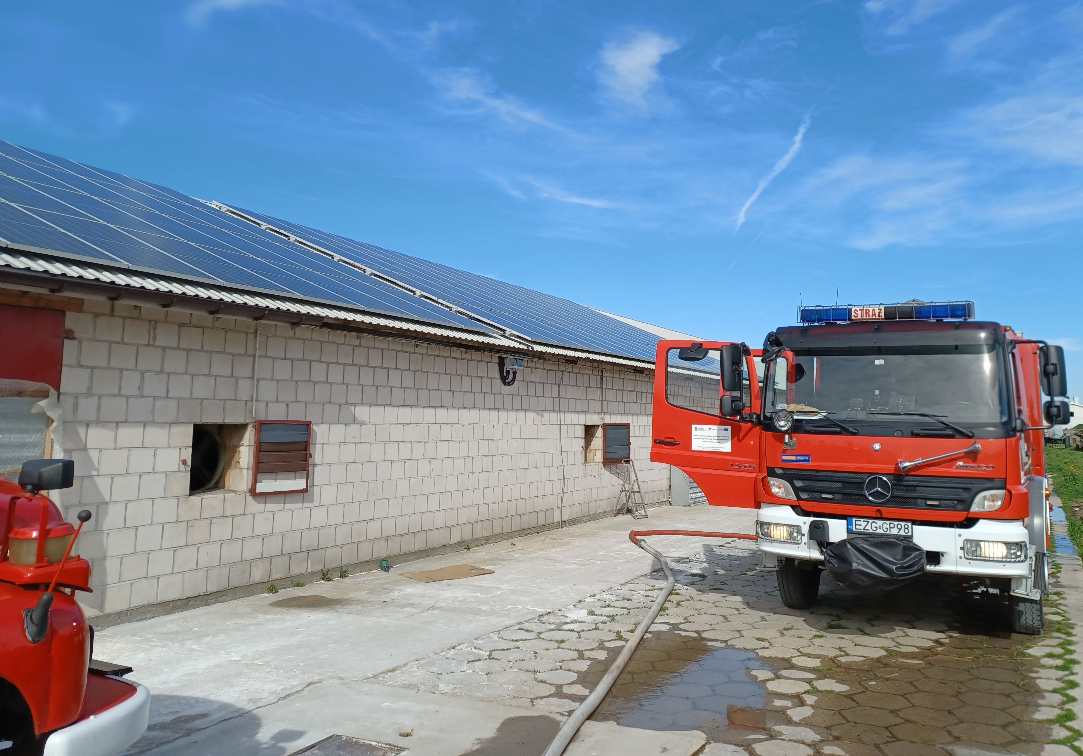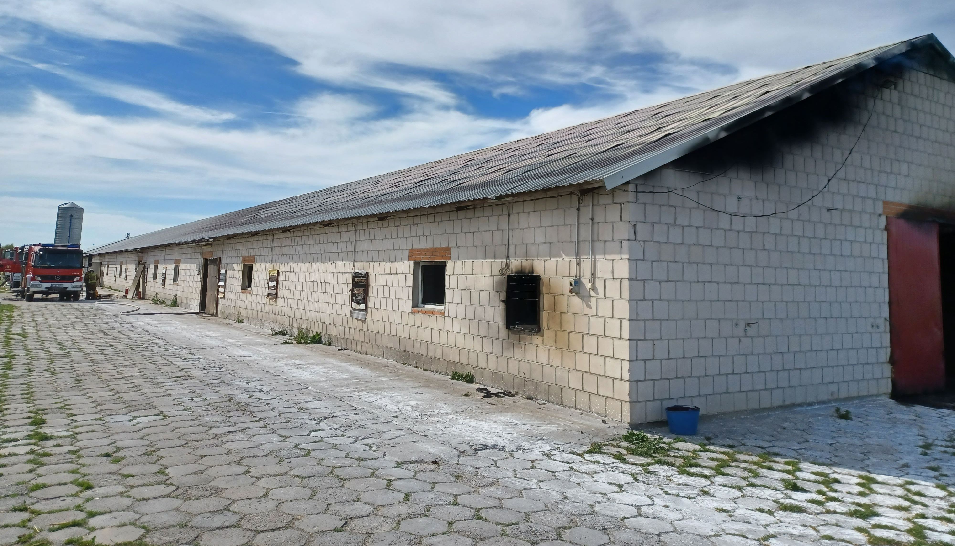Po przybyciu na miejsce zdarzenia pierwszych zastępów straży pożarnej kierujący działaniem ratowniczym stwierdził, że pali się budynek inwentarski (kurnik). Pożarem objęte było ok 900 m2 powierzchni budynku. W budynku, w chwili pożaru, nie było zwierząt.