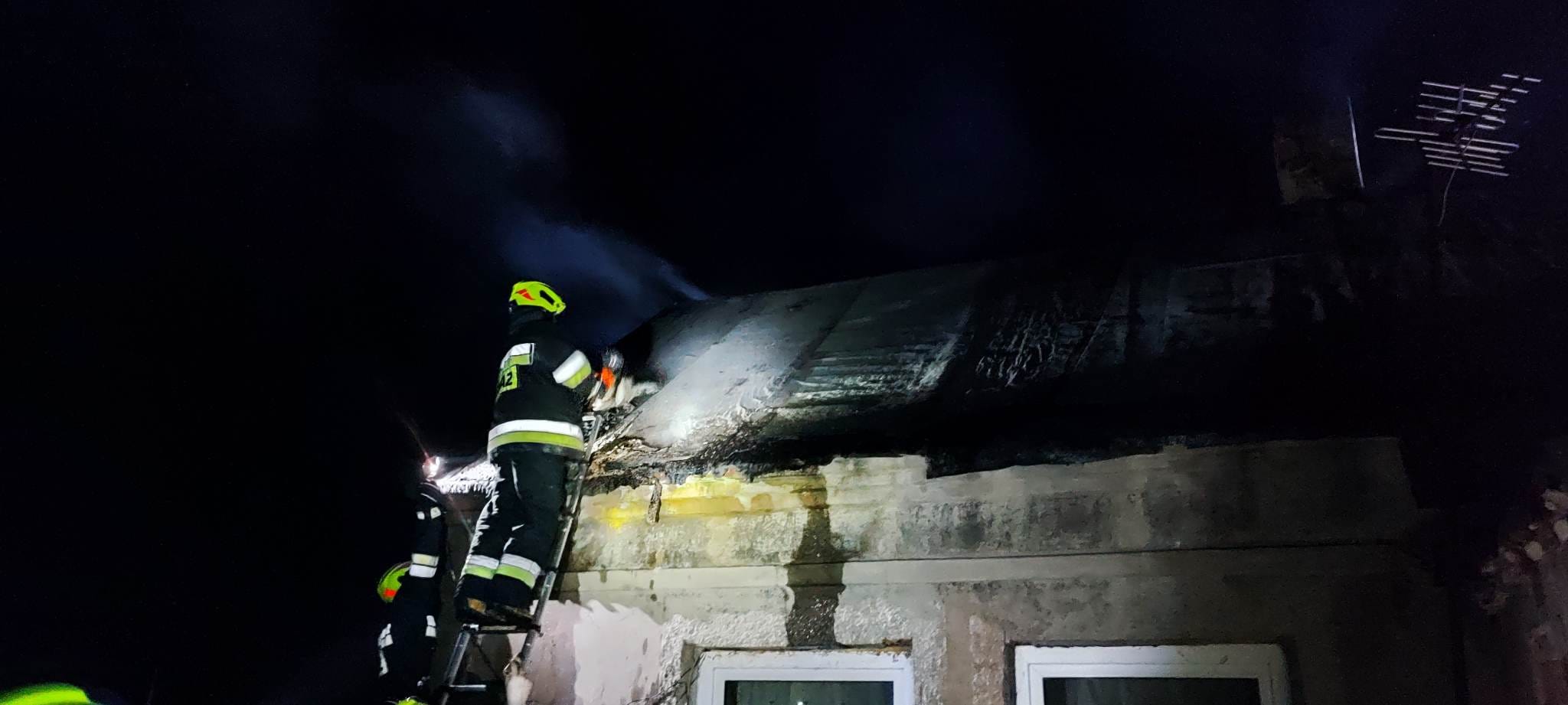 Działania straży pożarnej polegały na podawaniu jednego prądu wody w natarciu na palące się poddasze w budynku, przeszukaniu pomieszczeń- osób poszkodowanych nie stwierdzono, przewietrzaniu pomieszczeń, sprawdzeniu pomieszczeń detektorem wielogazowym oraz pracach rozbiórkowych konstrukcji dachu.