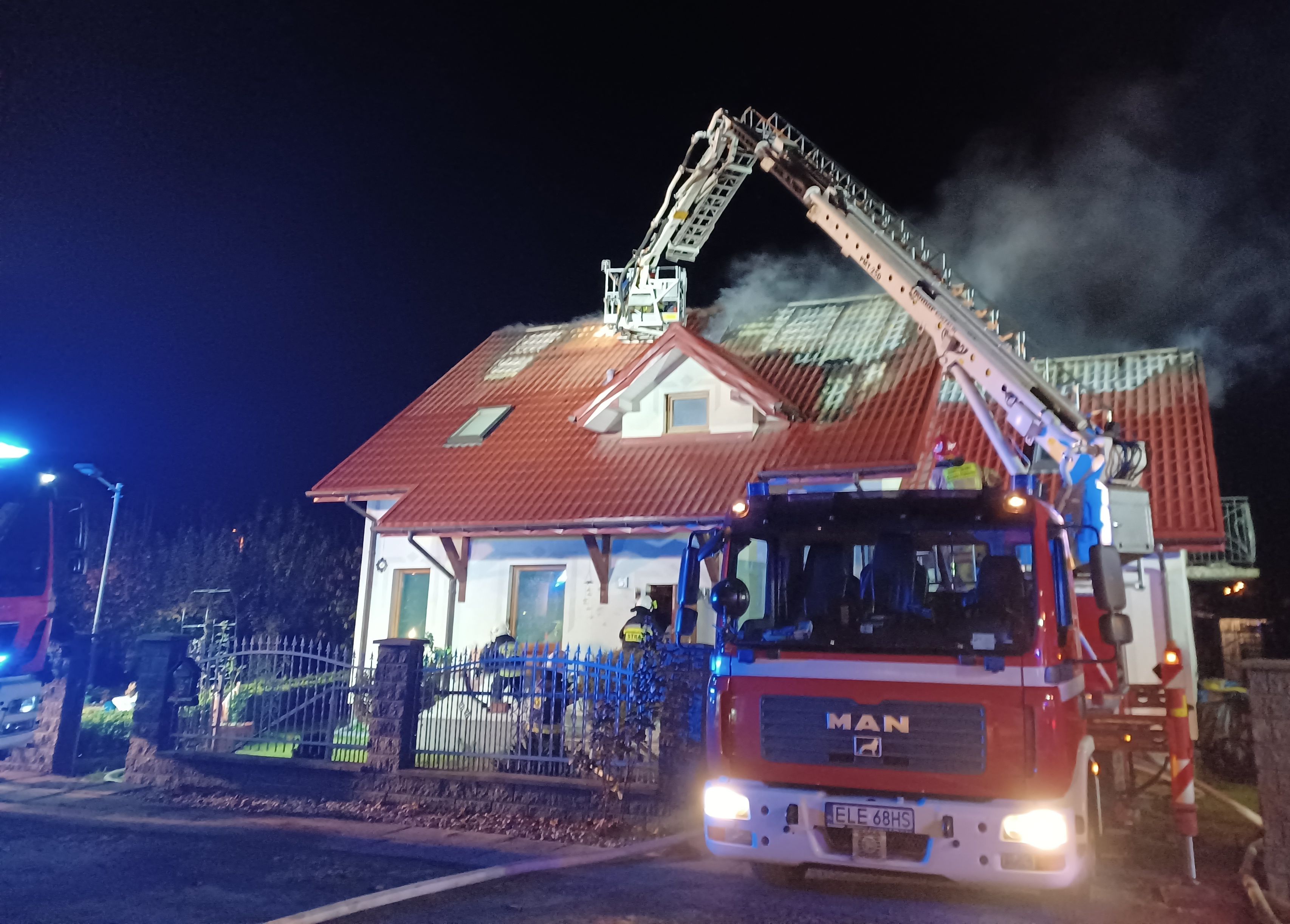 Po przybyciu na miejsce zdarzenia pierwszych zastępów straży pożarnej kierujący działaniem ratowniczym stwierdził, że pali się dach budynku mieszkalnego. Mieszkańcy, 6 osób, samodzielnie opuścili budynek przed przybyciem zastępów straży pożarnej.