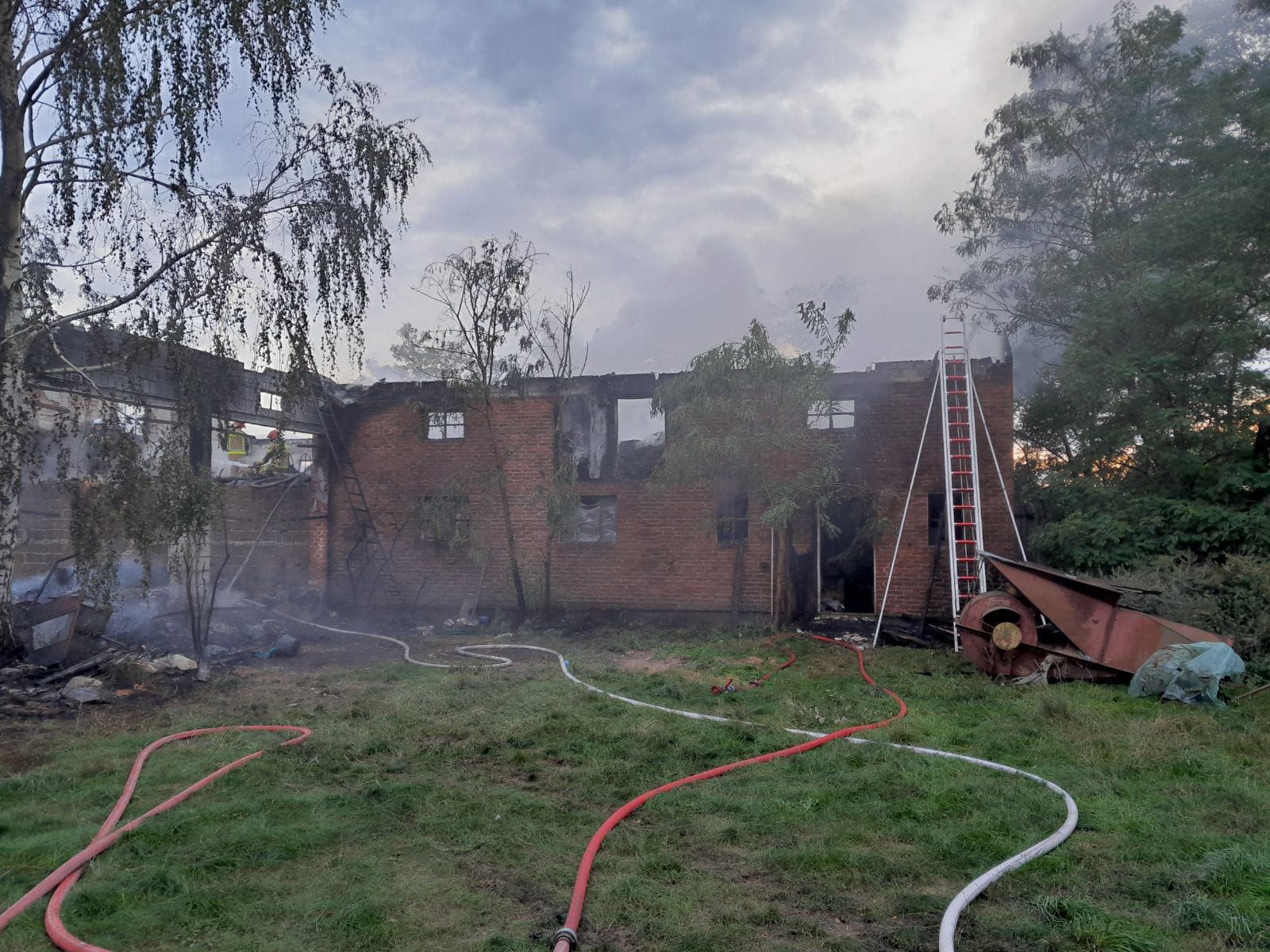 Działania straży pożarnej polegały na: podaniu czterech prądów wody w natarciu na palący się budynek oraz wyniesieniu nadpalonych rzeczy i dogaszeniu na zewnątrz obiektu.