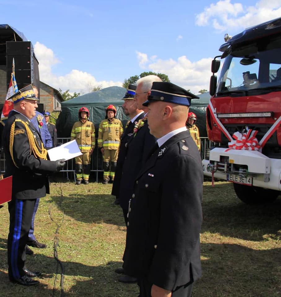 Ponadto, podczas uroczystości dotychczasowy samochód Komendy Powiatowej PSP w Łęczycy- Mercedes Atego GBA 2,5/16 został przekazany druhom Ochotniczej Straży Pożarnej w Sławęcinie.
