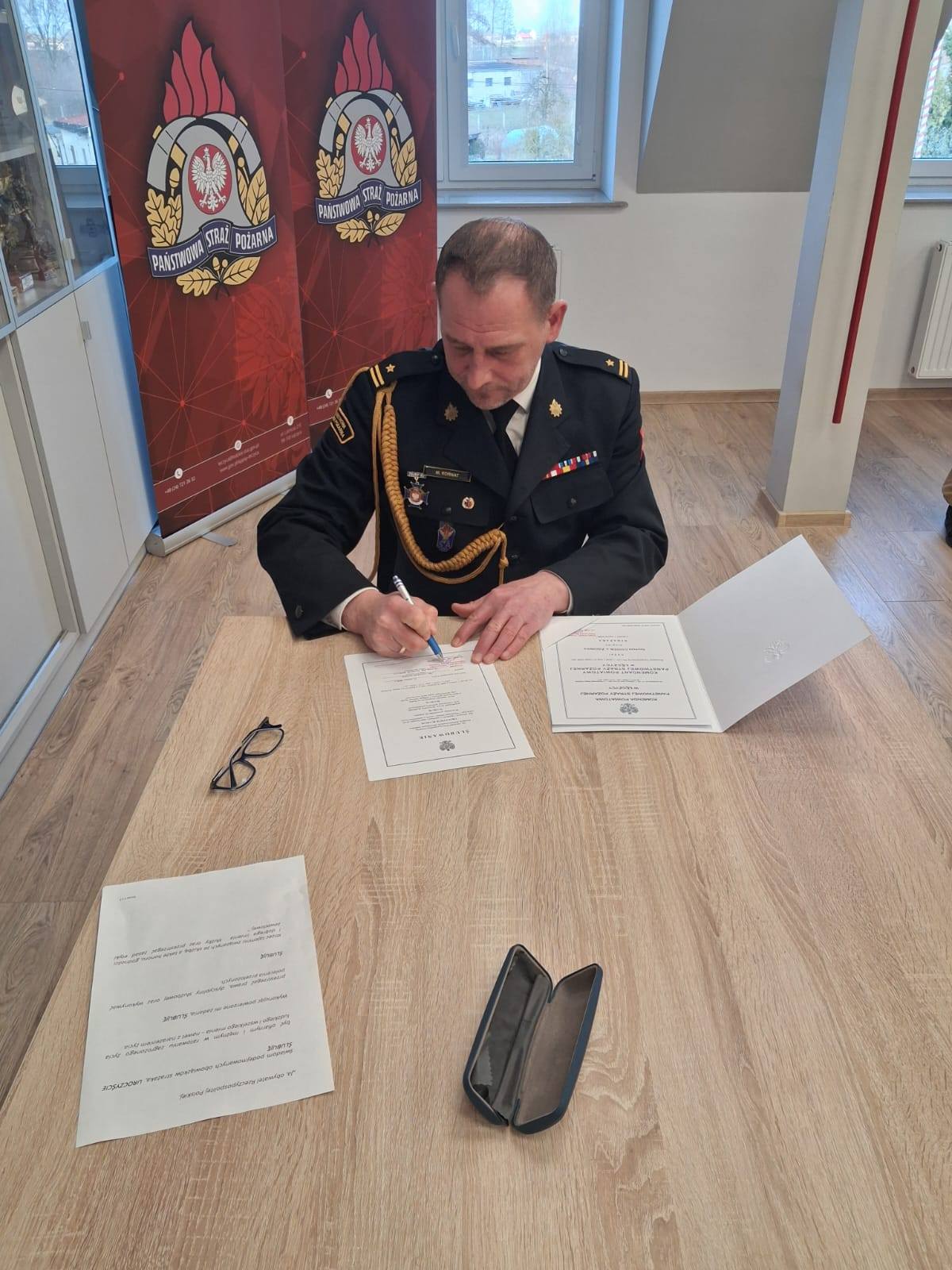 przyjął Komendant Powiatowy Państwowej Straży Pożarnej w Łęczycy- mł. bryg. Marcin Kornat.