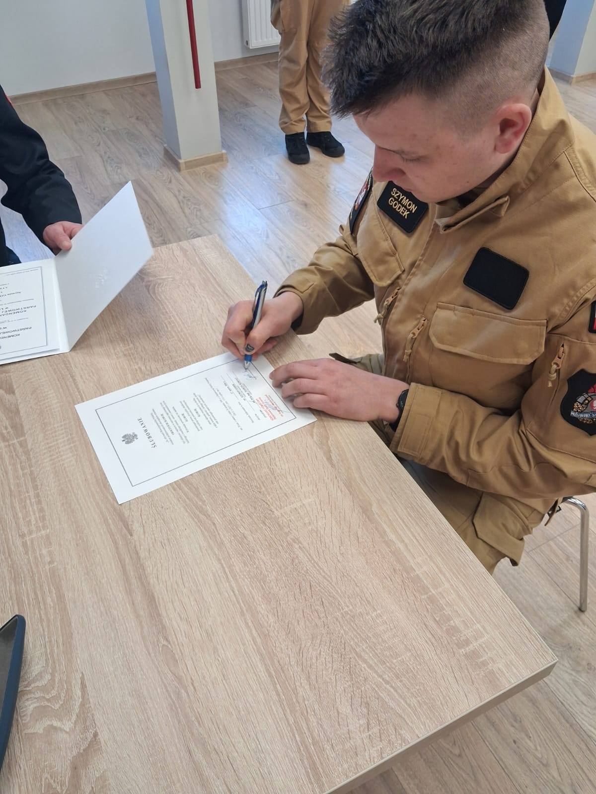 W dniu 17.03.2026 r. w Komendzie Powiatowej Państwowej Straży Pożarnej w Łęczycy odbył się uroczysty apel z okazji ślubowania, które złożył strażak przyjęty do służby przygotowawczej w Państwowej Straży Pożarnej.