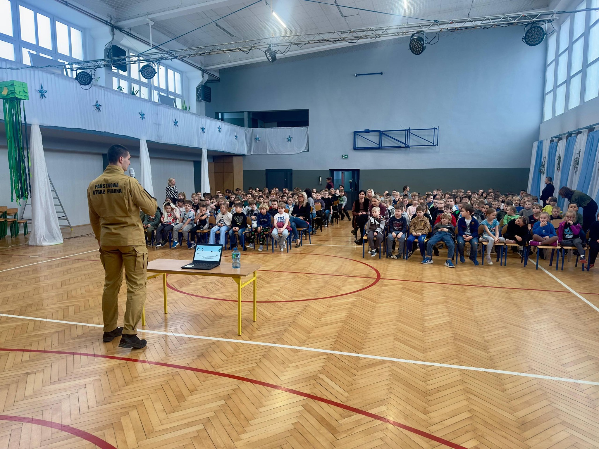 Funkcjonariusze z Komendy Powiatowej Państwowej Straży Pożarnej w Łęczycy w dniach 22, 27 i 28 stycznia przeprowadzili w szkołach podstawowych na terenie Łęczycy spotkania edukacyjne z udziałem dzieci, młodzieży oraz nauczycieli pod hasłem "Bezpieczne ferie 2026".