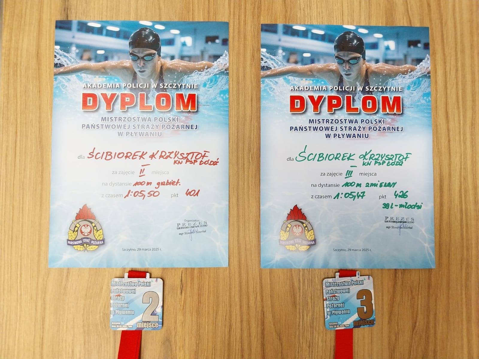 Sekc. Krzysztof Ścibiorek z Komendy Powiatowej PSP w Łęczycy zdobył dwa medale w pływaniu: srebrny na 100 m stylem grzbietowym i brązowy na 100 m stylem zmiennym .