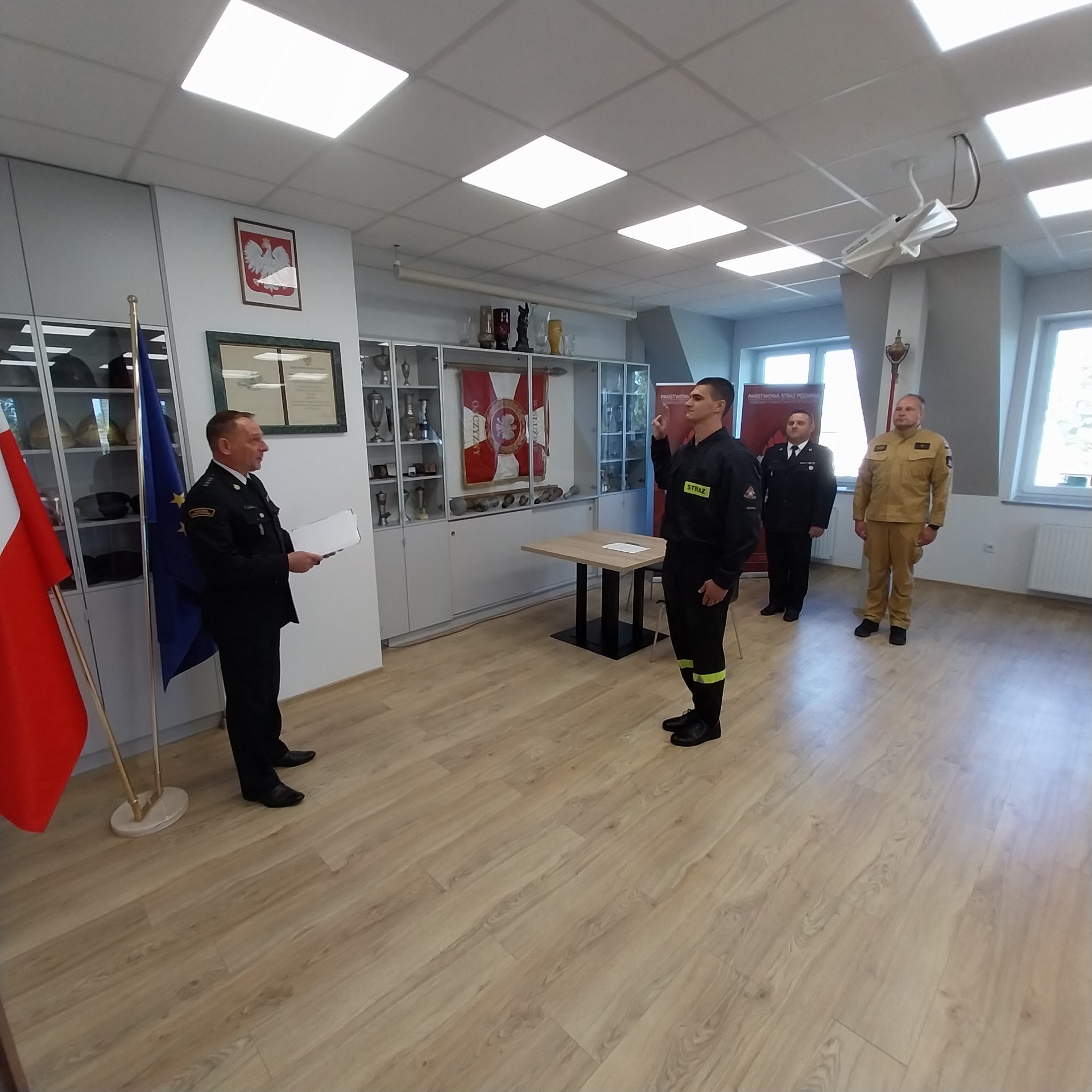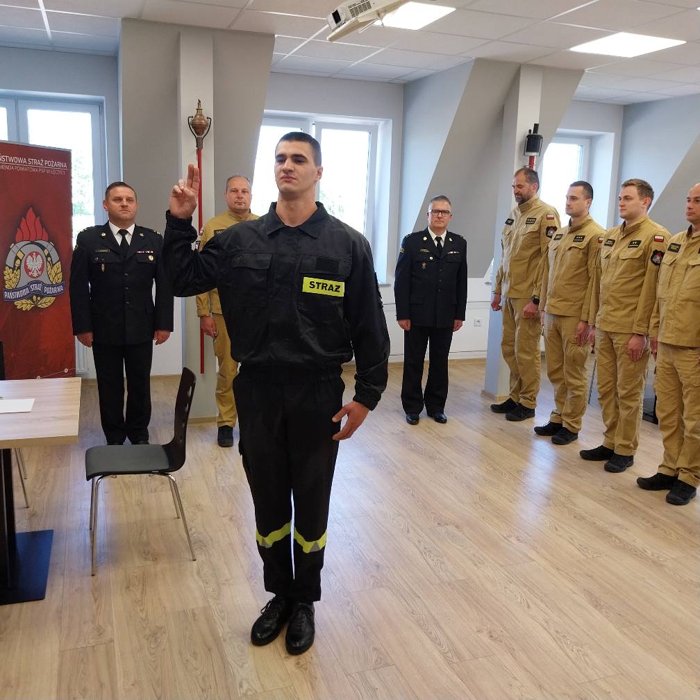 W dniu 06.05.2025 r. w Komendzie Powiatowej Państwowej Straży Pożarnej w Łęczycy odbył się uroczysty apel z okazji ślubowania, które złożył strażak przyjęty do służby przygotowawczej w Państwowej Straży Pożarnej.