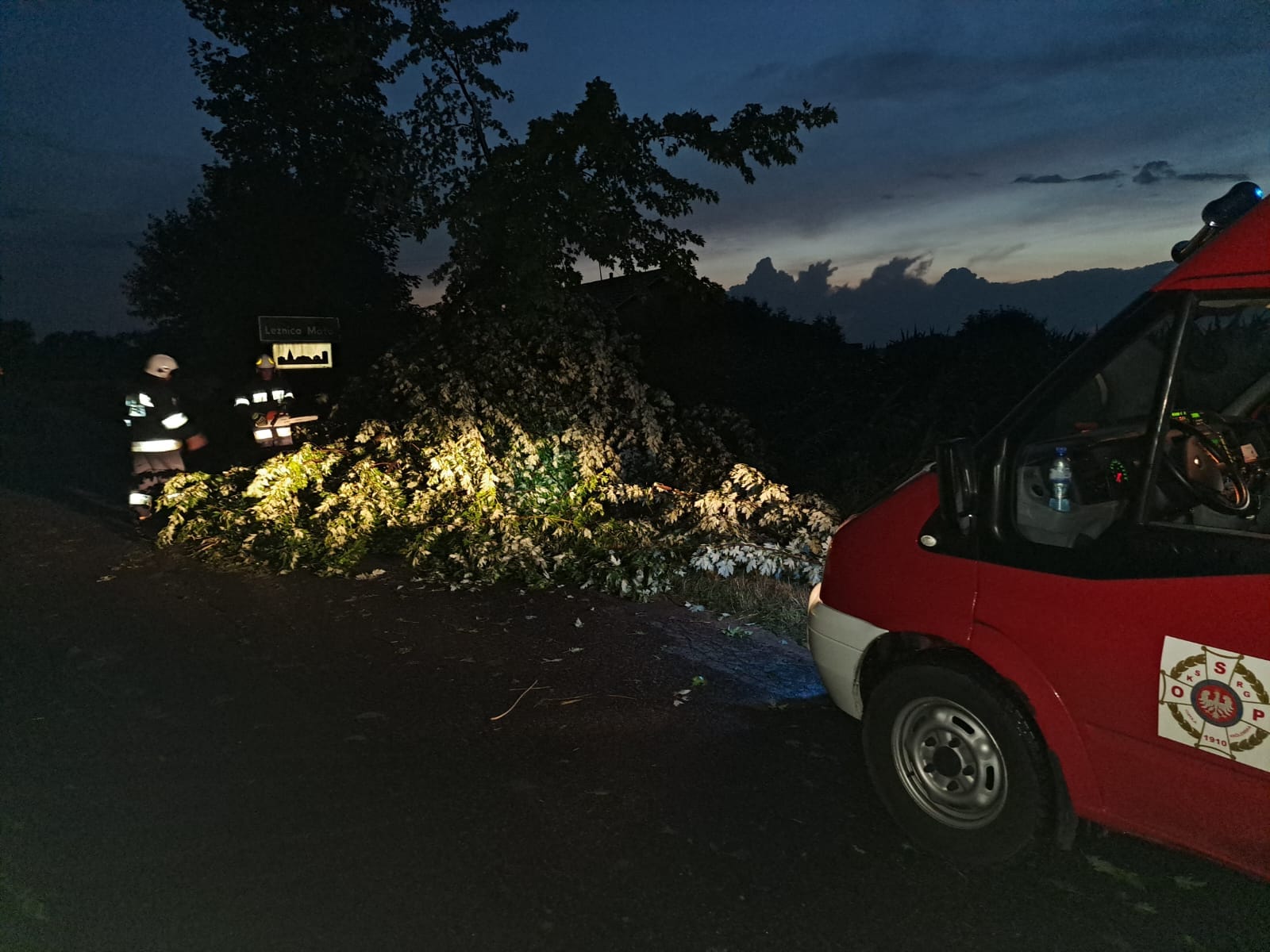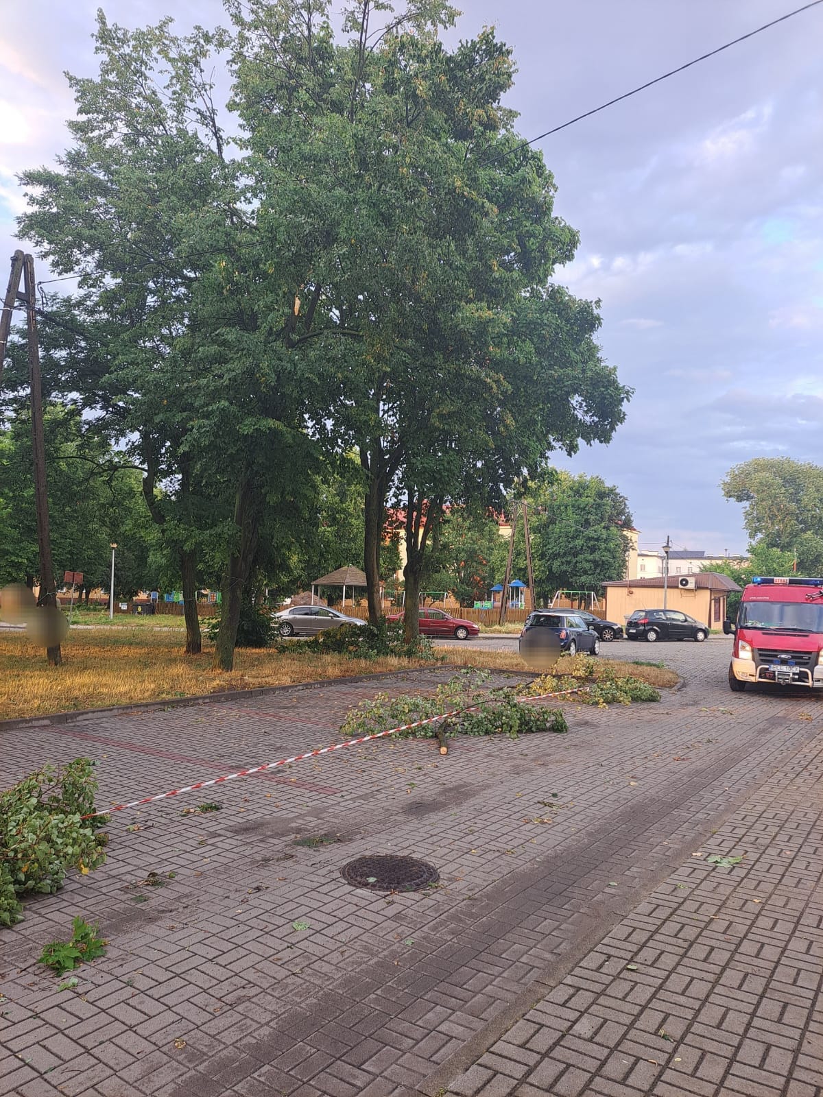 We wszystkich działaniach ratowniczych w dniu 12 lipca 2023 r. związanych z usuwaniem skutków silnego wiatru i opadów, udział brało ok. 100 strażaków, zarówno PSP i OSP.
