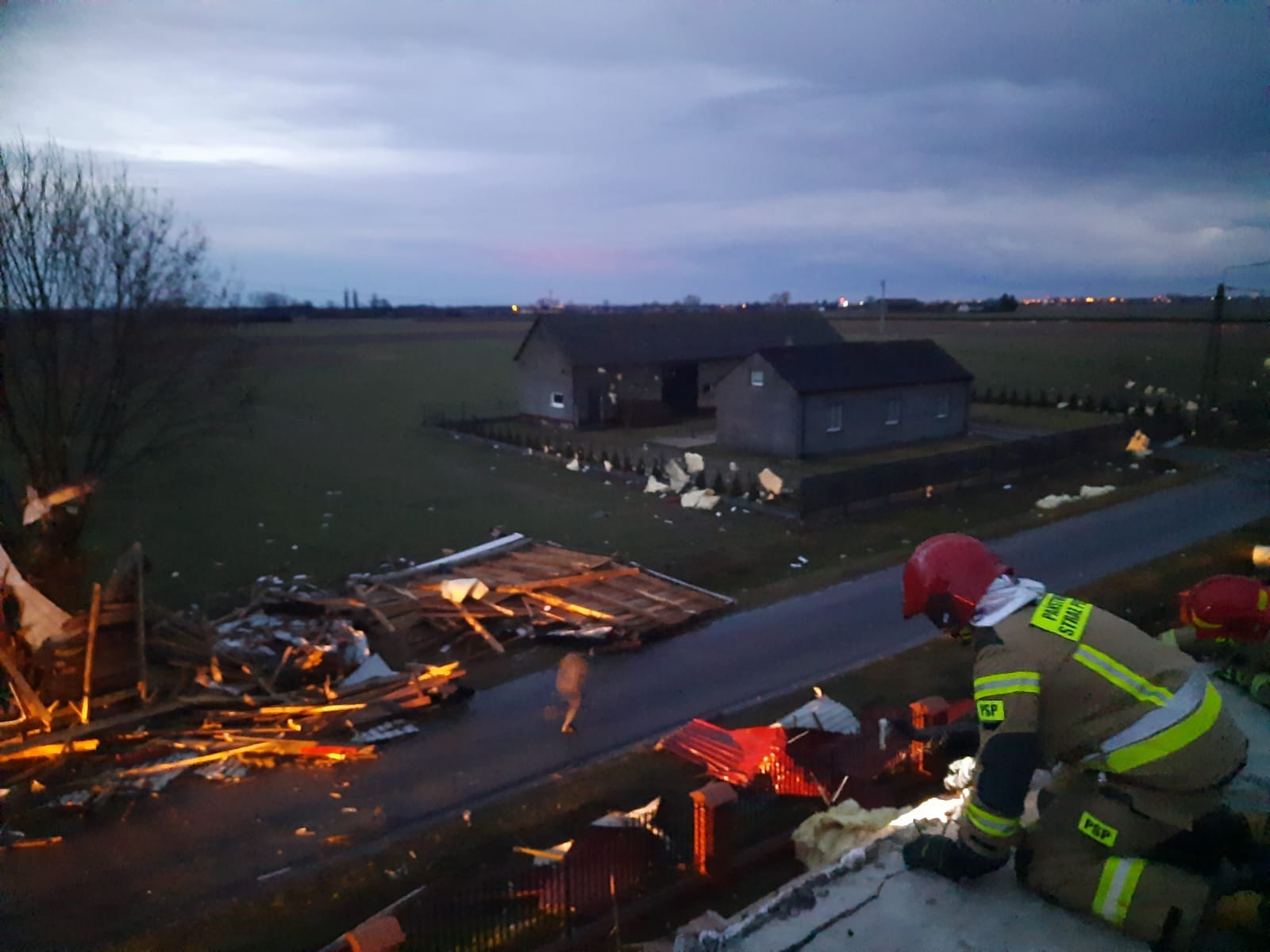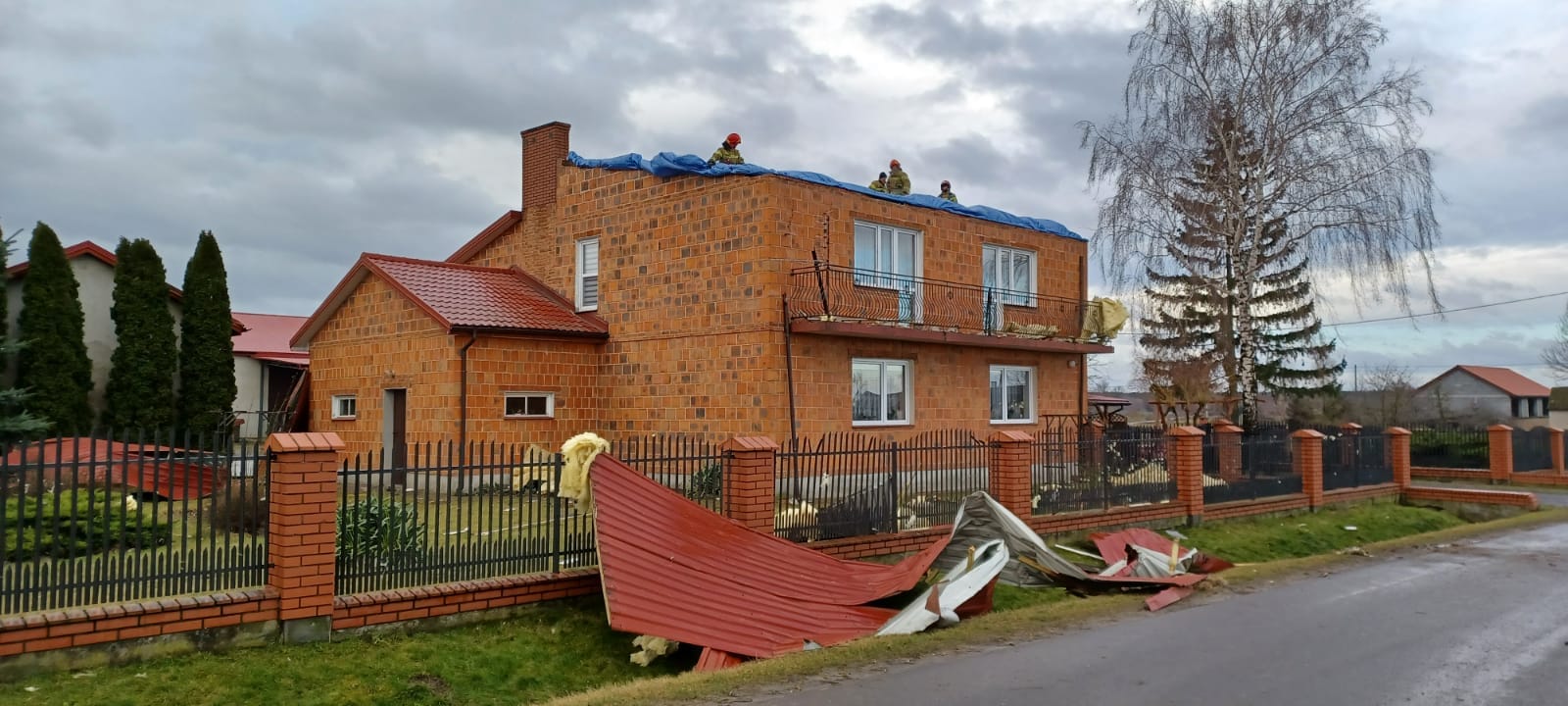 Działania straży pożarnej polegają na: zabezpieczaniu uszkodzonych połaci dachowych budynków mieszkalnych, gospodarczych i inwentarskich, usuwaniu powalonych drzew oraz zabezpieczaniu zerwanych linii energetycznych oraz połamanych słupów energetycznych.