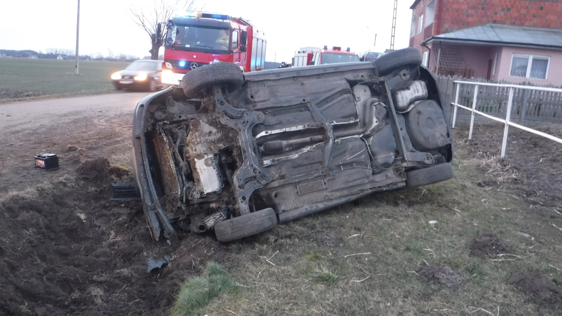Po przybyciu na miejsce zdarzenia pierwszych zastępów straży pożarnej kierujący działaniem ratowniczym stwierdził, że samochód osobowy leży na boku w rowie. Osoba poszkodowana samodzielnie opuściła pojazd przed przybyciem zastępów straży pożarnej. Po udzieleniu kwalifikowanej pierwszej pomocy mężczyzna został przekazany przybyłej na miejsce zdarzenia załodze karetki pogotowia. Poszkodowany został przewieziony do szpitala w Łęczycy.