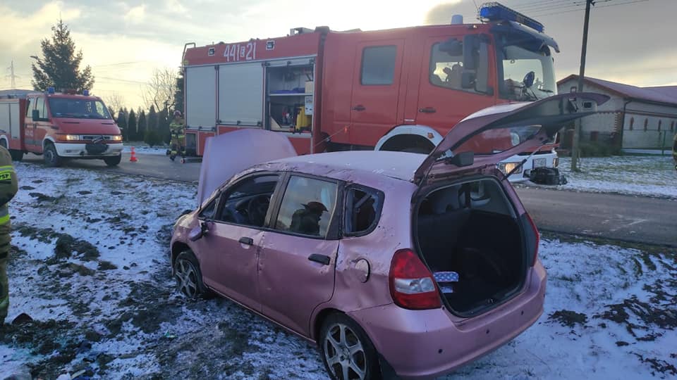 18 stycznia 2022 roku o godz. 8.48 do Stanowiska Kierowania Komendanta Powiatowego Państwowej Straży Pożarnej w Łęczycy wpłynęło zgłoszenie o samochodzie osobowym, który wypadł z jezdni i znajduje się na boku poza drogą w miejscowości Wąkczew, gm. Łęczyca.