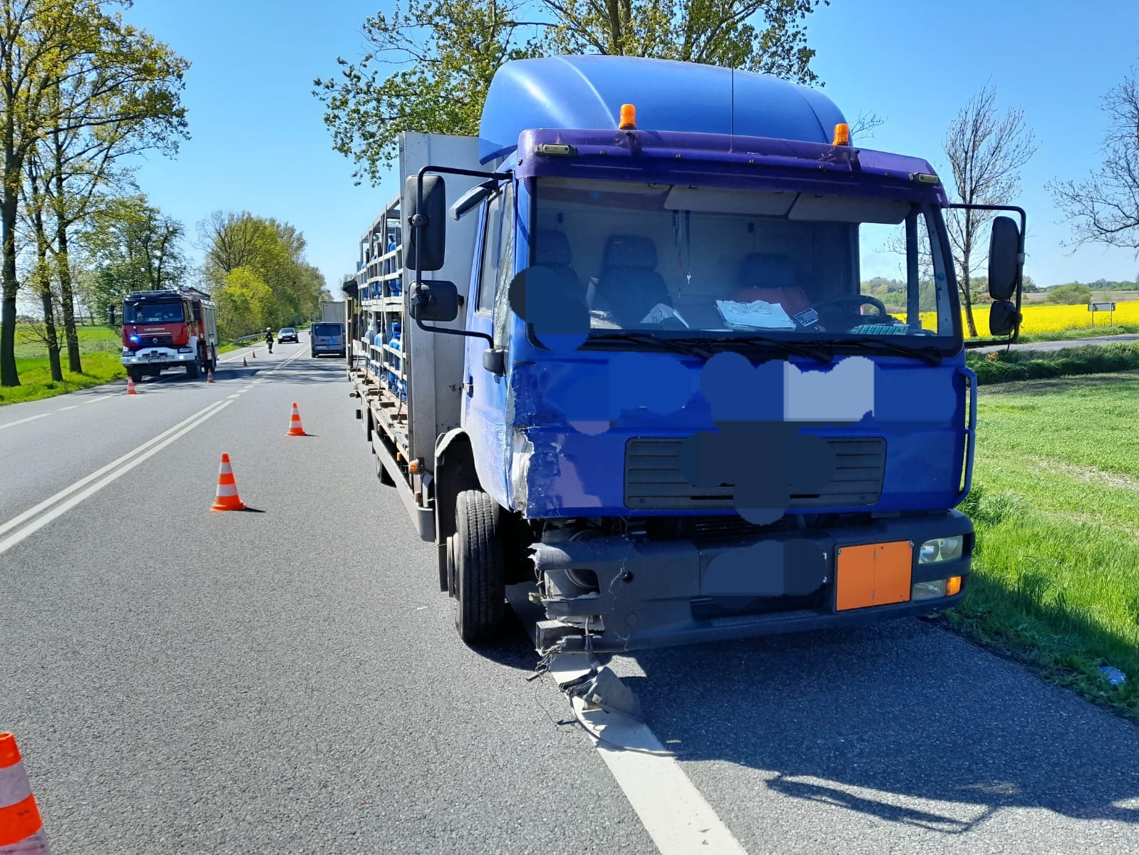 Samochód ciężarowy biorący udział w zdarzeniu przewoził 11 kg butle propan- butan, które nie uległy uszkodzeniu.