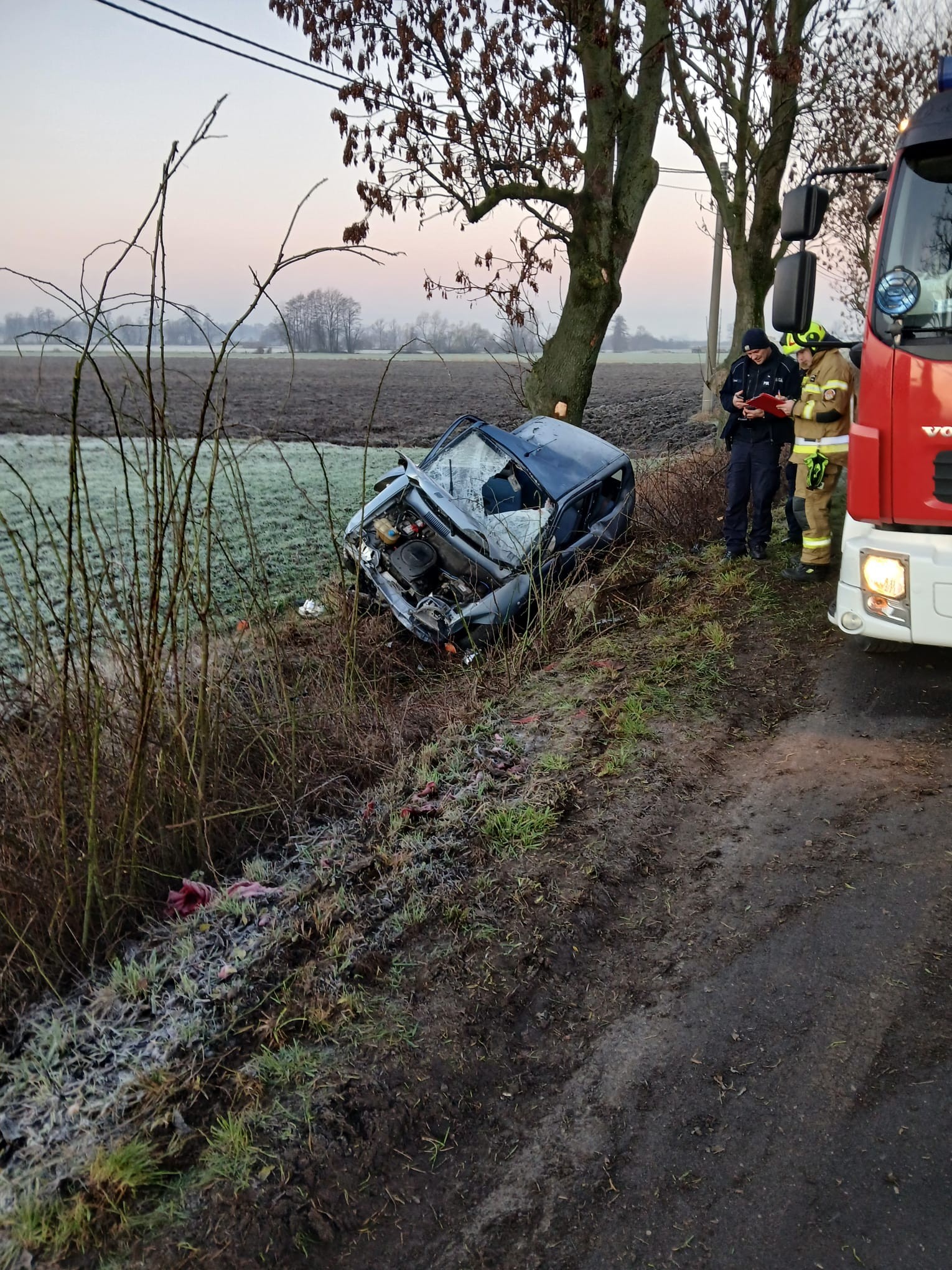 19 grudnia 2025 roku o godz. 06.59 do Stanowiska Kierowania Komendanta Powiatowego Państwowej Straży Pożarnej w Łęczycy wpłynęło zgłoszenie o zdarzeniu drogowym z udziałem pojazdu osobowego znajdującym się w przydrożnym rowie w miejscowości Witów, gm. Piątek.