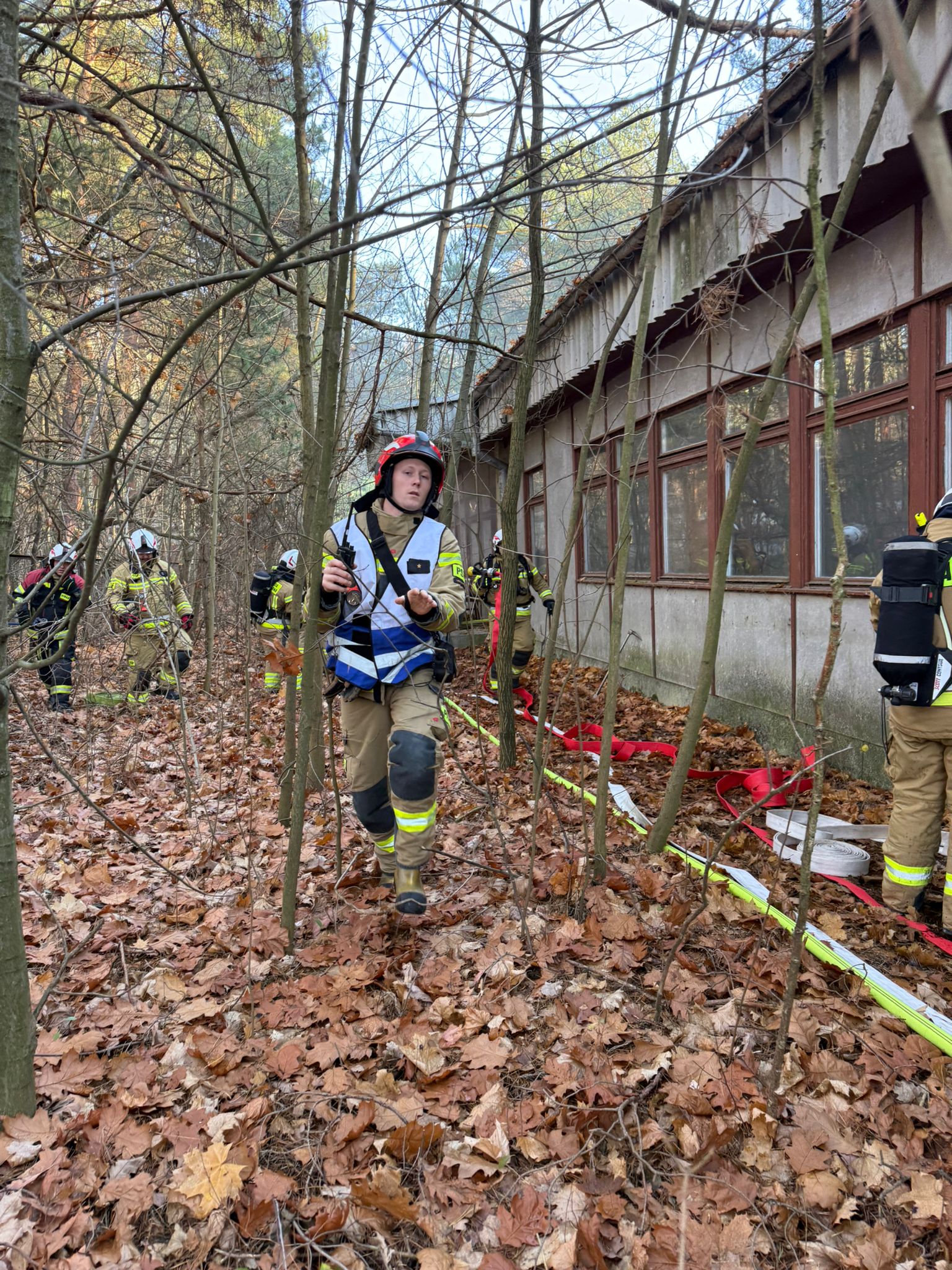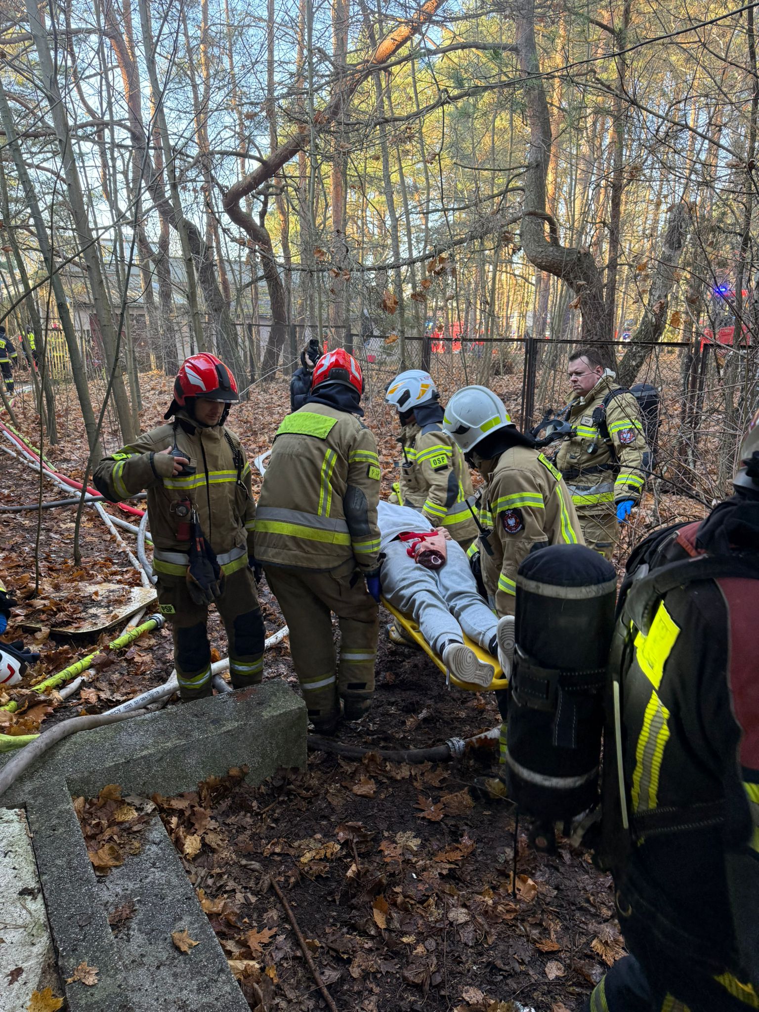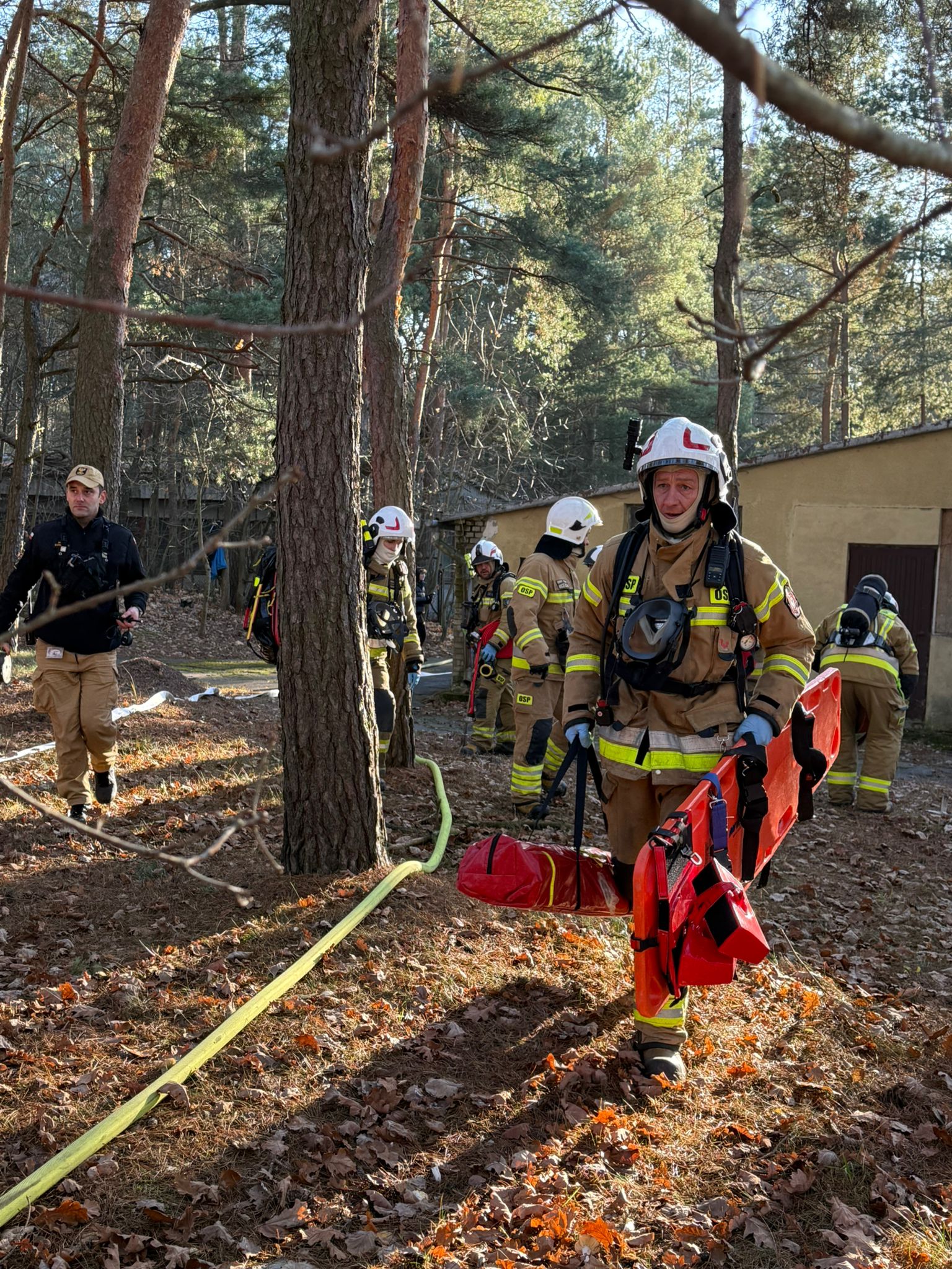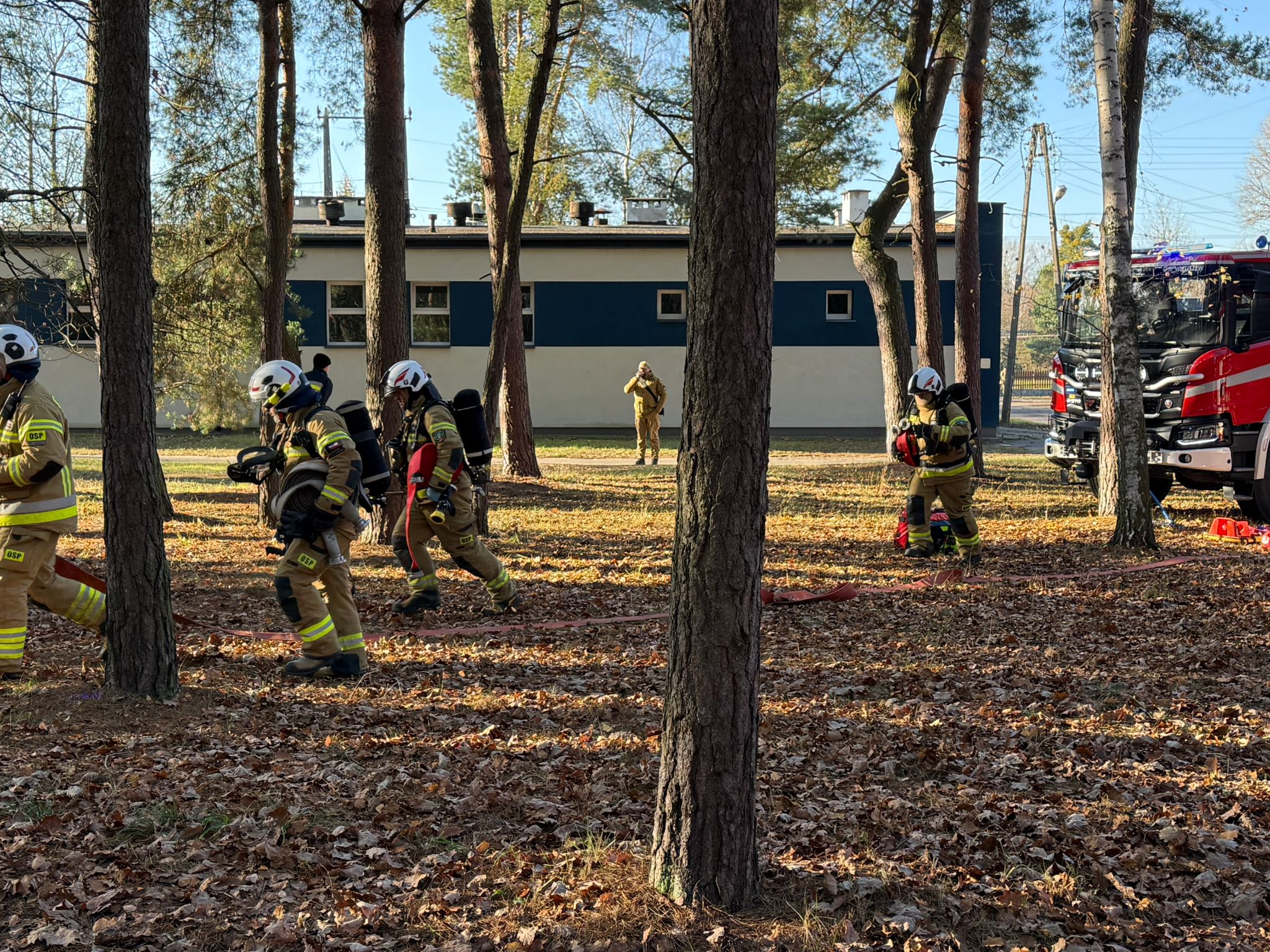 W dniu 19.11.2025r. odbyły się ćwiczenia służb ratowniczych z powiatu legionowskiego pod nazwą "Komornica 2025". Zadaniem służb było poradzenie sobie z założeniem składającym się z trzech epizodów - pożaru budynku spowodowanym wybuchem w szkole z dużą ilością poszkodowanych, pożaru lasu oraz działań poszukiwawczych na obszarze leśnym. Celem ćwiczeń było ustalenie poziomu przygotowania służb na ww. sytuacje, doskonalenie technik oraz organizacji działań ratowniczych podczas zdarzeń z dużą ilością poszkodowanych, w tym współpracy między podmiotami Jednostek Ochrony Przeciwpożarowej a Państwowym Ratownictwem Medycznym, a także przetestowanie w realnych warunkach organizacji sztabu i łączności na potrzeby prowadzenia działań wymagających zaangażowania licznych Sił i Środków.