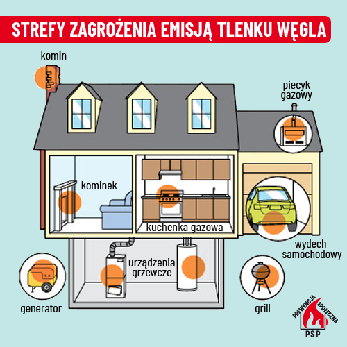 Z uwagi na powyższe, Państwowa Straż Pożarna rekomenduje instalowanie czujek dymu i tlenku węgla.