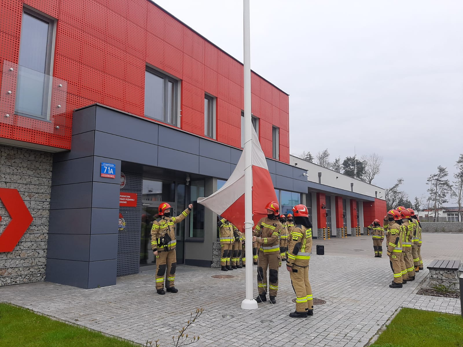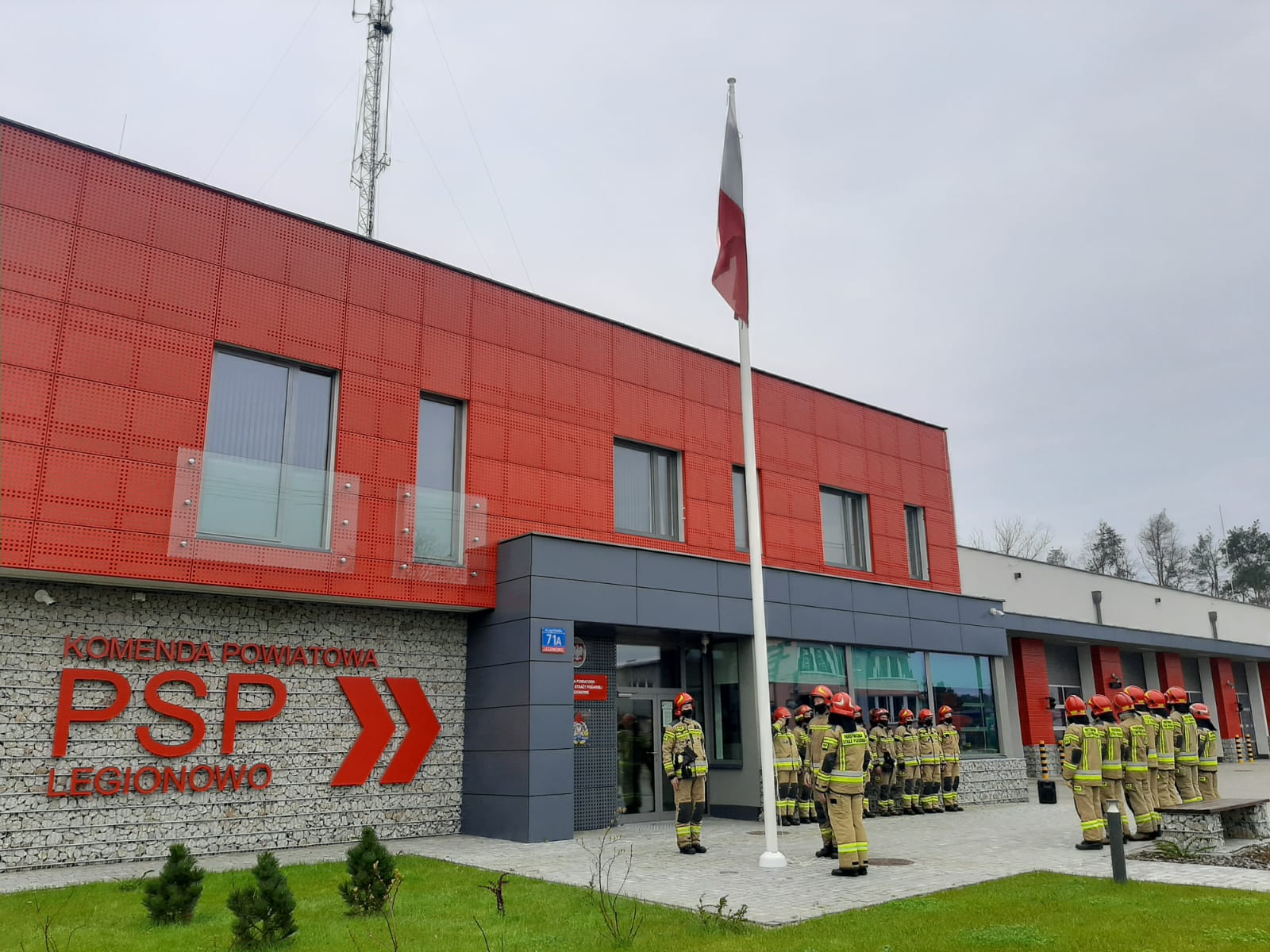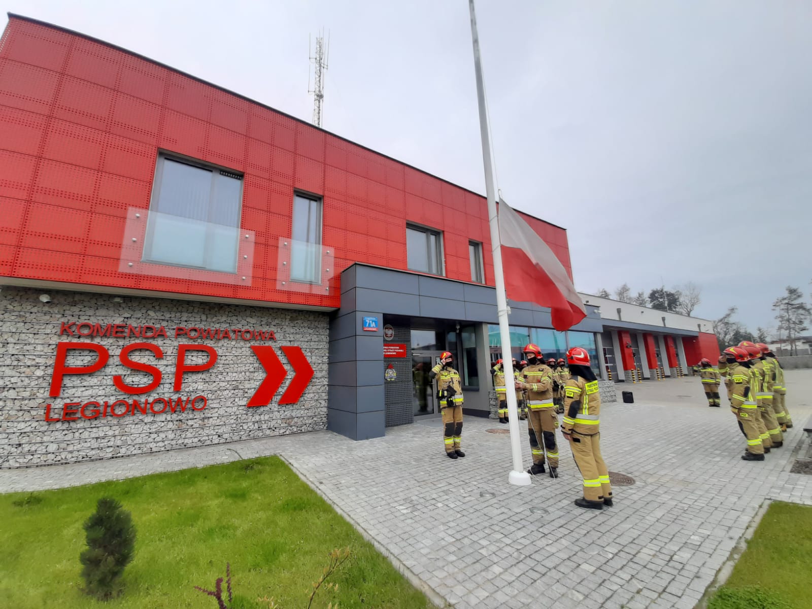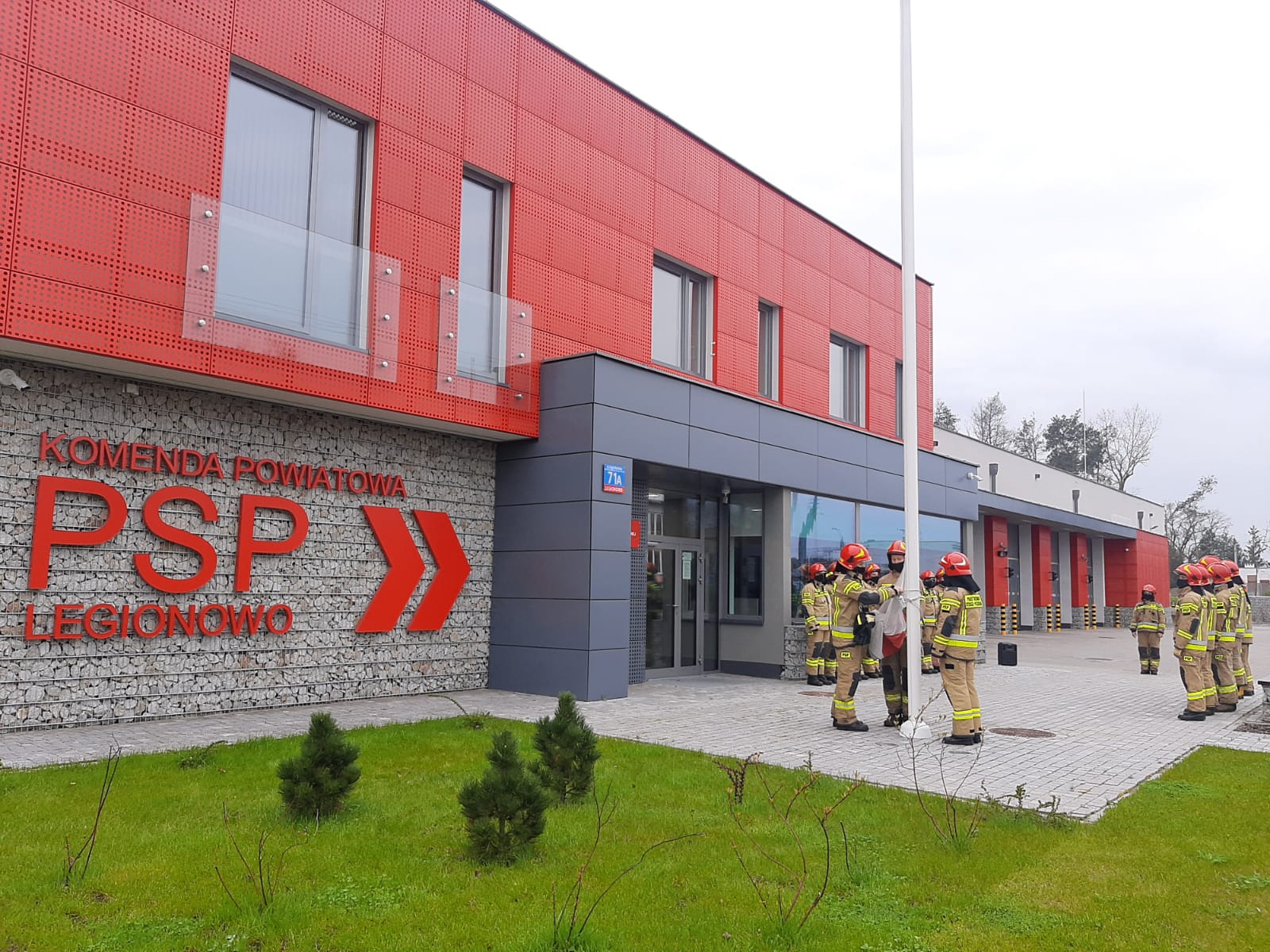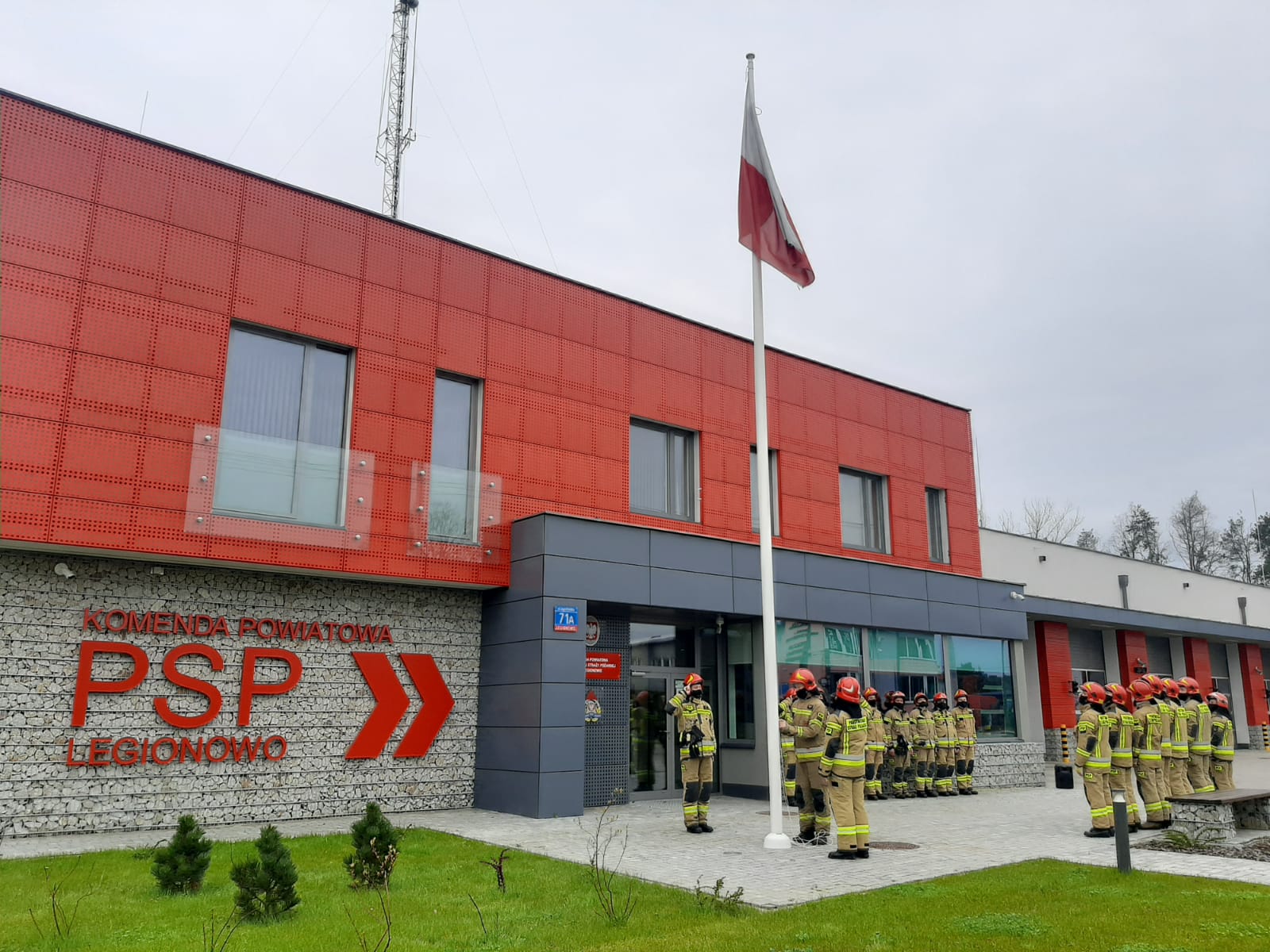 Z okazji Dnia Flagi Rzeczypospolitej Polskiej 2 maja 2021 roku podczas zmiany służby miało miejsce uroczyste podniesienie flagi państwowej w Komendzie Powiatowej Państwowej Straży Pożarnej w Legionowie.