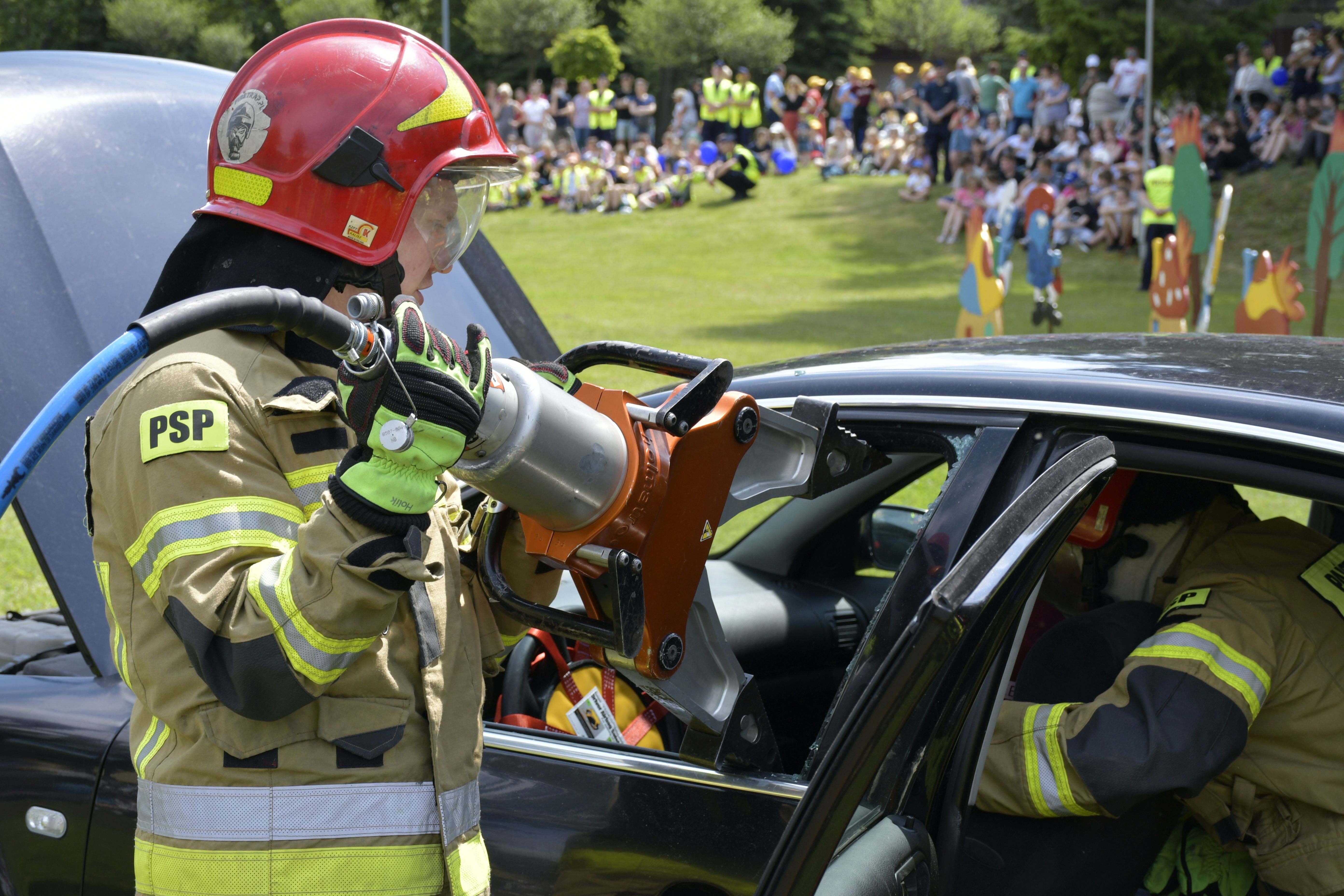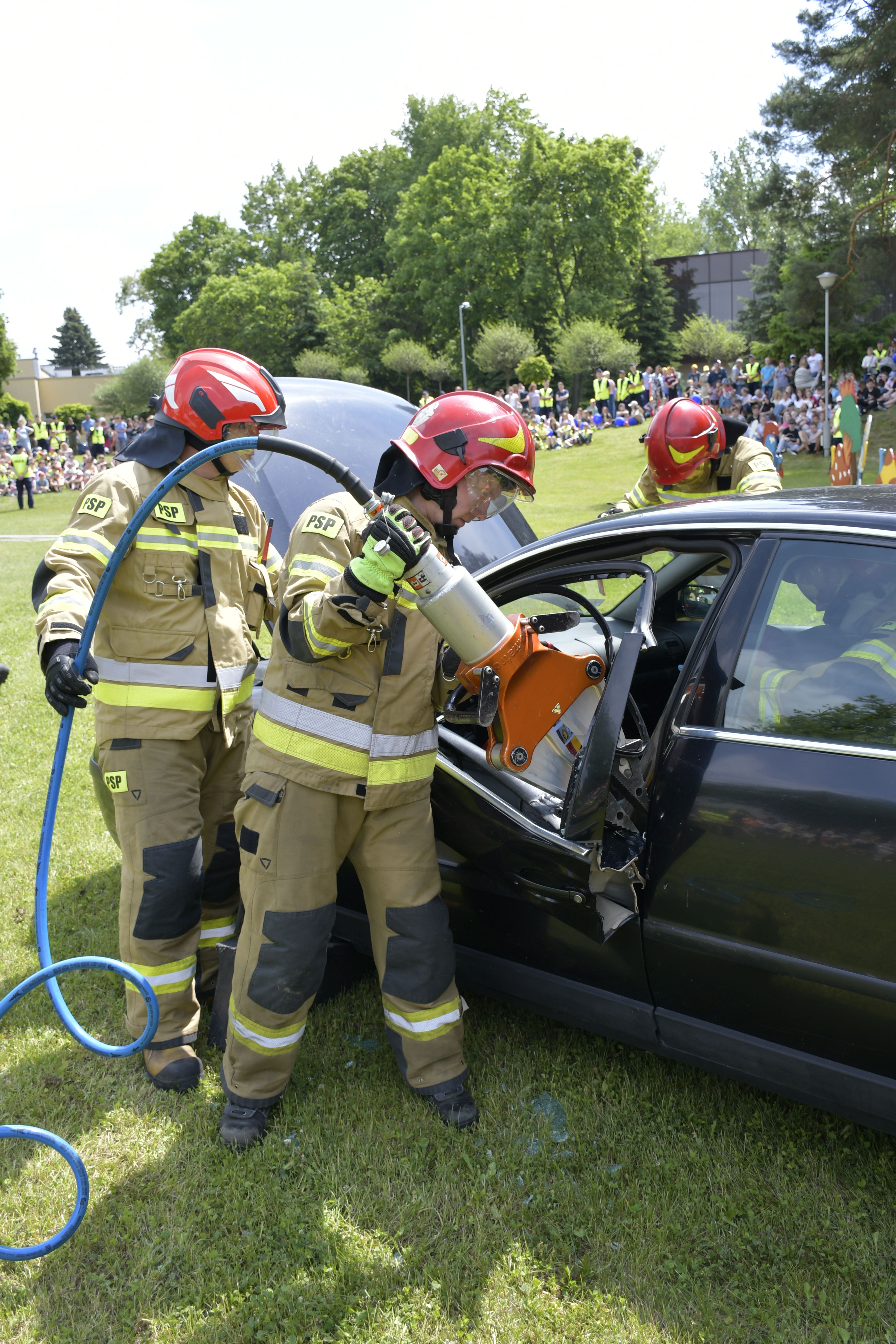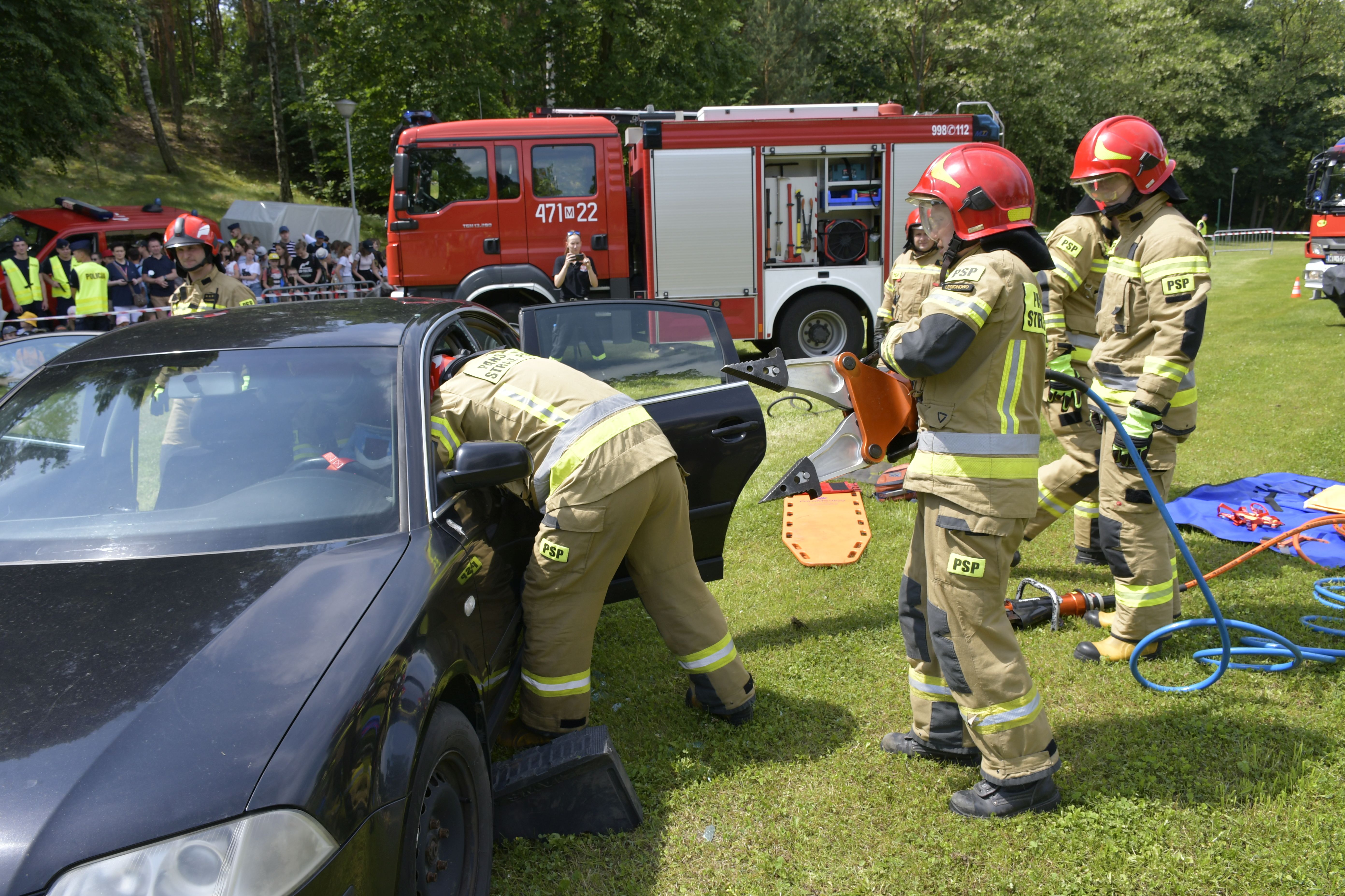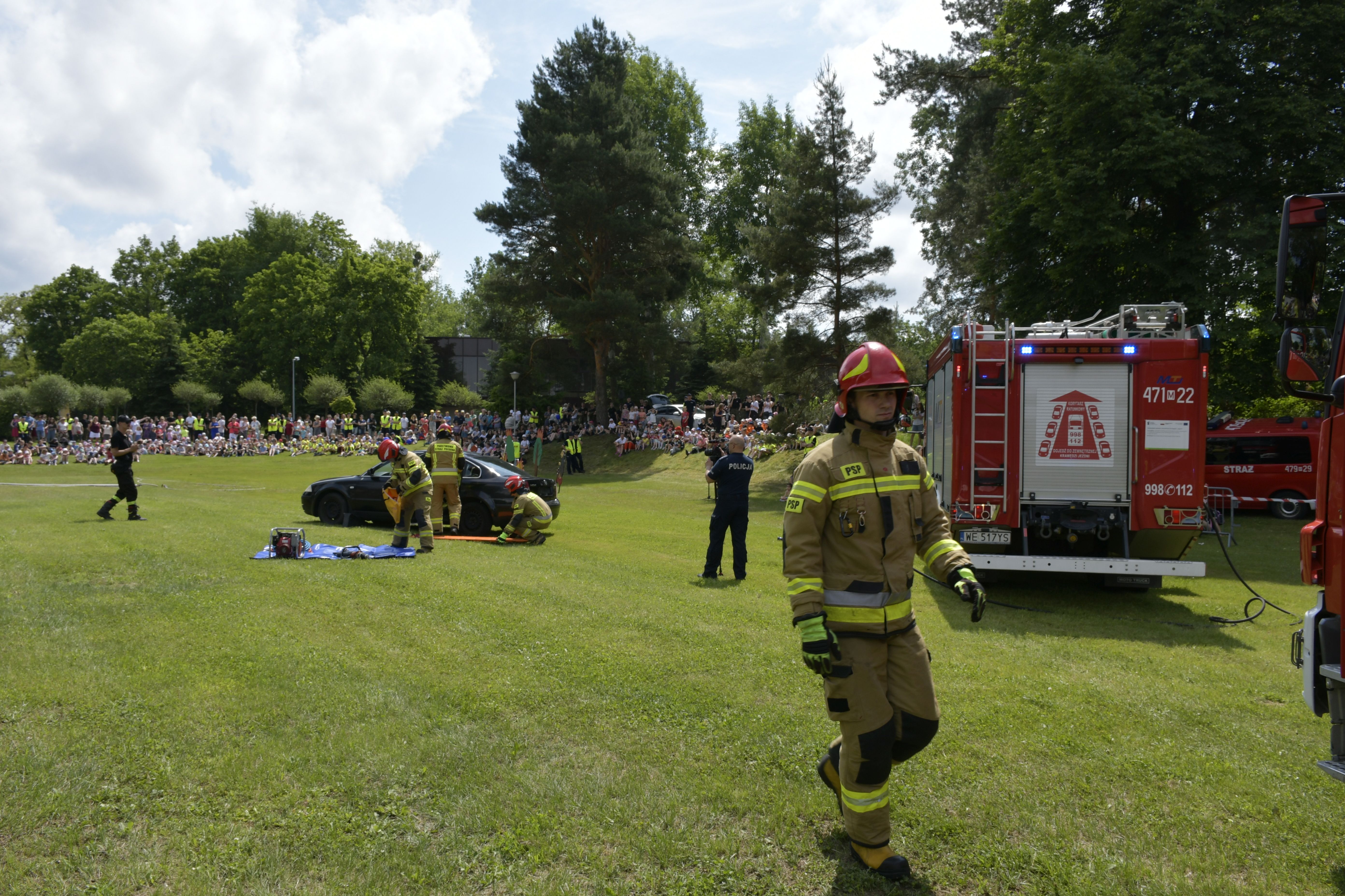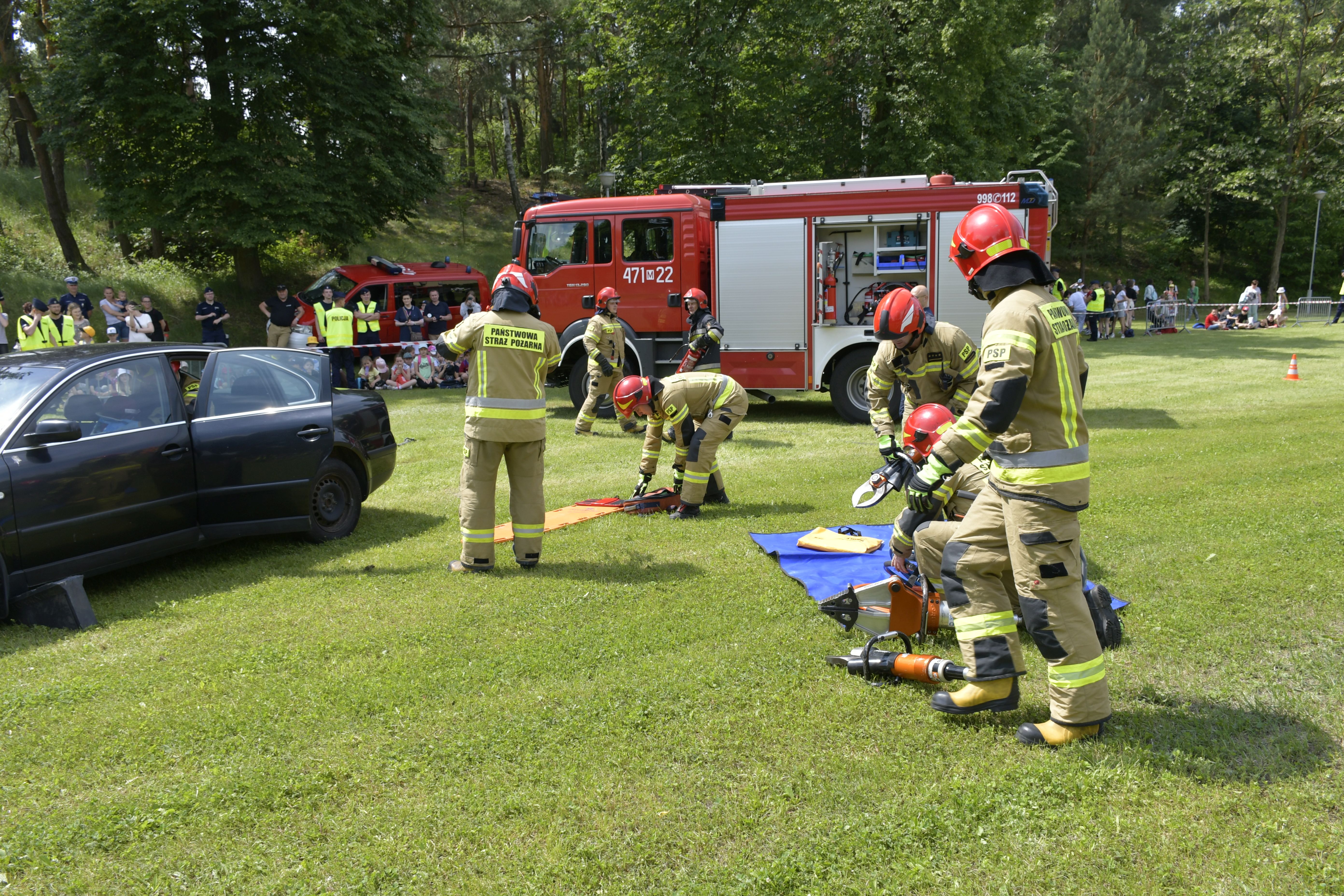 Uczestnicy imprezy zobaczyli również pokaz ratownictwa technicznego przeprowadzony przez strażaków z naszej Jednostki Ratowniczo - Gaśniczej.