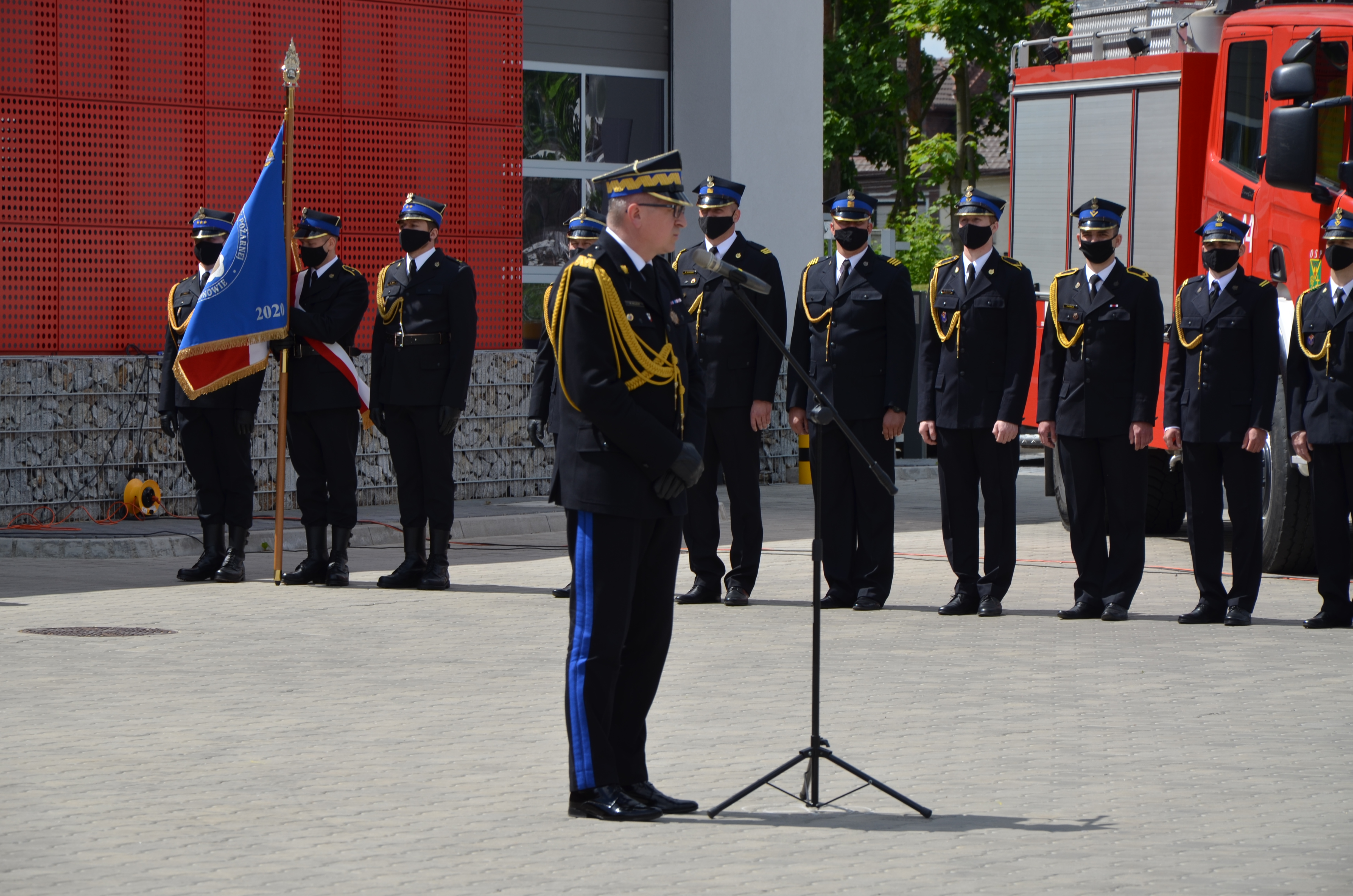 Apel rozpoczęto złożeniem meldunku Zastępcy Komendanta Głównego PSP nadbryg. Krzysztofowi Hejdukowi, po czym nastąpiło uroczyste podniesienie flagi państwowej oraz odegranie hymnu narodowego. Następnie gospodarz obiektu Komendant Powiatowy PSP w Legionowie, st. bryg. Radosław Parapura przywitał wszystkich zebranych na uroczystości.