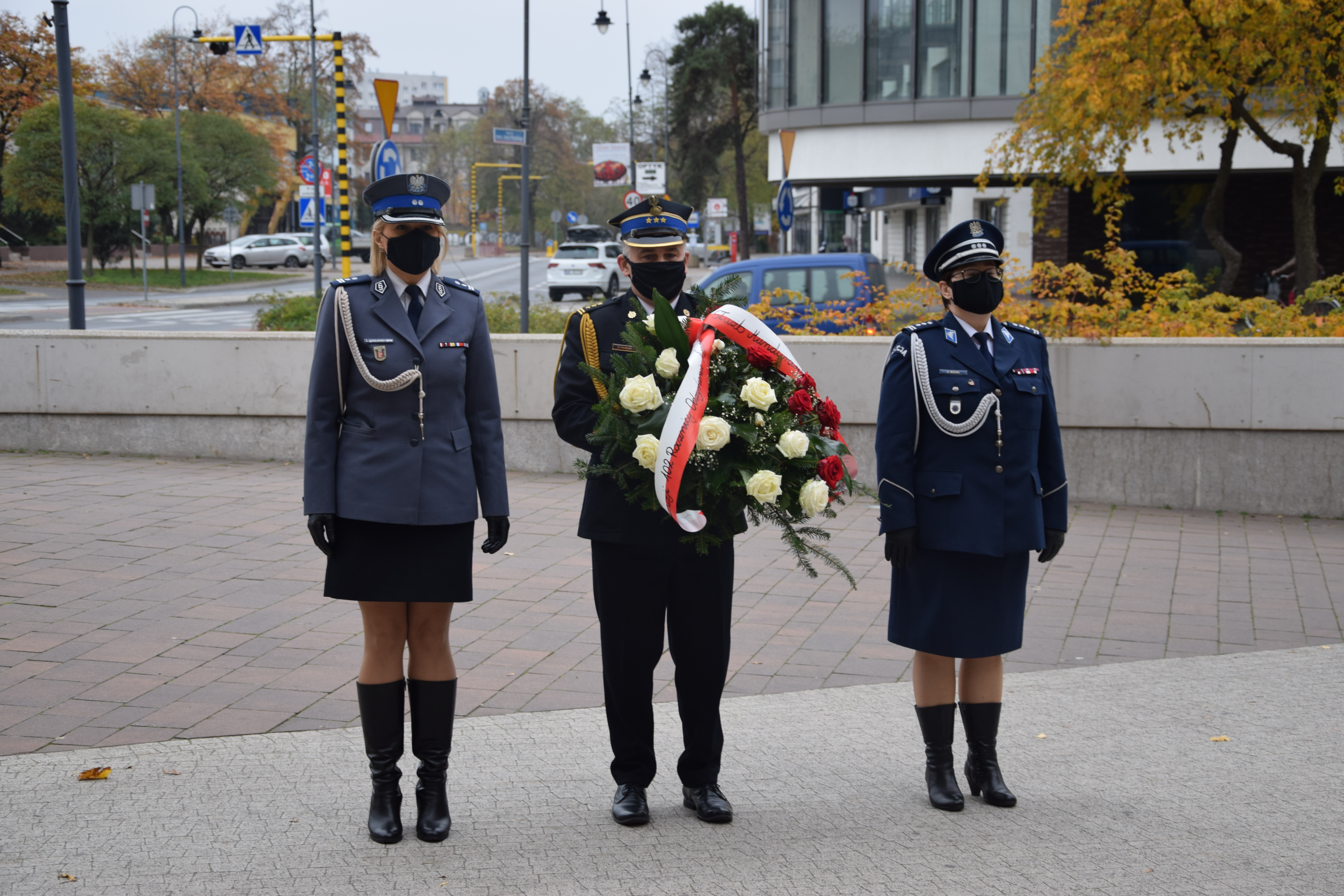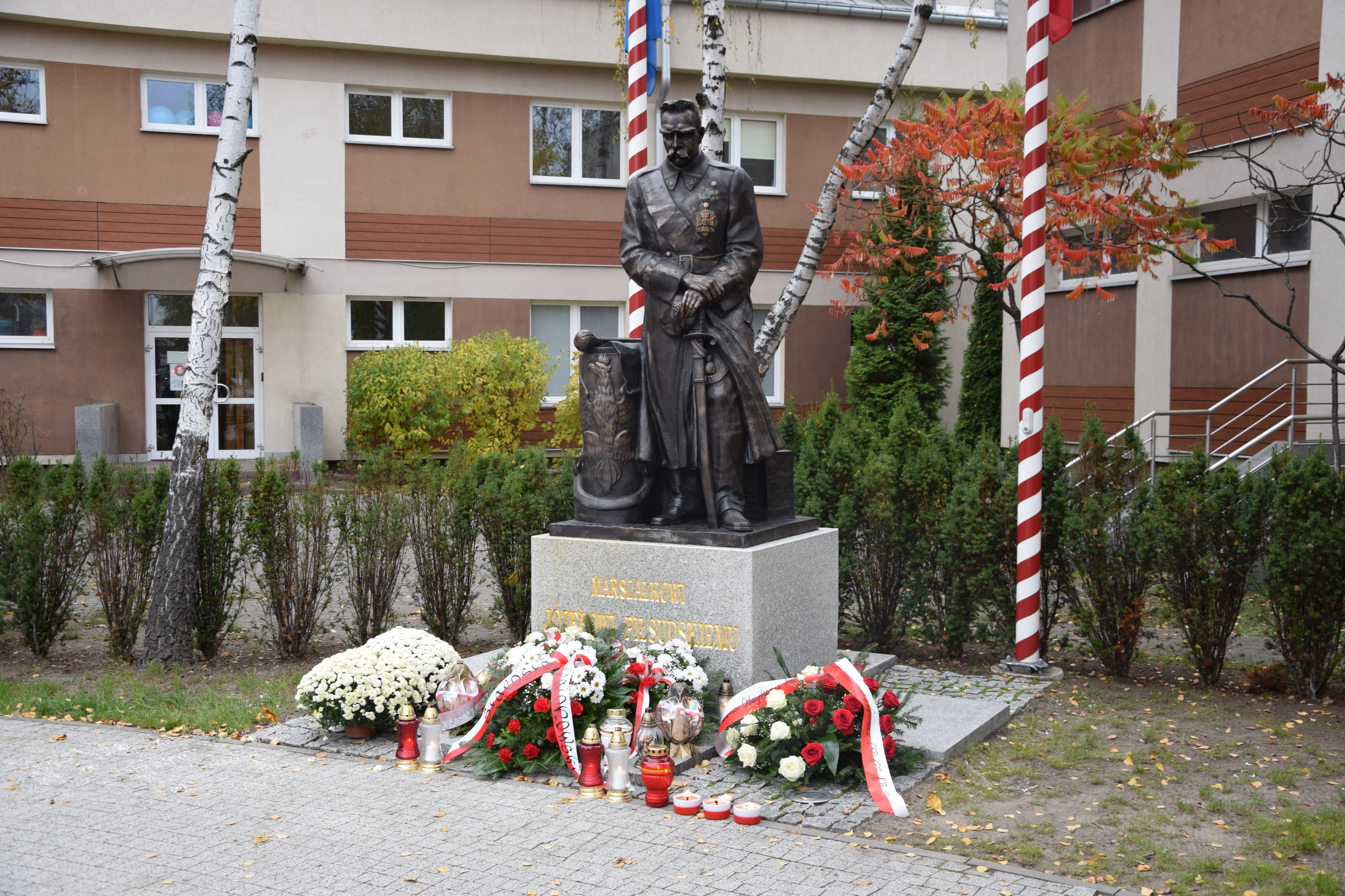 Dla upamiętnienia 102 rocznicy odzyskania niepodległości Komendant Powiatowy Państwowej Straży Pożarnej w Legionowie st. bryg. Radosław Parapura wraz z Komendant Powiatowy Policji w Legionowie mł. insp. Anną Jędrzejewską- Szpak oraz Komendant Centrum Szkolenia Policji insp. Anną Rosół złożyli wieniec pod pomnikiem Marszałka Józefa Piłsudskiego.