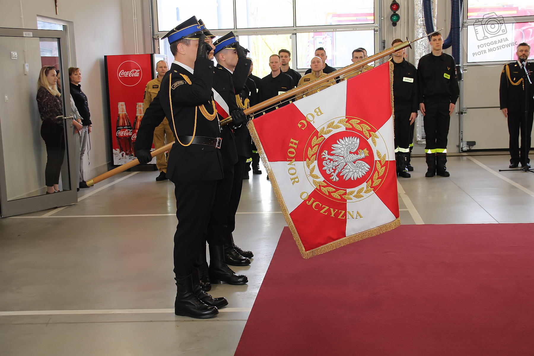 Uroczystość rozpoczęła się złożeniem meldunku przez dowódcę uroczystości mł. bryg. Marcina Szutkowskiego, który przyjął Zastępca Mazowieckiego Komendanta Wojewódzkiego PSP st. bryg. Maciej Bieńczyk. Następnie wprowadzony został sztandar oraz odegrano hymn państwowy.