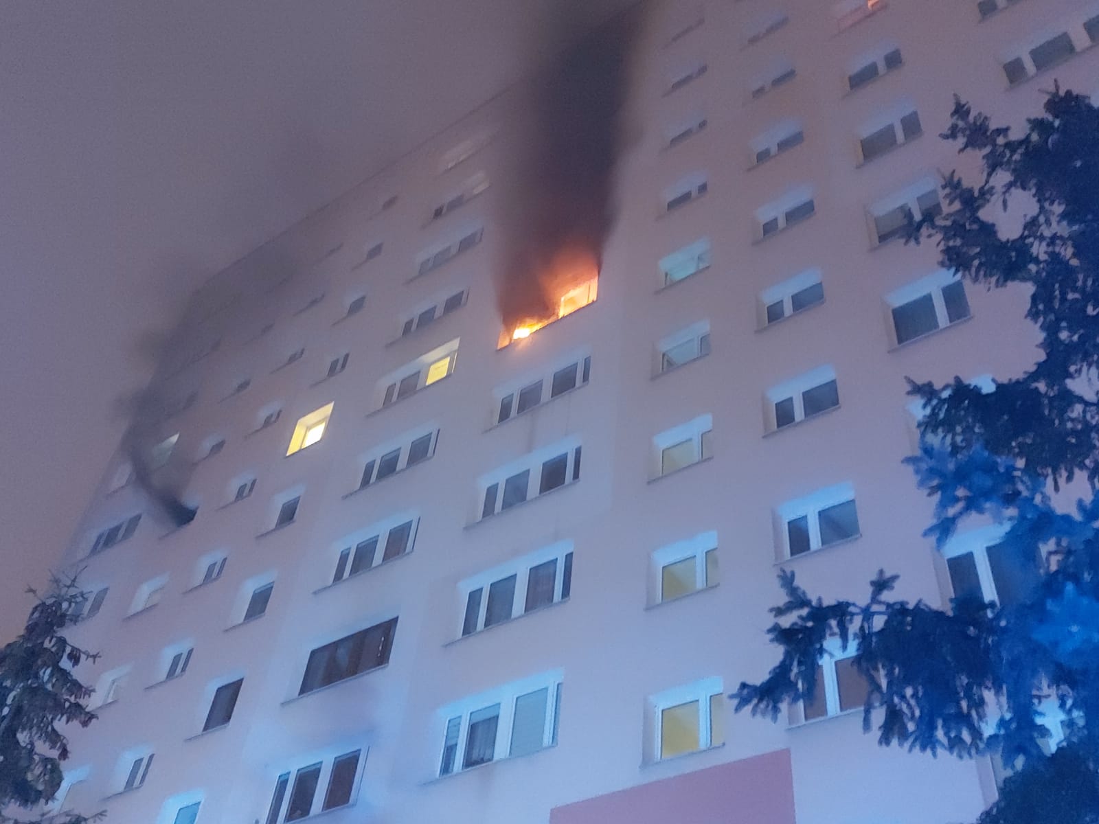 Pożar w mieszkaniu na 7 piętrze w budynku wielorodzinnym w Legionowie. W chwili dojazdu zastępów widać było wydobywające się z okna płomienie oraz gęsty dym. Na szczęście mieszkańcy płonącego lokalu znajdowali się na klatce schodowej, a po przybyciu Zespołu Ratownictwa Medycznego zostali przebadani i pozostali na miejscu zdarzenia. Strażacy rozwinęli linie gaśnicze po klatce i szybko stłumili płomienie. Po zlokalizowaniu pożaru wynoszono nadpalone elemnety wyposażenia na balkon gdzie przelewano je wodą aby dogasić zażewia ognia. Bardzo silne zadymienie panowało nie tylko w klatce w której płonęło mieszkanie ale i w sąsiedniej więc zaszłakonieczność ewakuacji mieszkańców innych lokali. W sumie ewakuowano 36 osób które po przewietrzewniu o oddymieniu mieszkań powróciły do siebie.