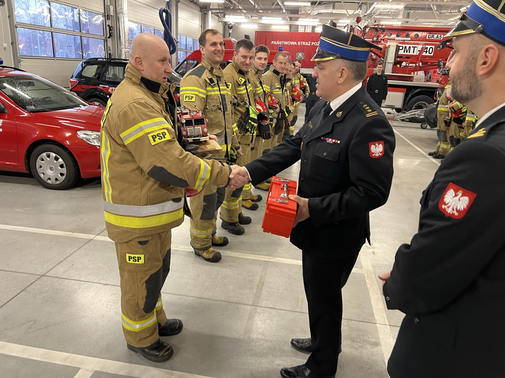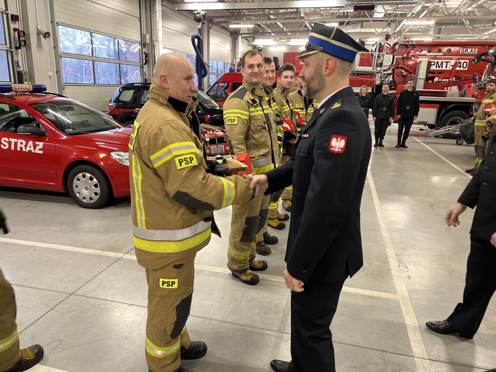 Z dniem 25 lutego przechodzi on na zaopatrzenie emerytalne. Słowa uznania, podziękowania za długoletnią służbę oraz życzenia samych sukcesów i realizacji prywatnych planów przekazał w imieniu wszystkich zgromadzonych obecny na zmianie służby Komendant Powiatowy PSP w Legionowie st. bryg. Radosław Parapura. st. ogn. Dariusz Duliński służbę w Legionowie rozpoczął w czerwcu 1999 r. Przez kolejne lata służbę pełnił jako ratownik oraz ratownik kierowca. Od 2006r do chwili obecnej zajmował stanowisko starszego operatora sprzętu. Praktycznie przez całą służbę w JRG Legionowo był w obsadzie I zmiany.
