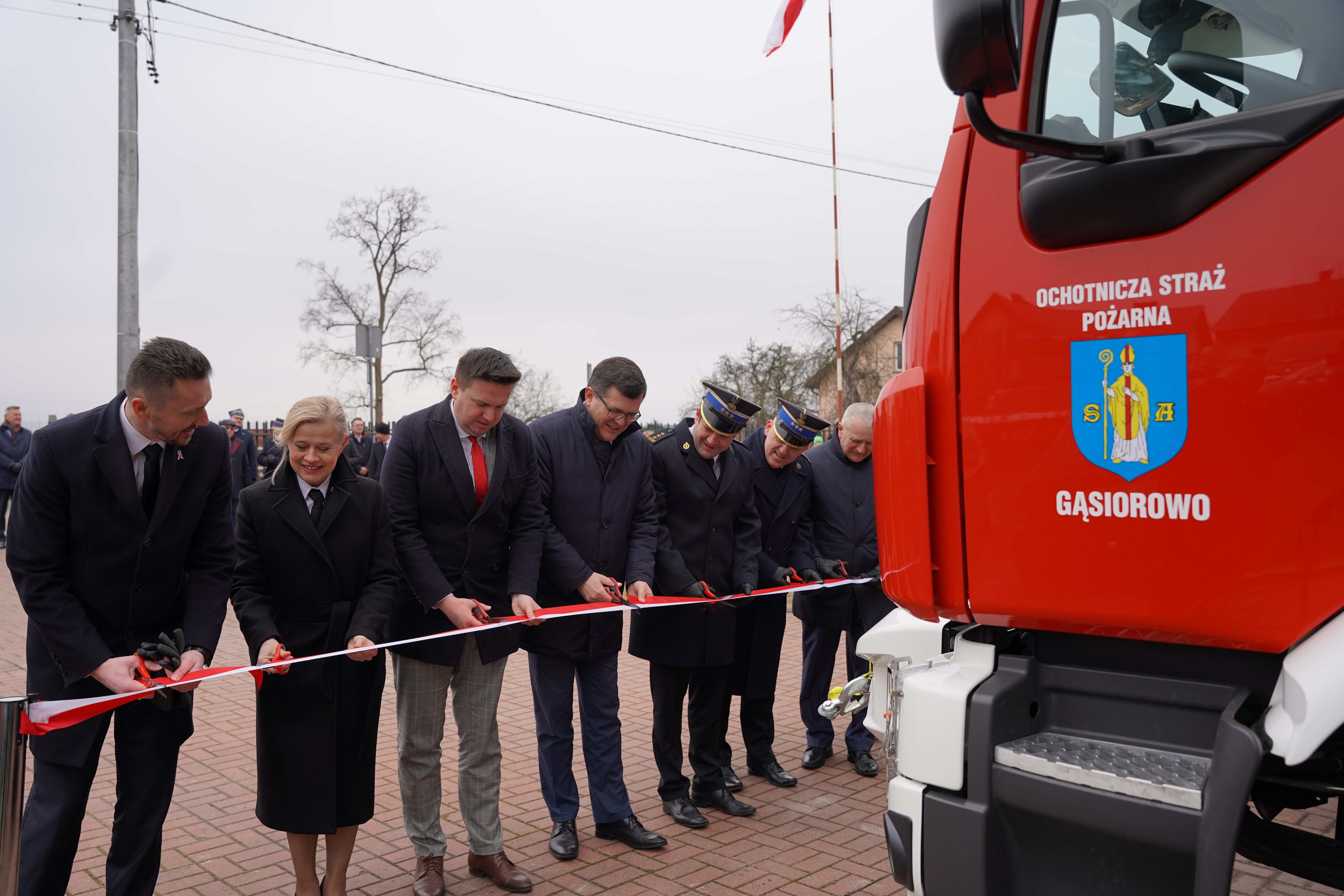 Kluczowym elementem uroczystości było przecięcie wstęgi oraz wręczenie kluczyków do nowego samochodu ratowniczo-gaśniczego. Kluczyki odebrał dh Robert Walkowski - Prezes Ochotniczej Straży Pożarnej w Gąsiorowie. Prezentacji pojazdu dokonał Naczelnik OSP w Gąsiorowie. Nowy samochód posiada zbiornik wodny o pojemności 3000 l oraz autopompę o wydajności 2500 l/min. i zastąpi mocno już wysłużony pojazd GBA Renault. Zakup samochodu był możliwy dzięki środkom z budżetu państwa w ramach dotacji krajowego systemu ratowniczo-gaśniczego, wsparciu finansowemu Samorządu Województwa Mazowieckiego, Wojewódzkiego Funduszu Ochrony Środowiska i Gospodarki Wodnej w Warszawie oraz sołectwa Kania Nowa, gmina Serock.