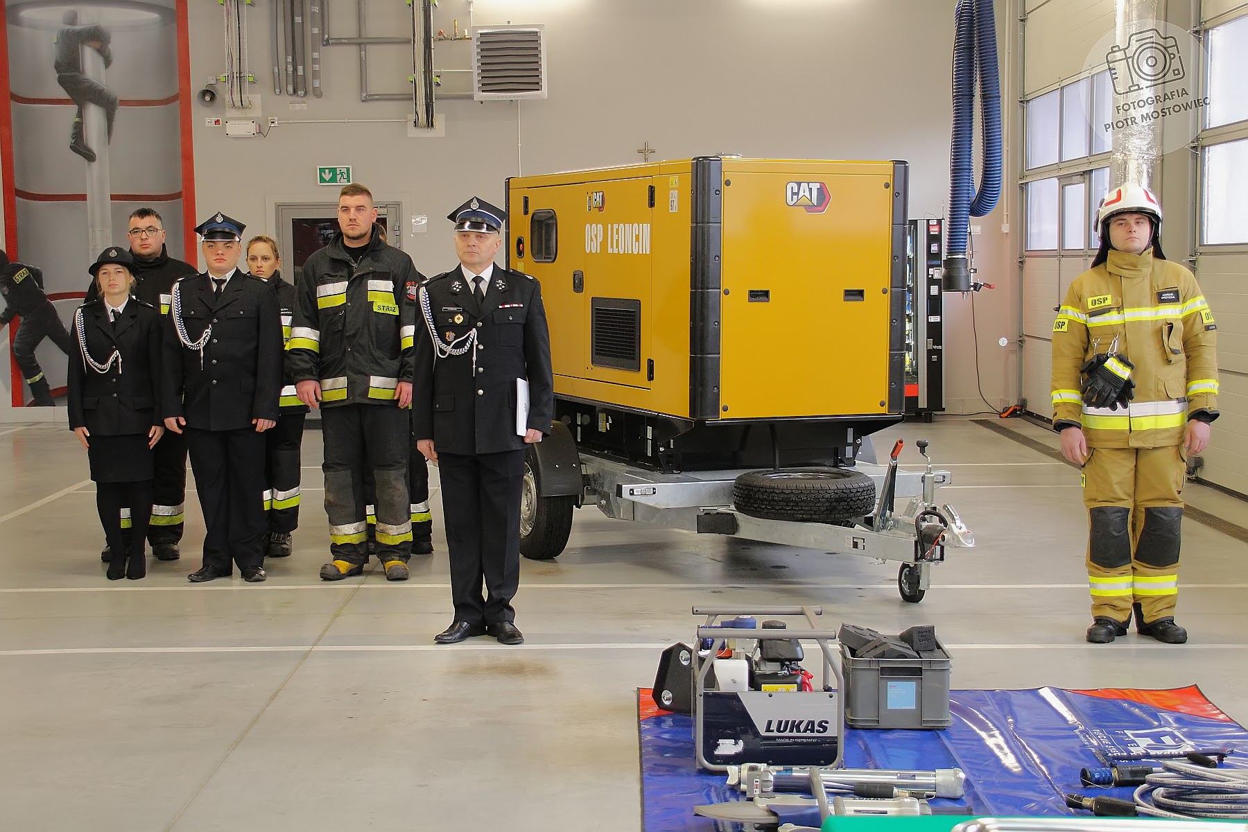 Druhowie z Leoncina otrzymali również zestaw narzędzi hydraulicznych firmy Lukas. W skład zestawu wchodzą: pompa wraz z przewodami, rozpieracz ramieniowy i kolumnowy oraz nożyce. Akty przekazania sprzętu odebrał dh Andrzej Krawczak Prezes OSP w Leoncinie.