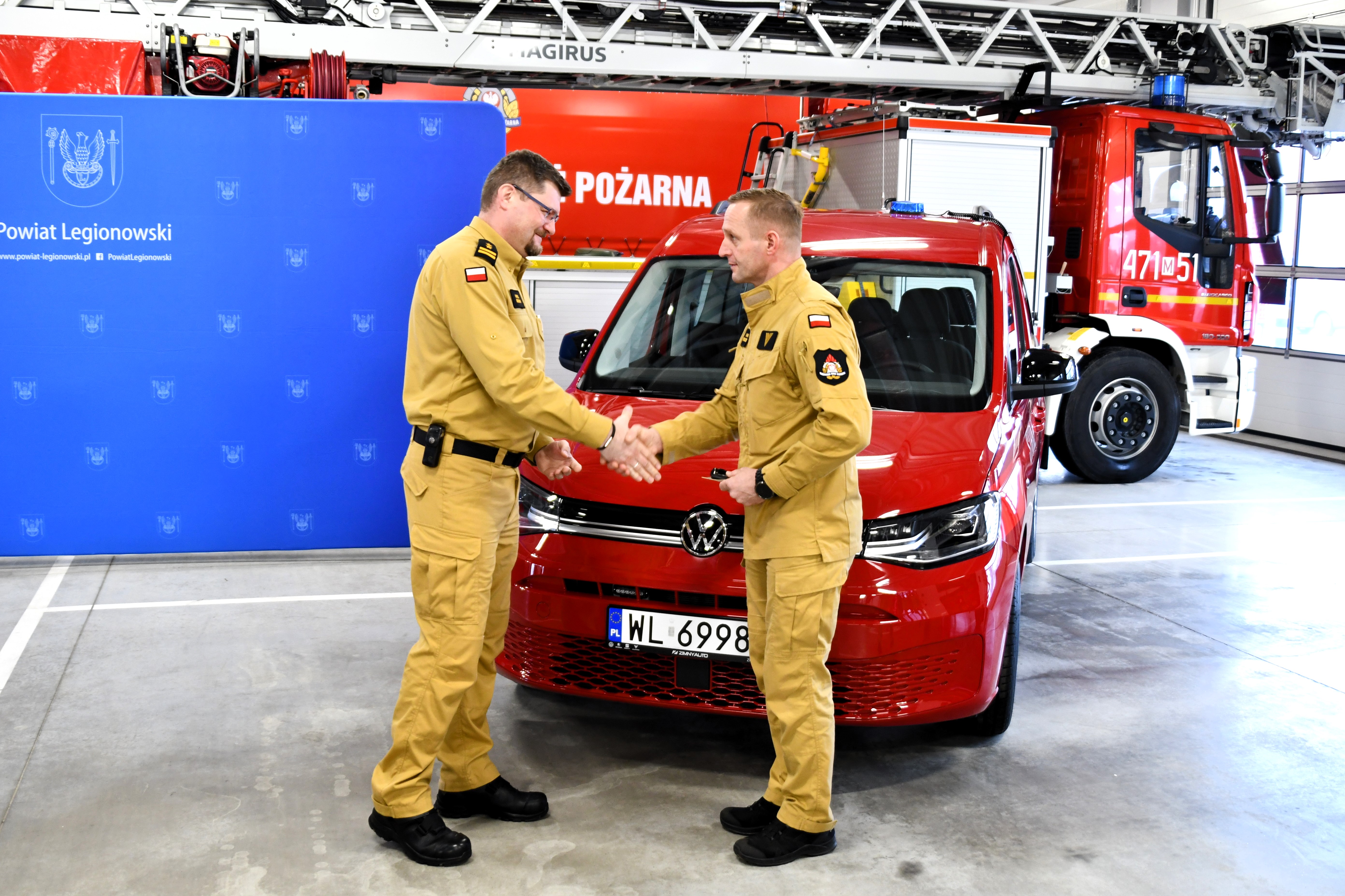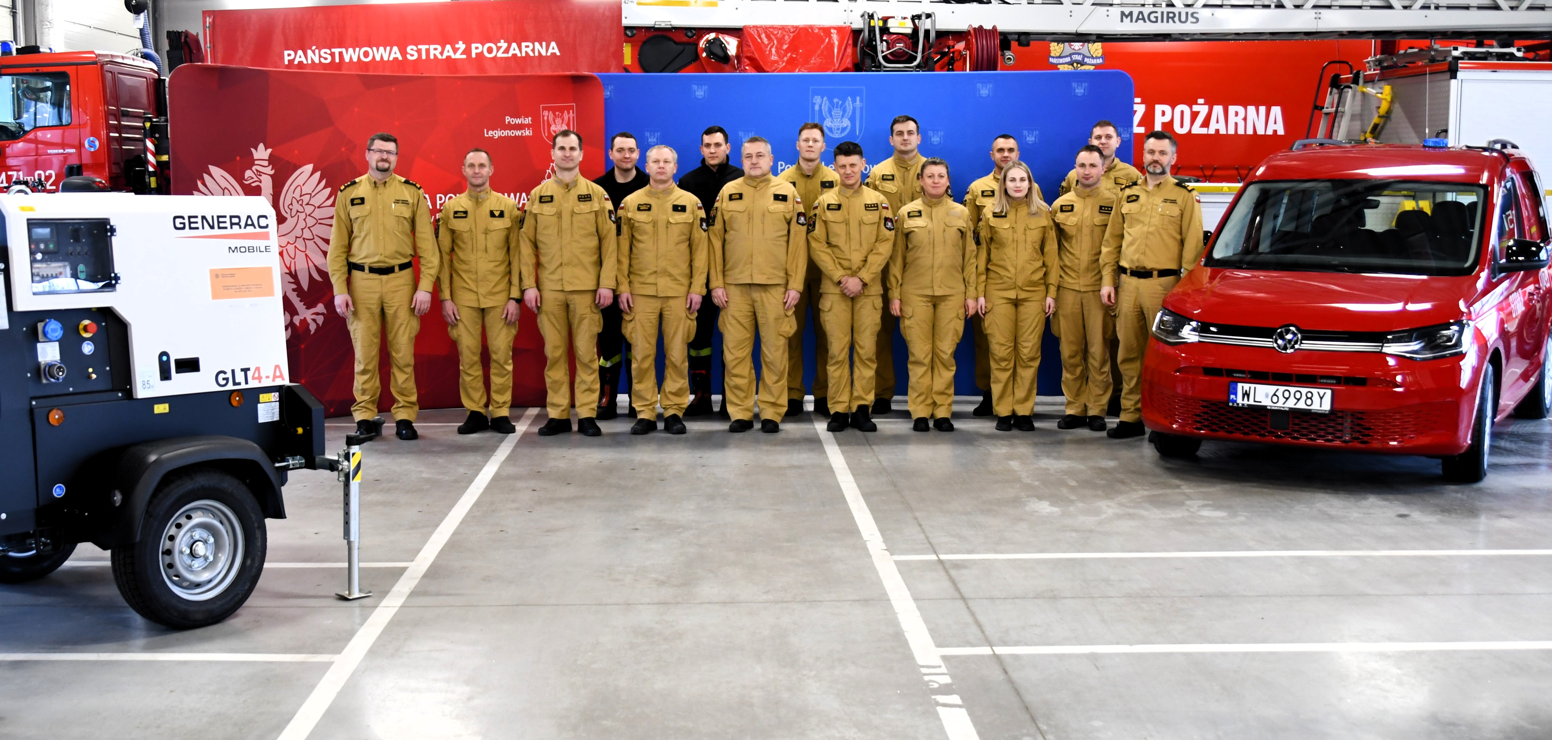 W dniu 23.02.2026 w Komendzie Powiatowej Państwowej Straży Pożarnej w Legionowie odbyła się uroczysta zbiórka, podczas której w obecności radnych Rady Powiatu w Legionowie, starosta legionowski Roman Smogorzewski uroczyście przekazał na ręce komendanta bryg. Karola Mendaka nowe wyposażenie dla strażaków. Do jednostki trafił samochód do działań interwencyjnych, agregaty prądotwórcze oraz maszt oświetleniowy.
