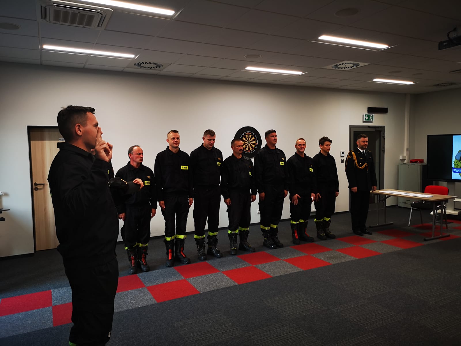 str. Jarosław Więsik przeszedł nabór do służby uzyskując najlepsze wyniki oraz pozytywną opinię komisji lekarskiej MSWiA. Ślubowanie zostało przyjęte przez Komendanta Powiatowego PSP, który powitał nowego funkcjonariusza oraz pogratulował wyboru naszej formacji.