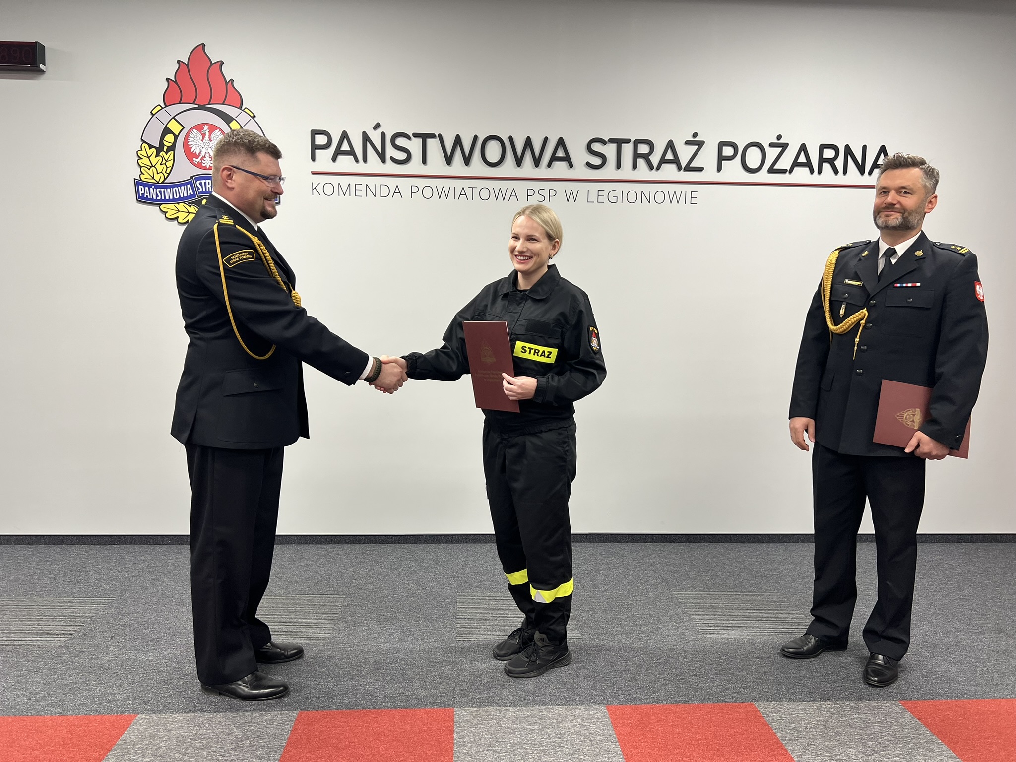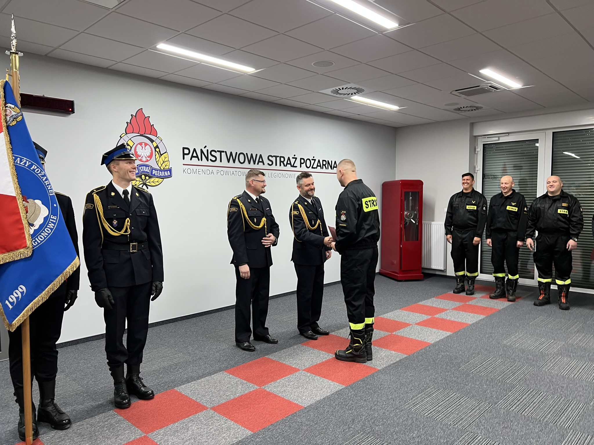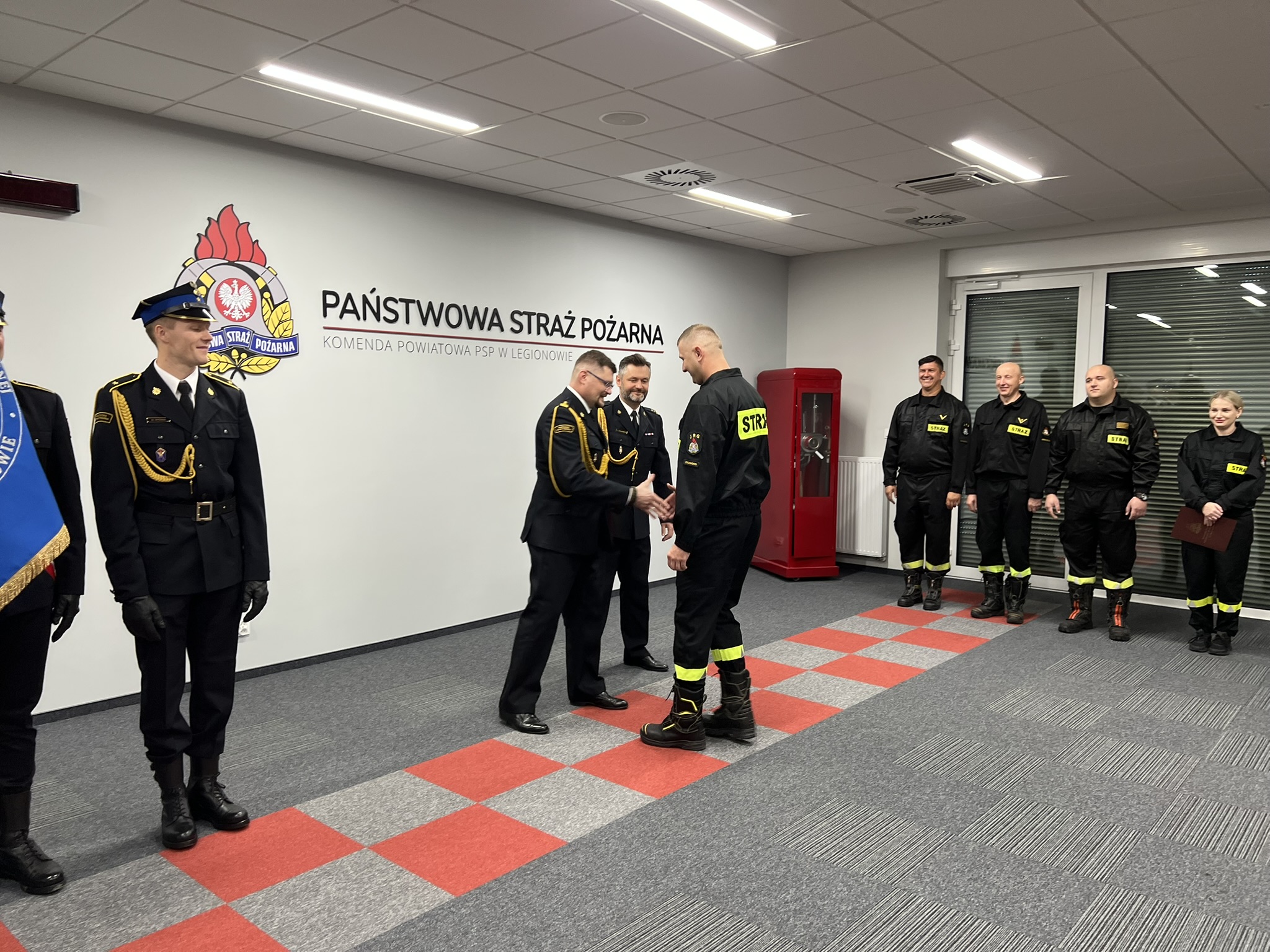 Podczas uroczystości wręczona została decyzja o mianowaniu na wyższe stanowsko służbnowe które odebrał mł. ogn. Damian Kardaś. Z dniem 01.10.2024 roku został mianowany na stanowsko Operatora w Jednostce Ratowniczo - Gaśniczej w Legionowie.