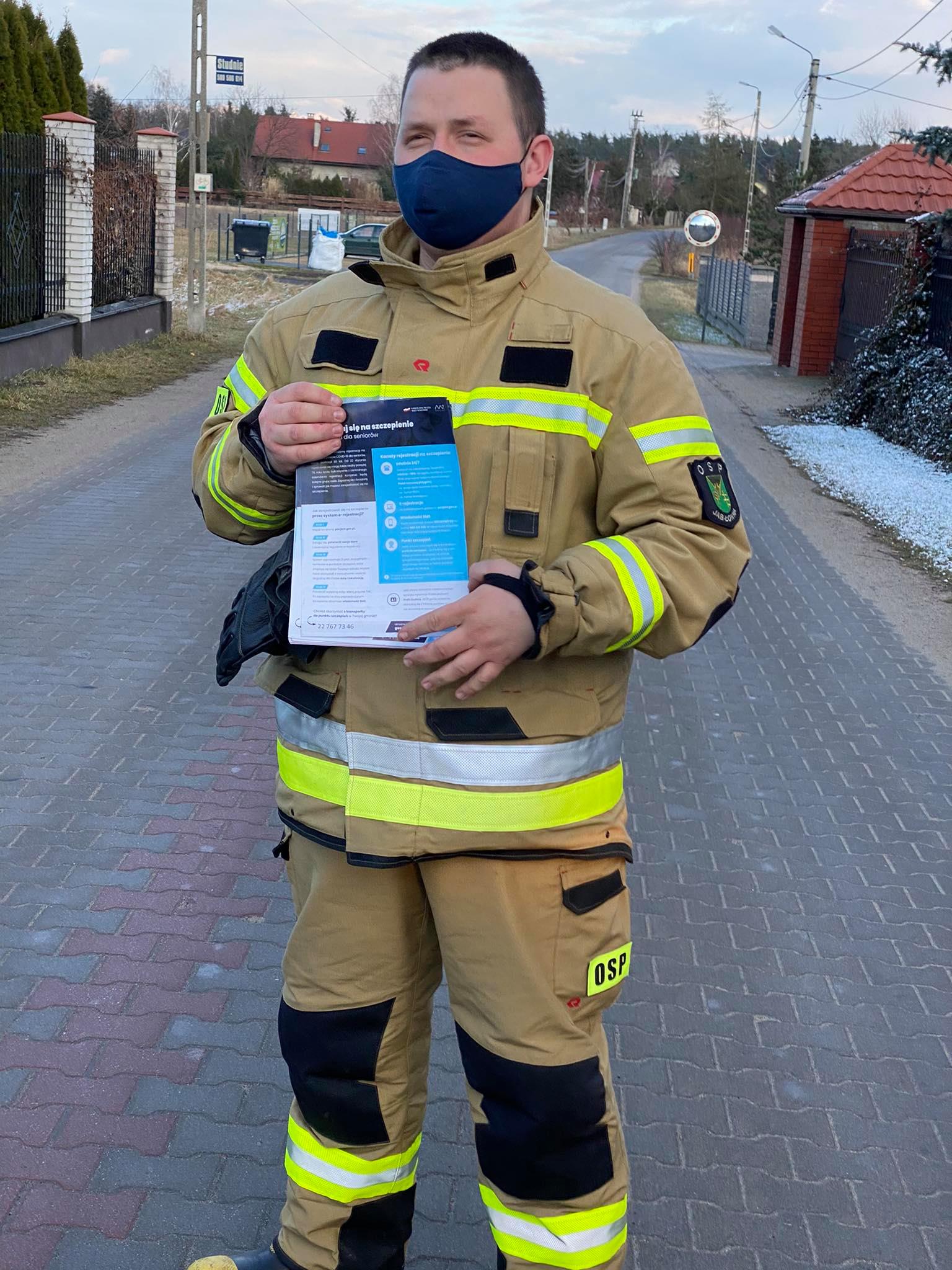 Ulotki zostaną rozwiezione przez druhów ochotniczych straży pożarnych. Wcześniej strażacy PSP spersonalizowali ulotki wpisując do każdej z nich numery telefonów do gminnych koordynatorów szczepień przeciwko COVID-19.