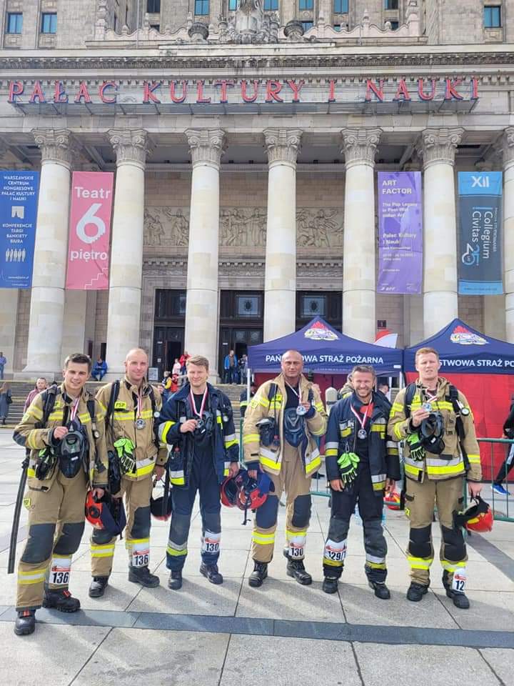 Trzy dwuosobowe zespoły reprezentowały naszą Komendę w IV Mistrzostwach Polski w Biegu po Schodach pod nawą Wieżowiec 2022. Zadaniem rot było w jak najkrótszym czasie wbiec na 33 piętro Pałacu Kultury i Nauki w Pełnym umundurowaniu bojowym oraz założonym aparacie ochrony dróg oddechowych.