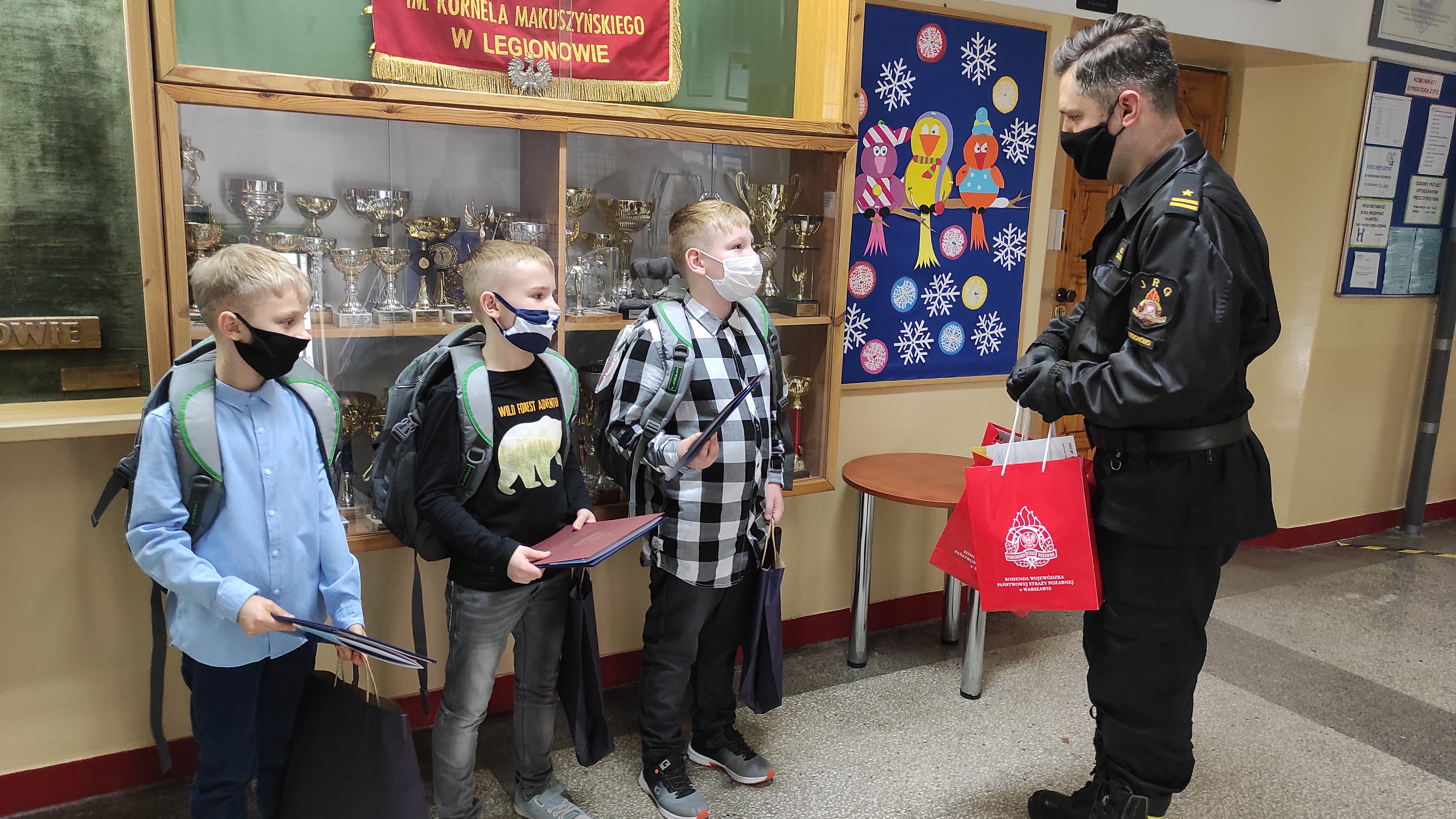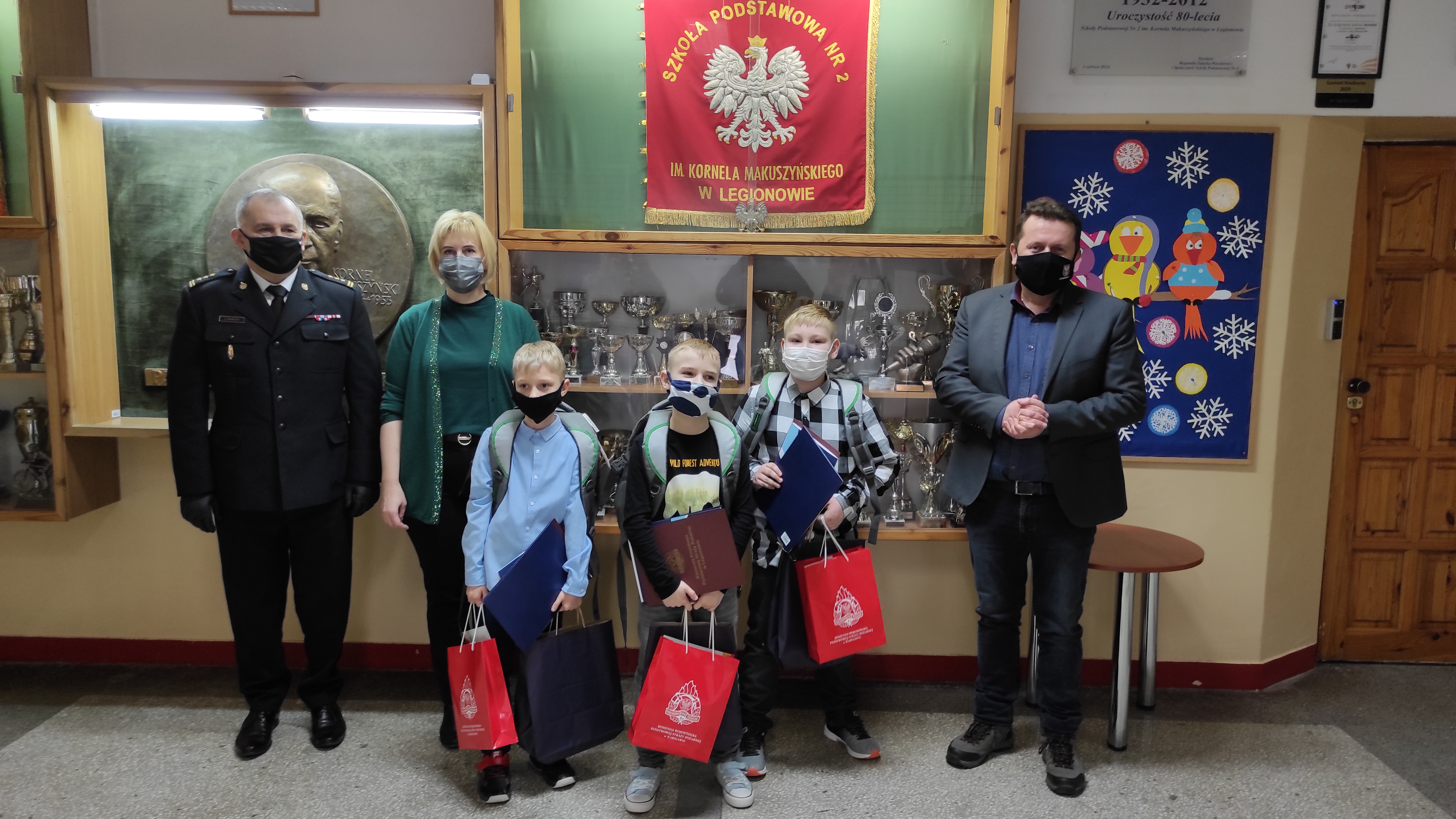 Pamiątkowe dyplomy oraz upominki wręczyli Komendant Powiatowy PSP w Legionowie st. bryg.