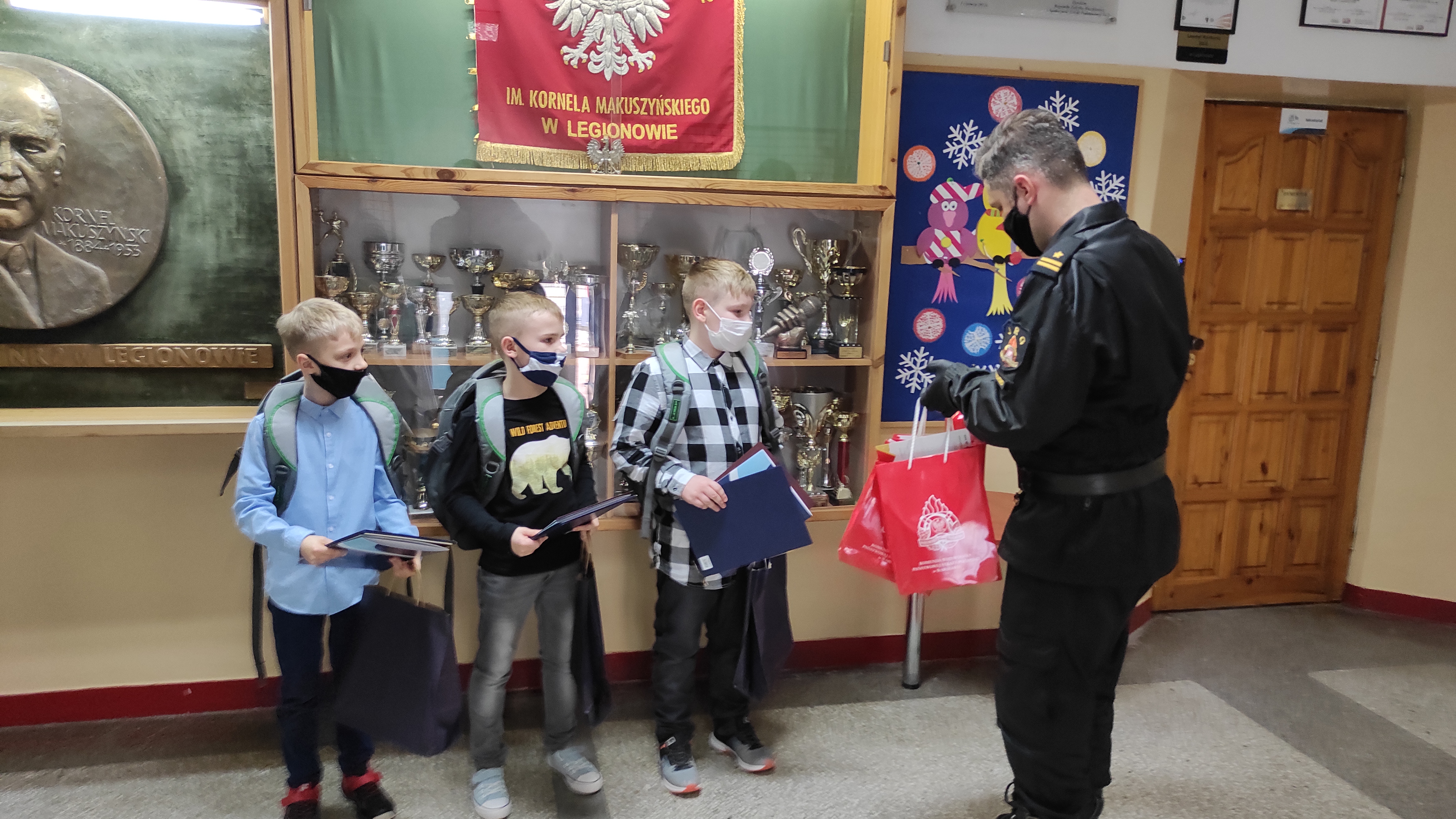 Bartłomiej, Stanisław oraz Jerzy podczas drogi do szkoły 17 lutego, przechodząc obok jednego z domów przy ul. Jagiellońskiej zauważyli wydobywający się z budynku dym. Bez wahania wybrali numer alarmowy i w sposób zdecydowany poinformowali dyspozytora o zauważonej sytuacji podając niezbędne informacje takie jak adres zdarzenia, rodzaj budynku oraz swoje dane kontaktowe. Strażacy którzy dojechali na miejsce potwierdzili że w budynku palą się sadze w kominie. Taki pożar nieugaszony w porę może doprowadzić do pożaru całego budynku, a co za tym idzie do bezpośredniego zagrożenia dla nie tylko dla mienia ale i ludzkiego życia.