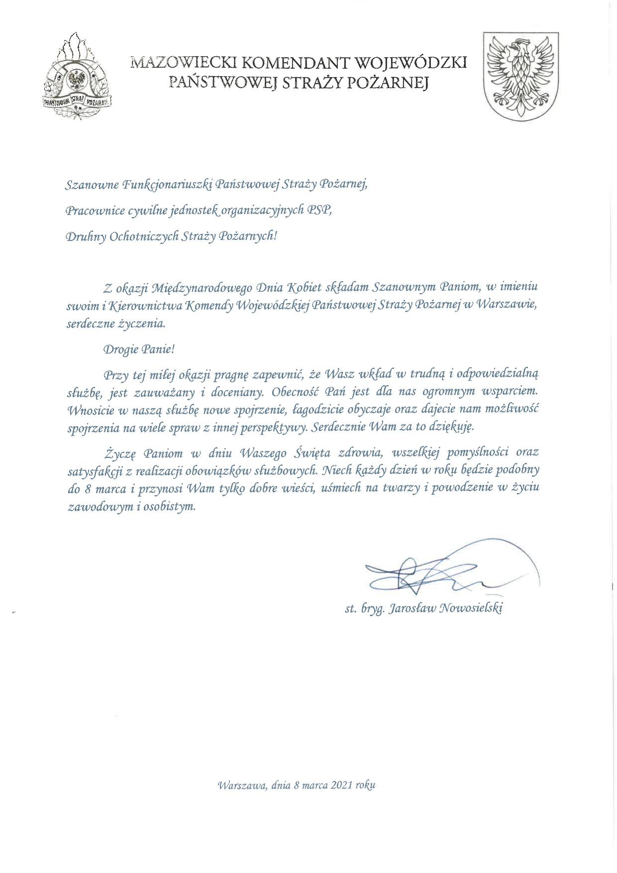 Życzenia z okazji Dnia Kobiet od Mazowieckiego Komendanta Wojewódzkiego